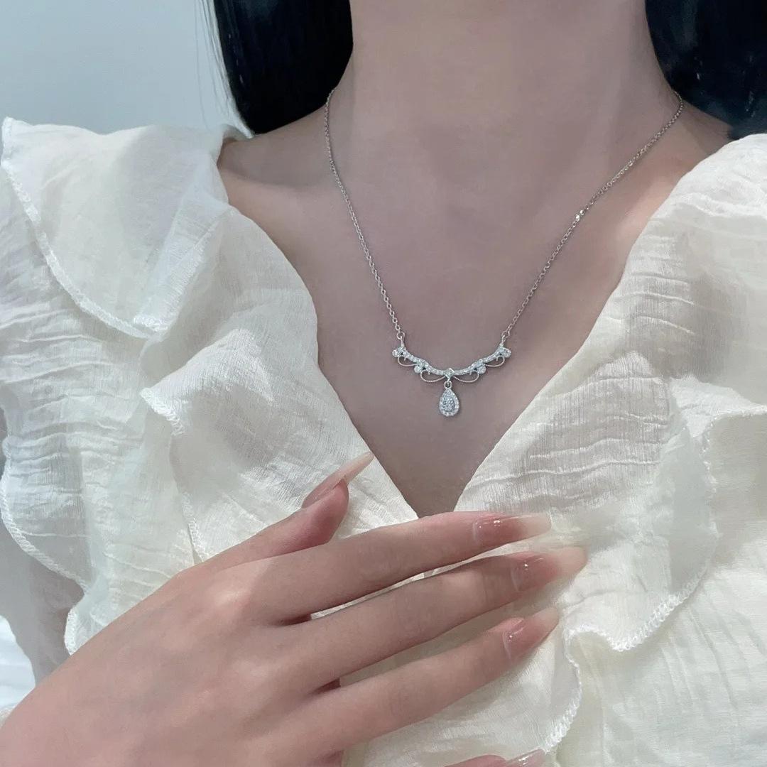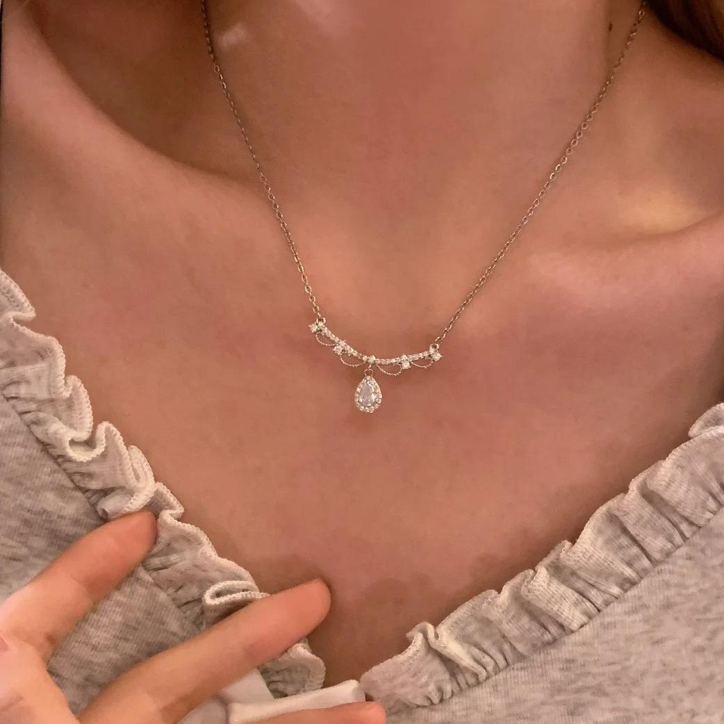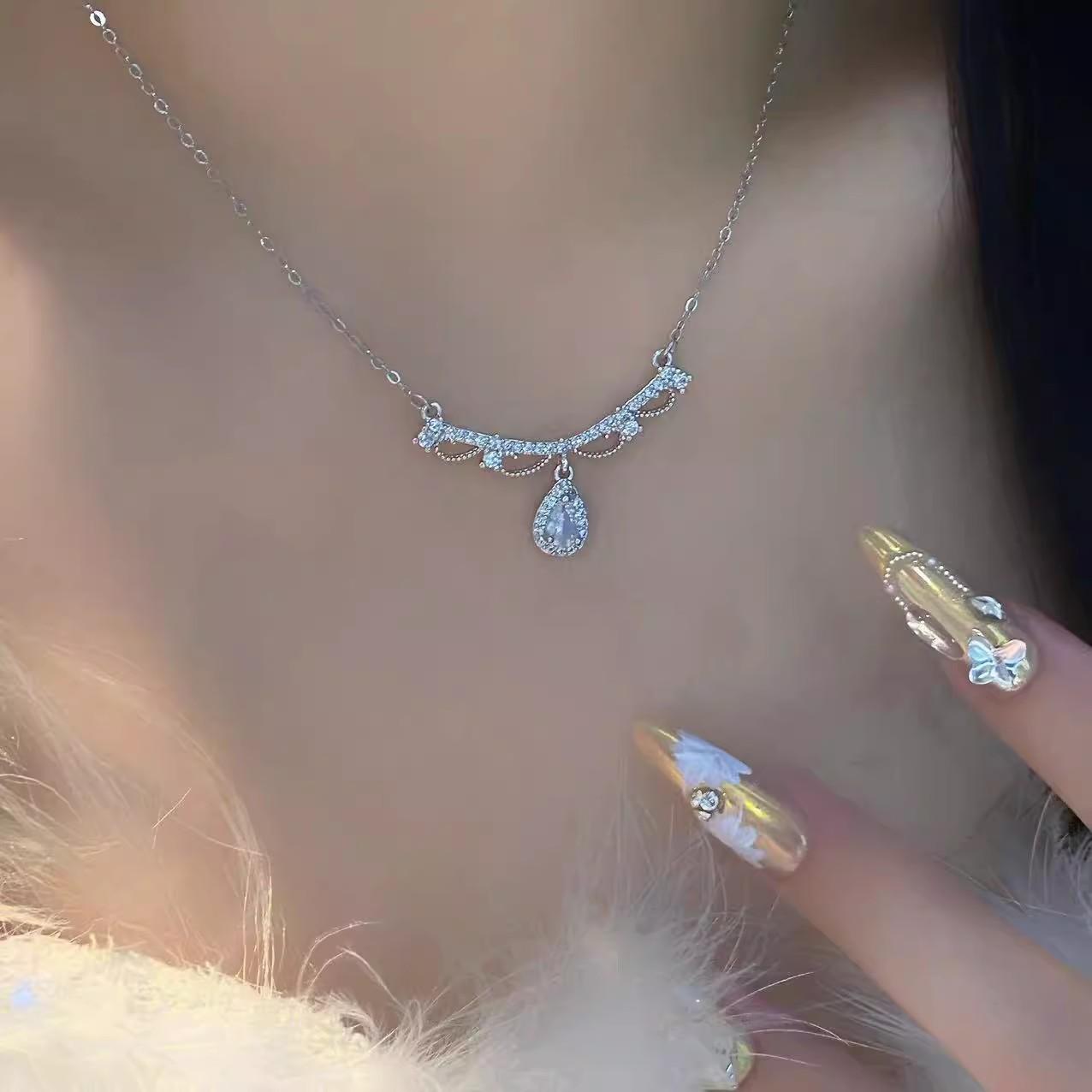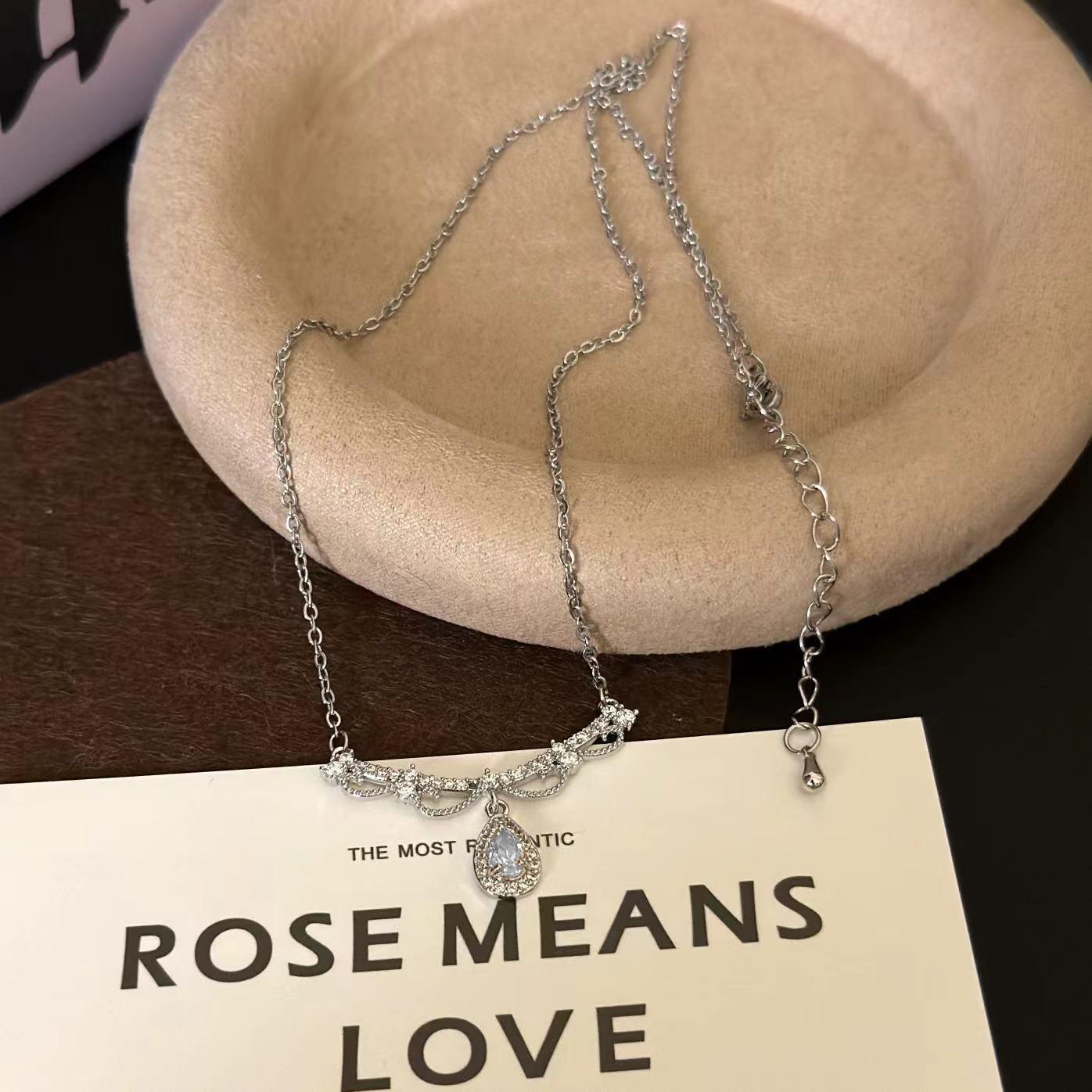 Collar de Encaje de Princesa Escape Gota de Agua Cinta Collar para Mujer Diseño Nicho de Lujo Ligero Acero Titanio Color Libre Cadena Clavícula Joyería