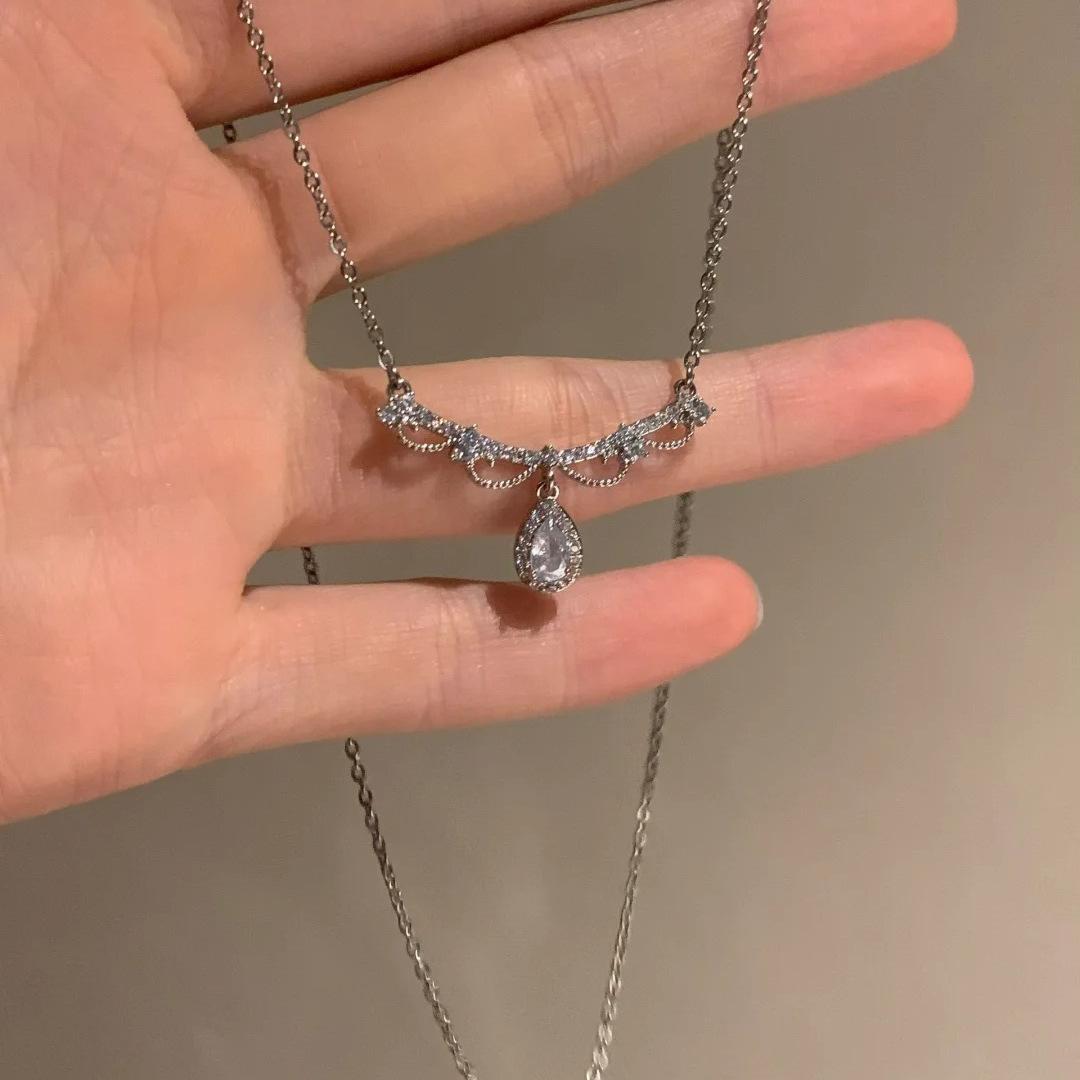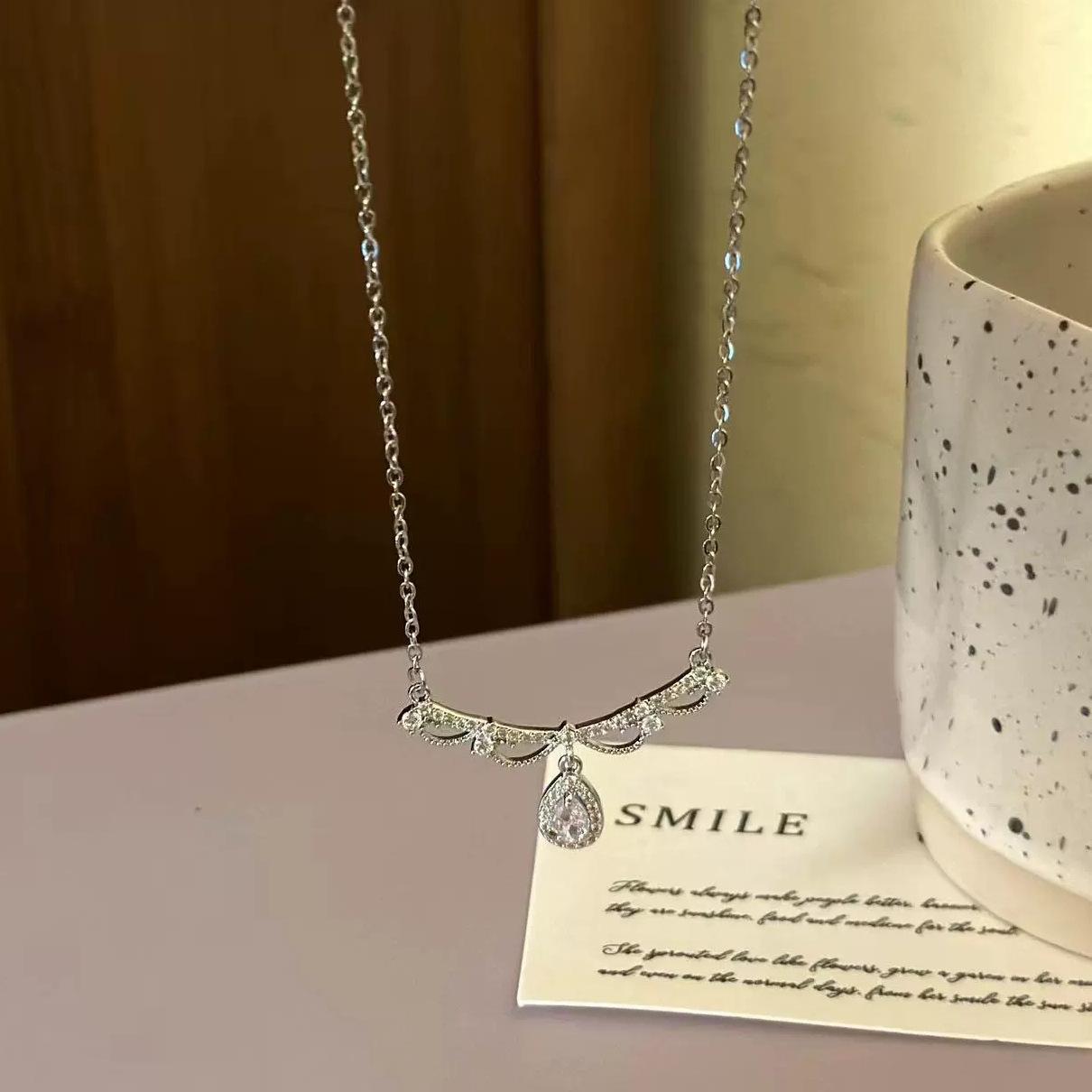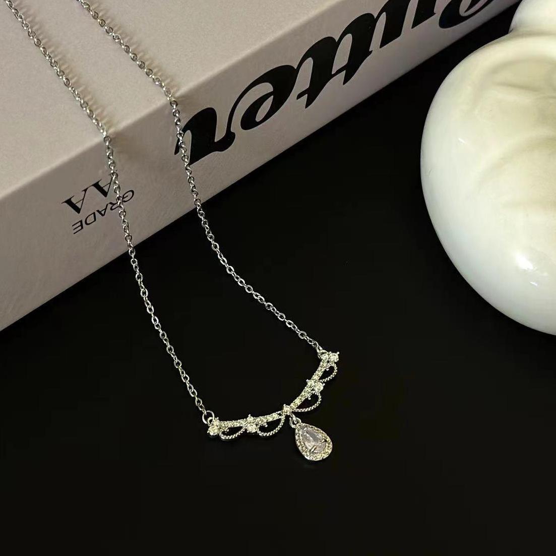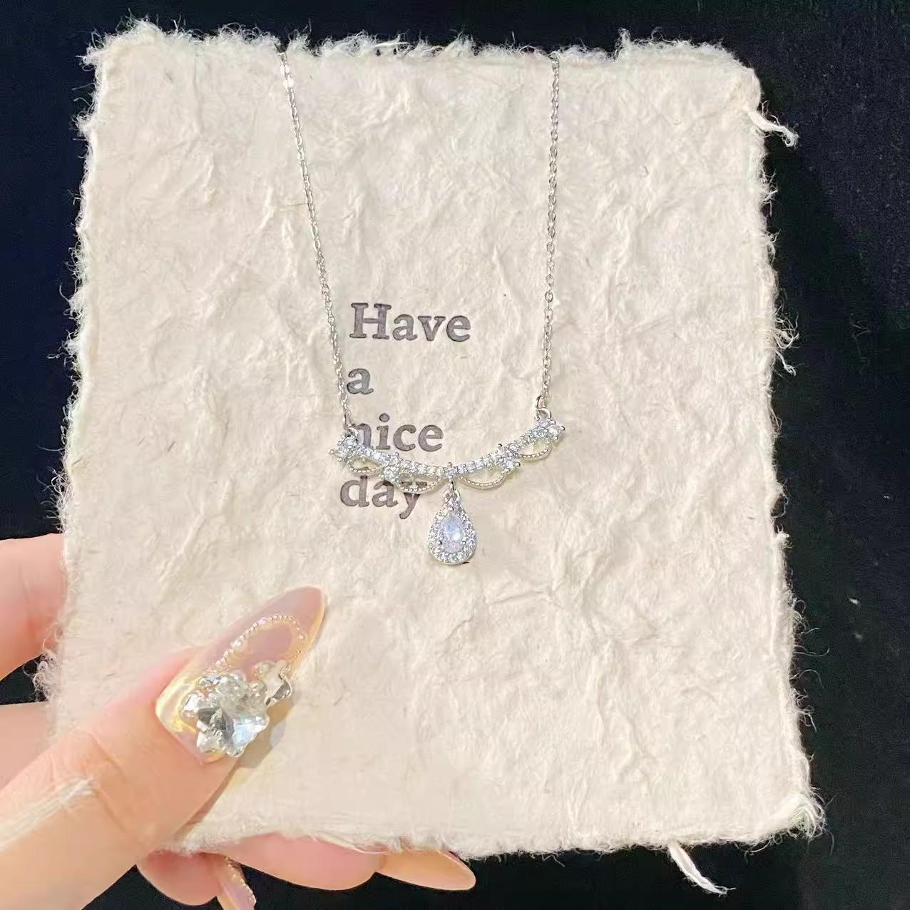 Collar de Encaje de Princesa Escape Gota de Agua Cinta Collar para Mujer Diseño Nicho de Lujo Ligero Acero Titanio Color Libre Cadena Clavícula Joyería