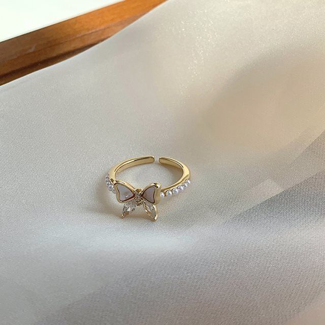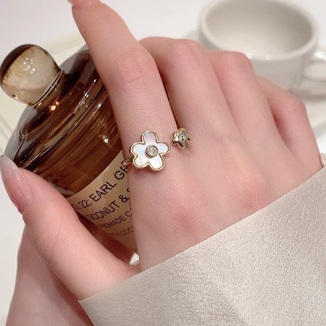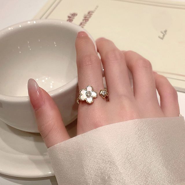 Anillo de flores con lazo de lujo ligero para mujer, diseño de alta gama, anillo abierto personalizado con flores que combinan con todo.