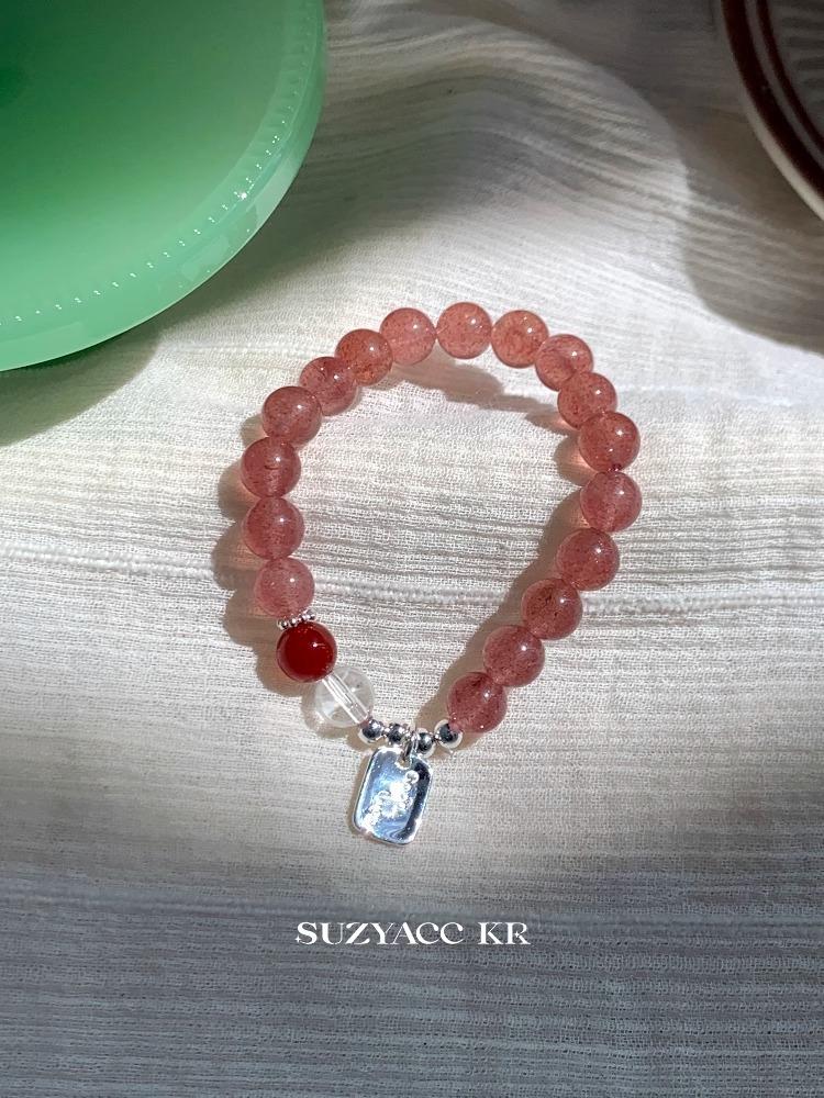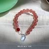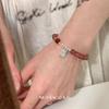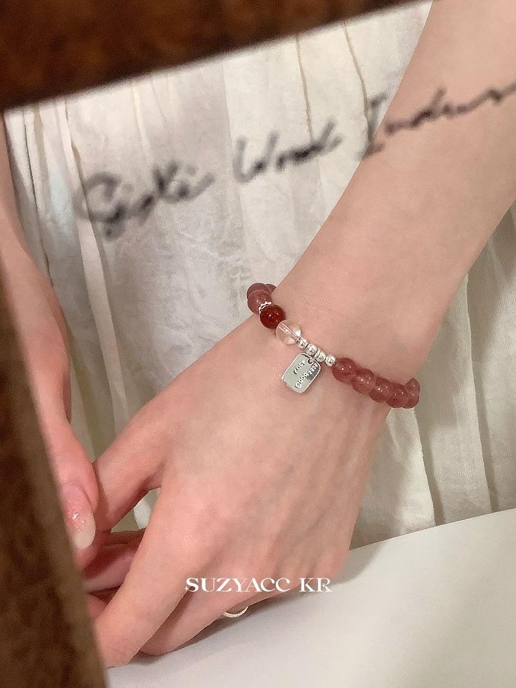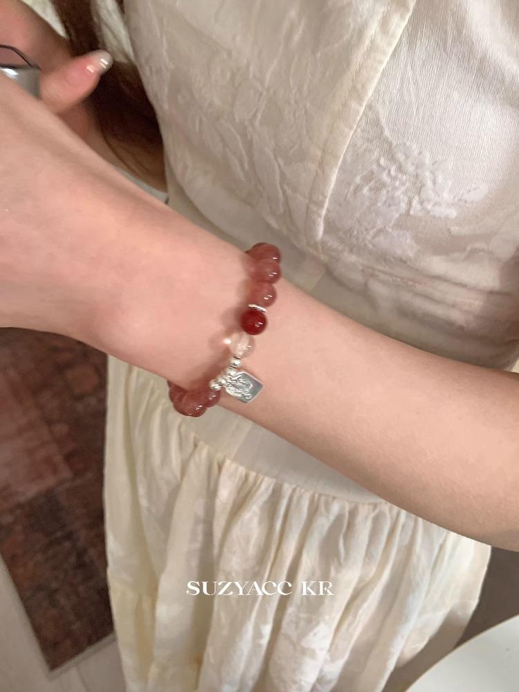 Pulsera de Plata Esterlina Niche Retro Estilo Chino con Cristal de Fresa Lujo Ligero Elegante de Alta Gama Pulsera Versátil Joyería para Mujer