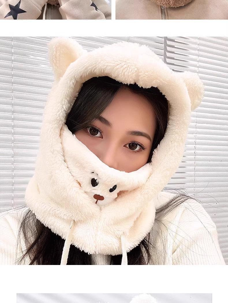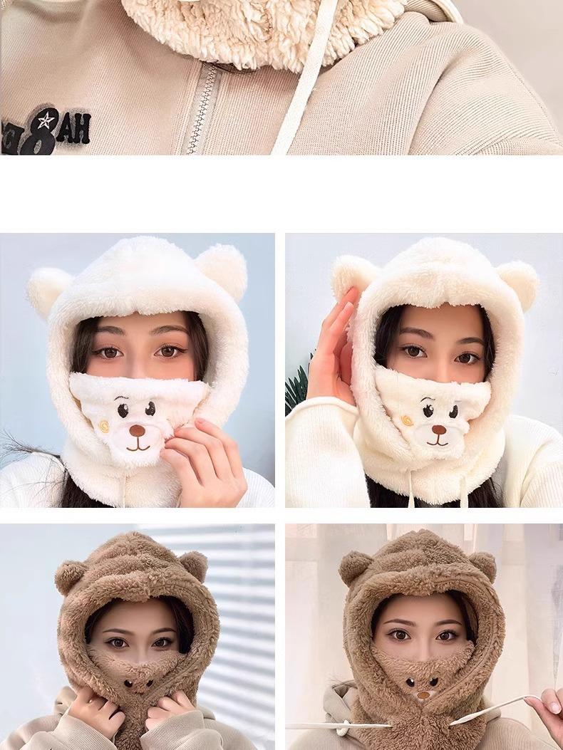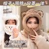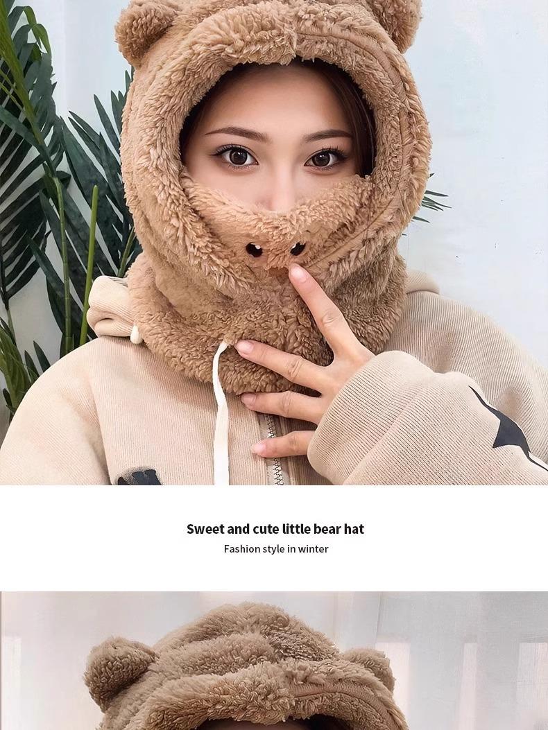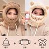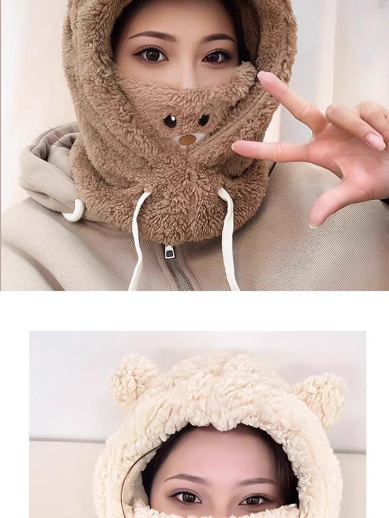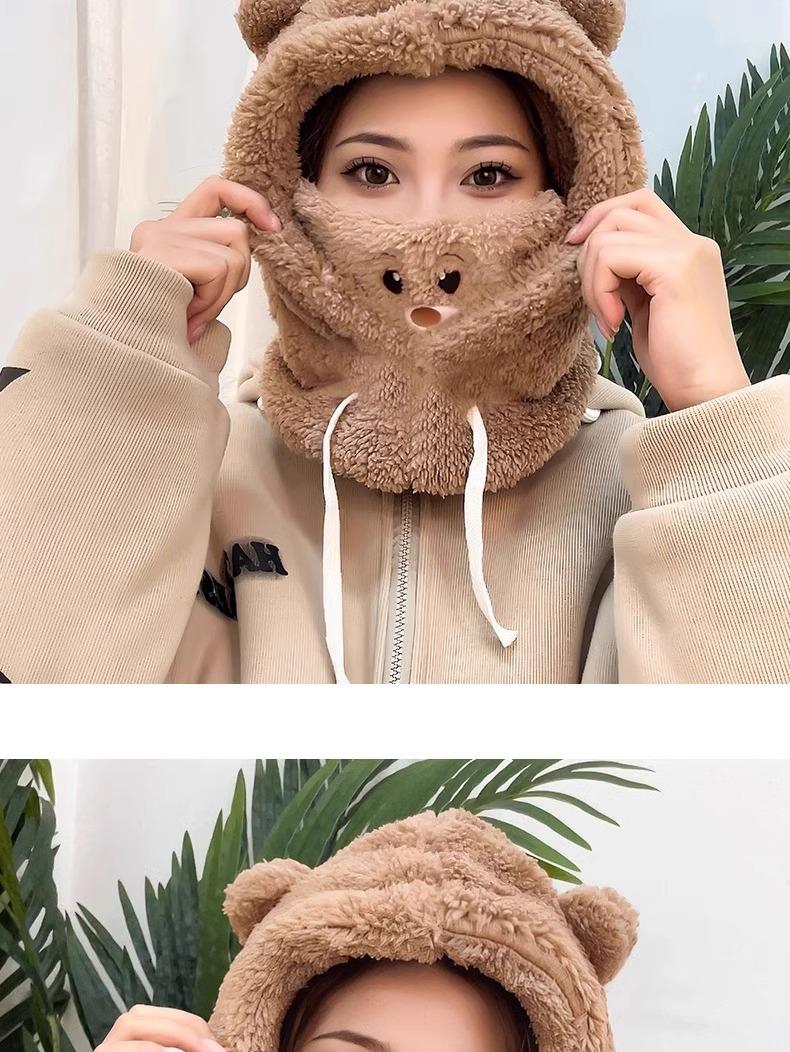 Lindo Gorro de Osito para Mujer Invierno Cálido Protección para las Orejas Gorro Esponjoso Guantes Bufanda con Capucha Conjunto de una Pieza