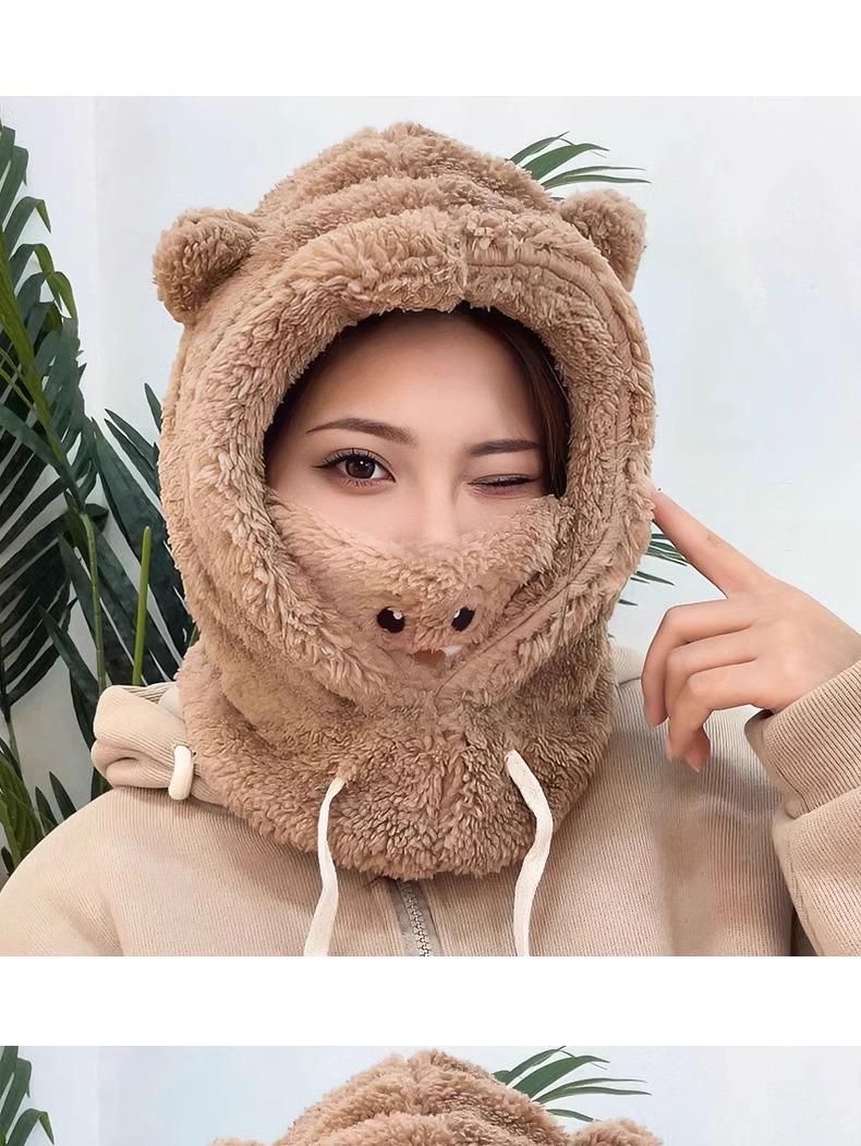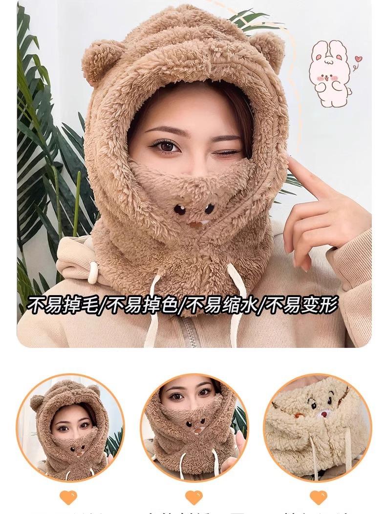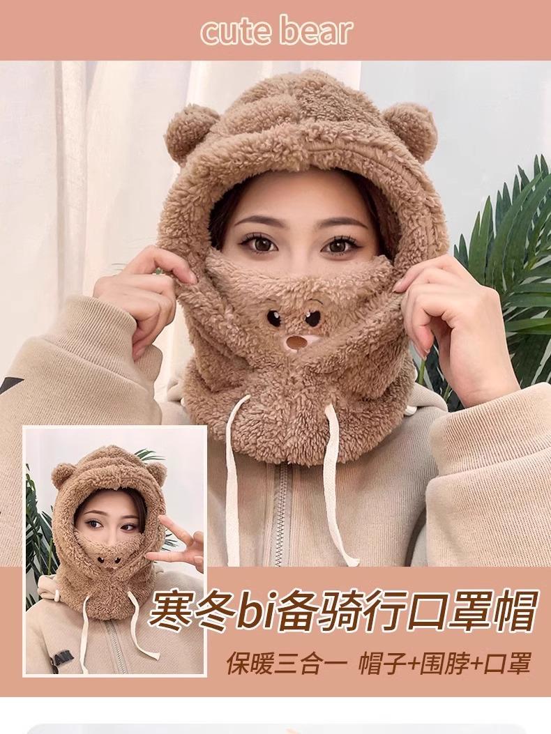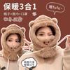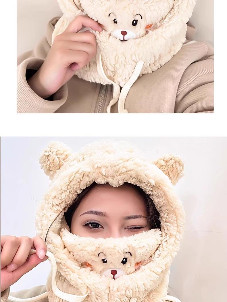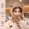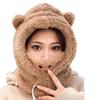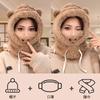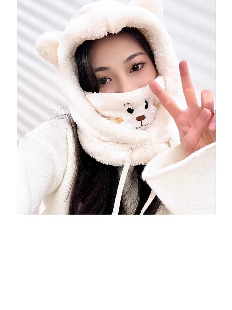 Lindo Gorro de Osito para Mujer Invierno Cálido Protección para las Orejas Gorro Esponjoso Guantes Bufanda con Capucha Conjunto de una Pieza