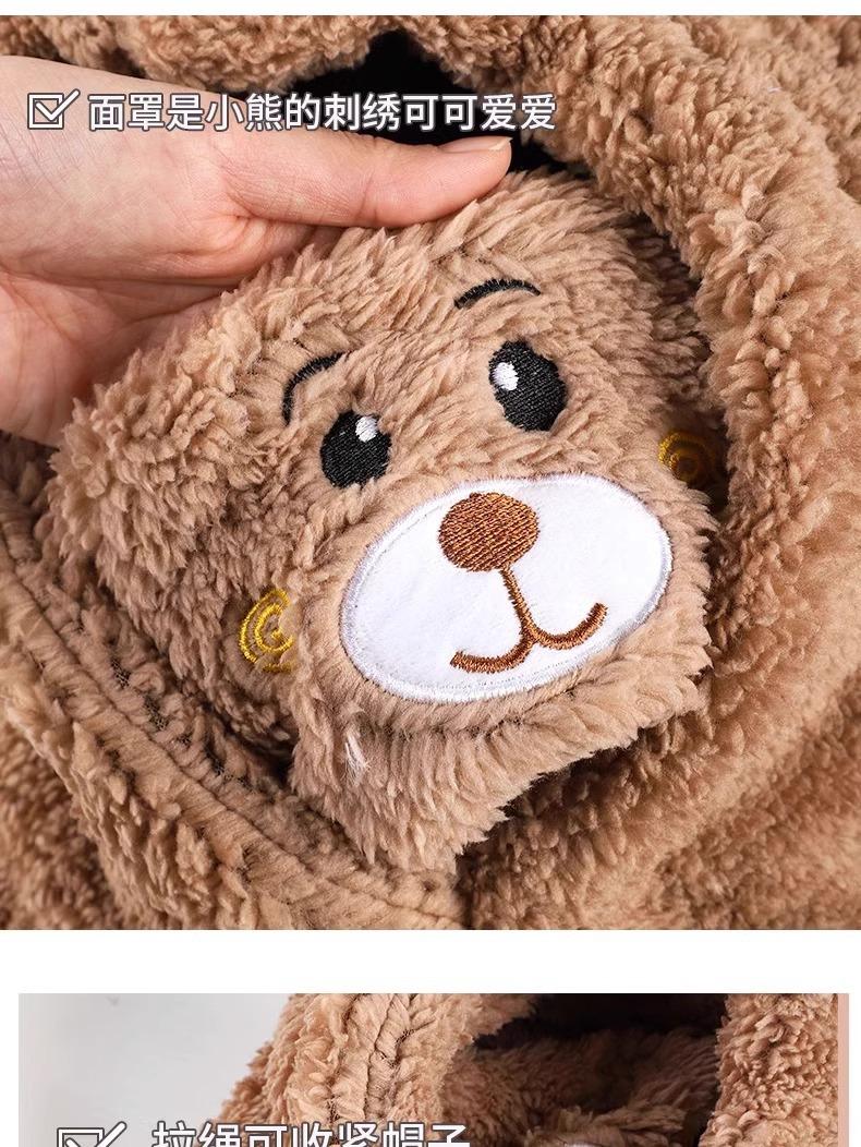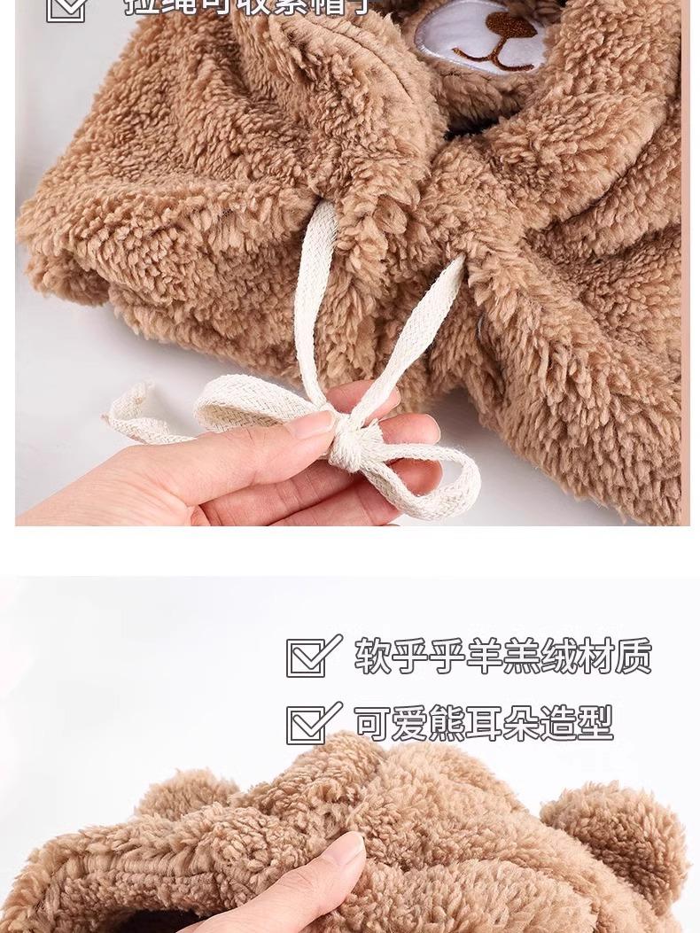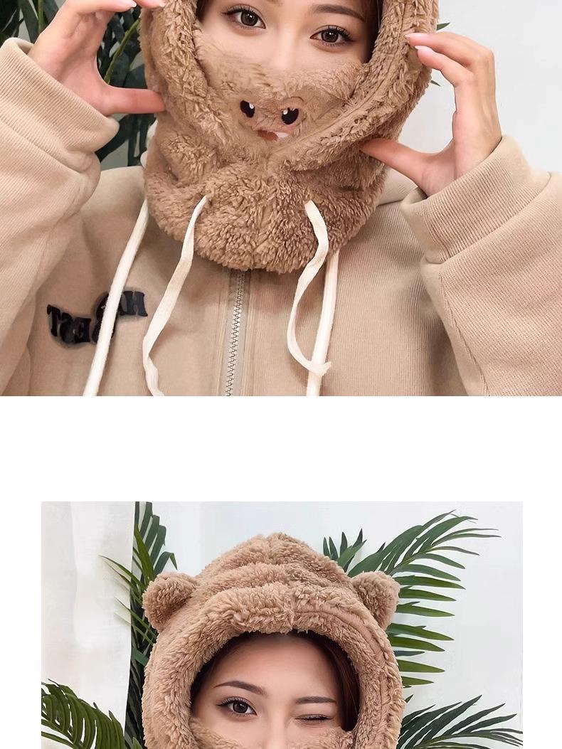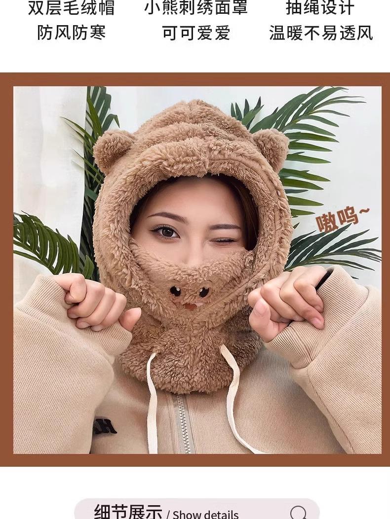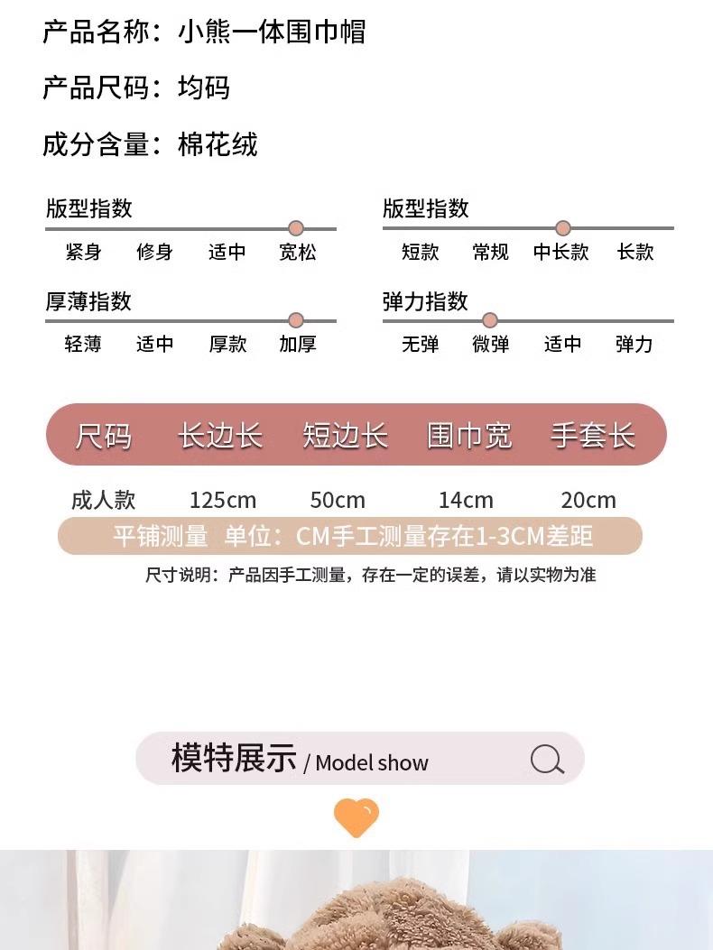Lindo Gorro de Osito para Mujer Invierno Cálido Protección para las Orejas Gorro Esponjoso Guantes Bufanda con Capucha Conjunto de una Pieza
