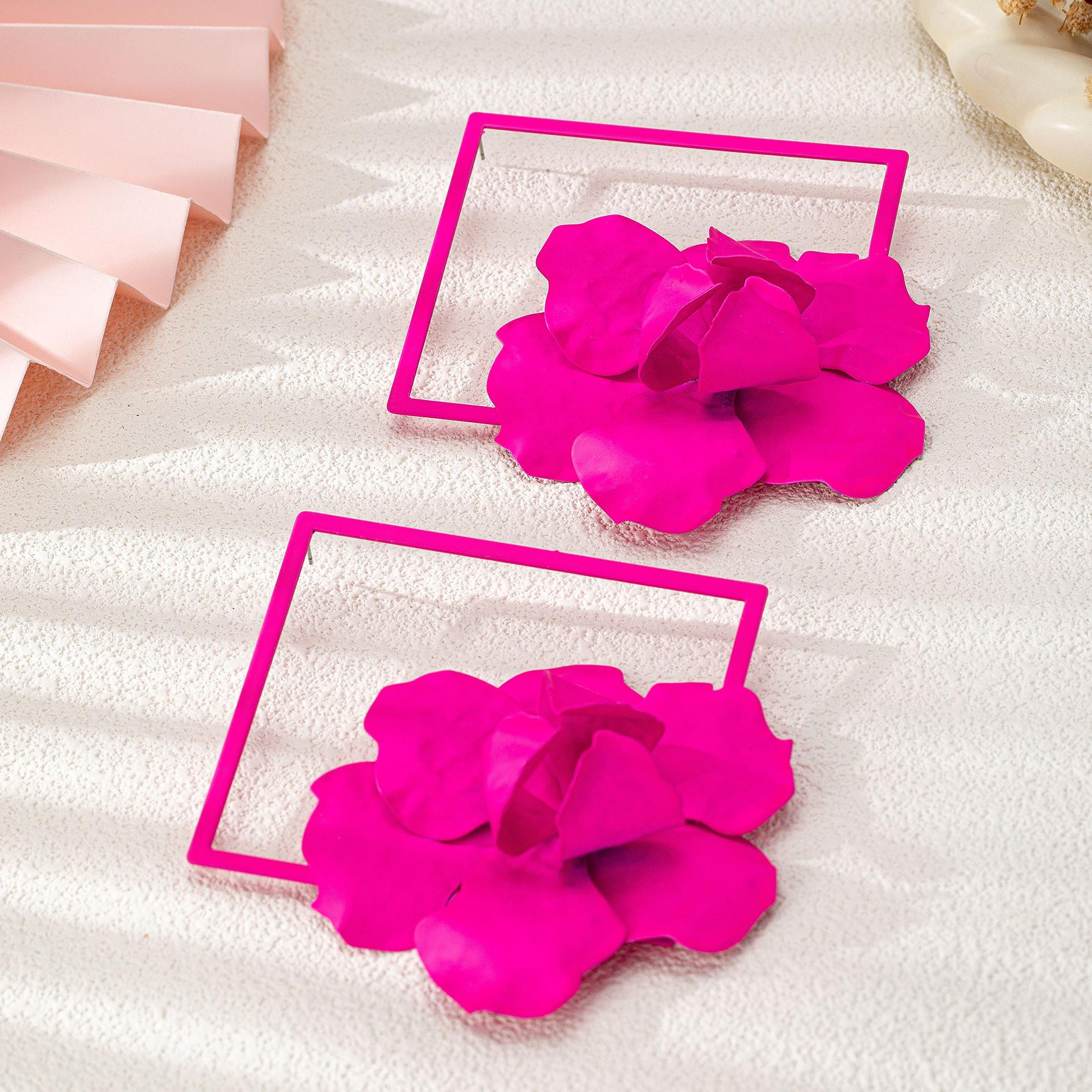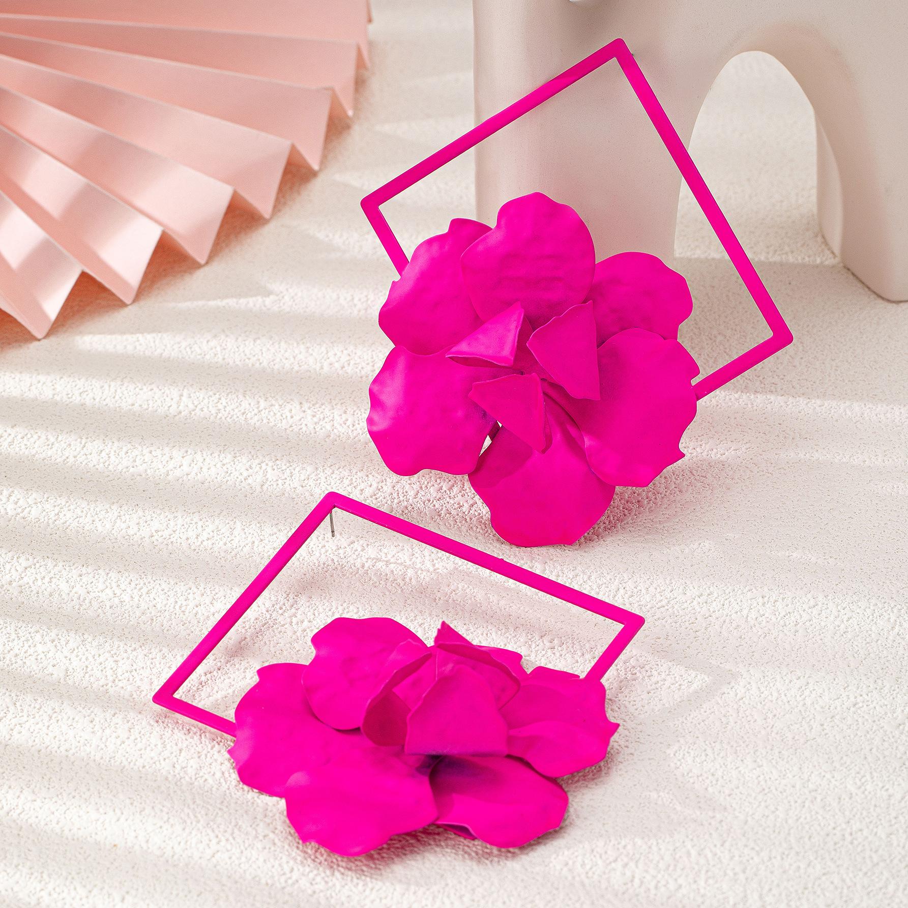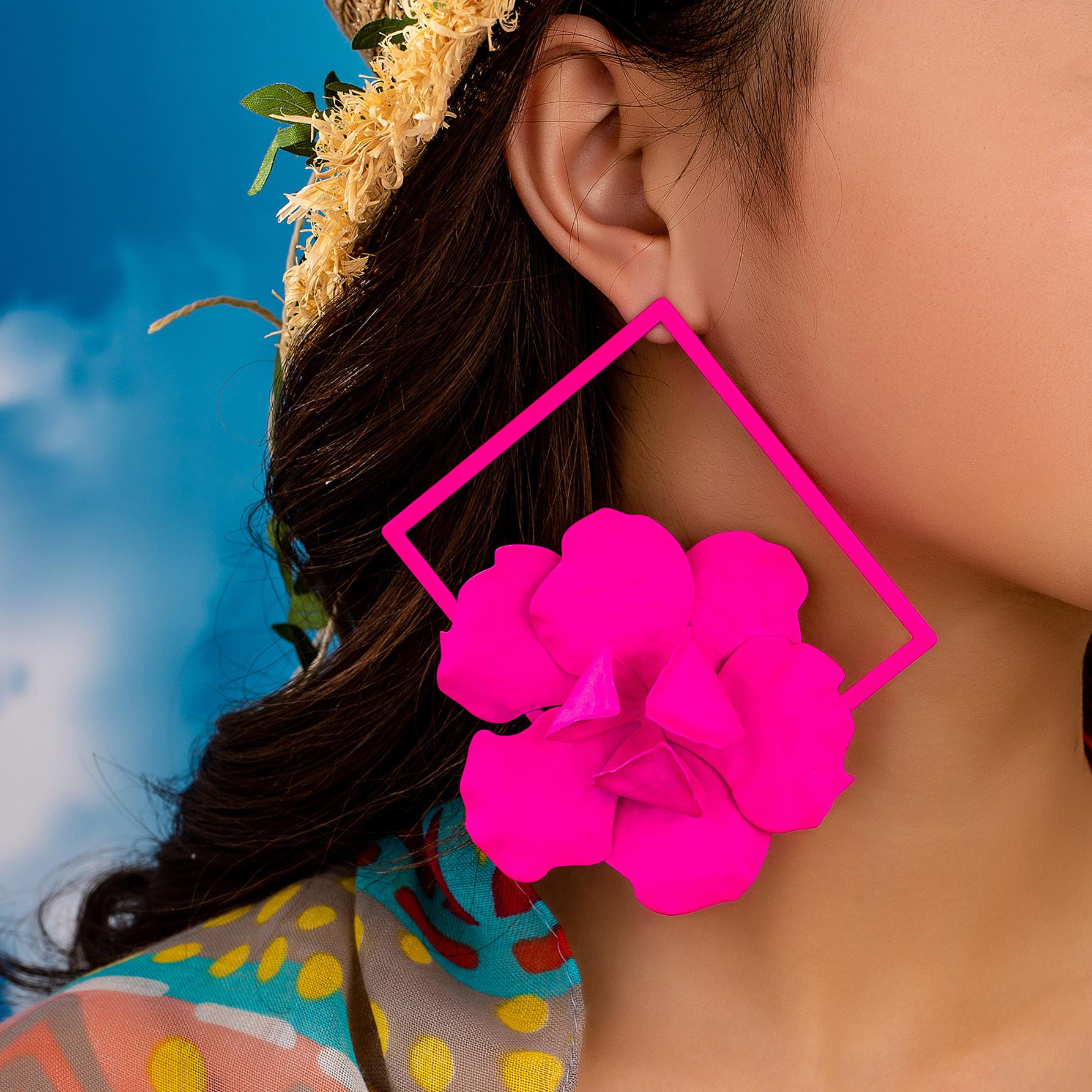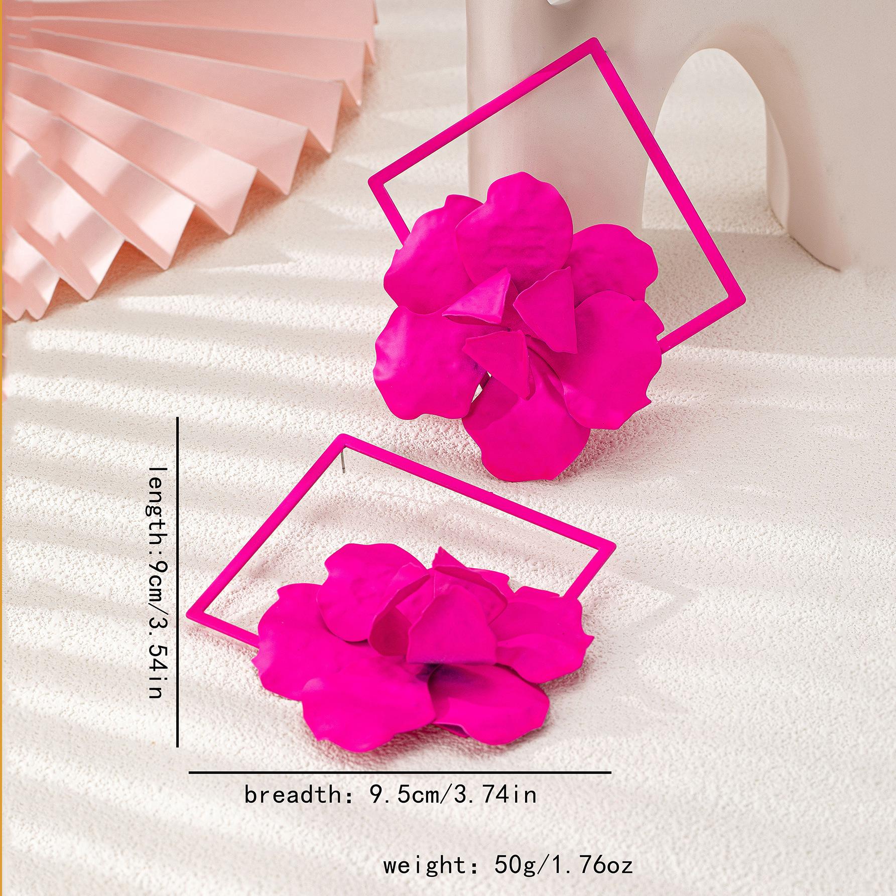 Pendientes de tuerca de flor grande rosa roja de personalidad exagerada tendencia de moda para damas para uso de fiesta