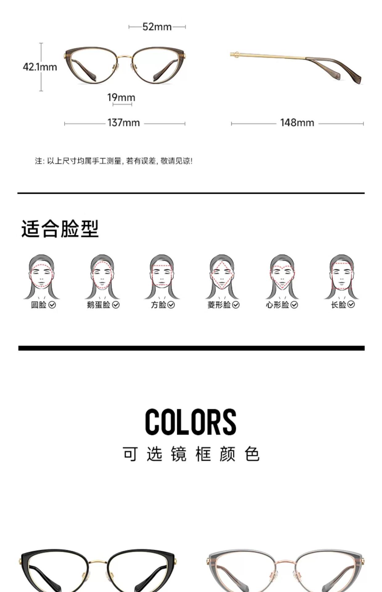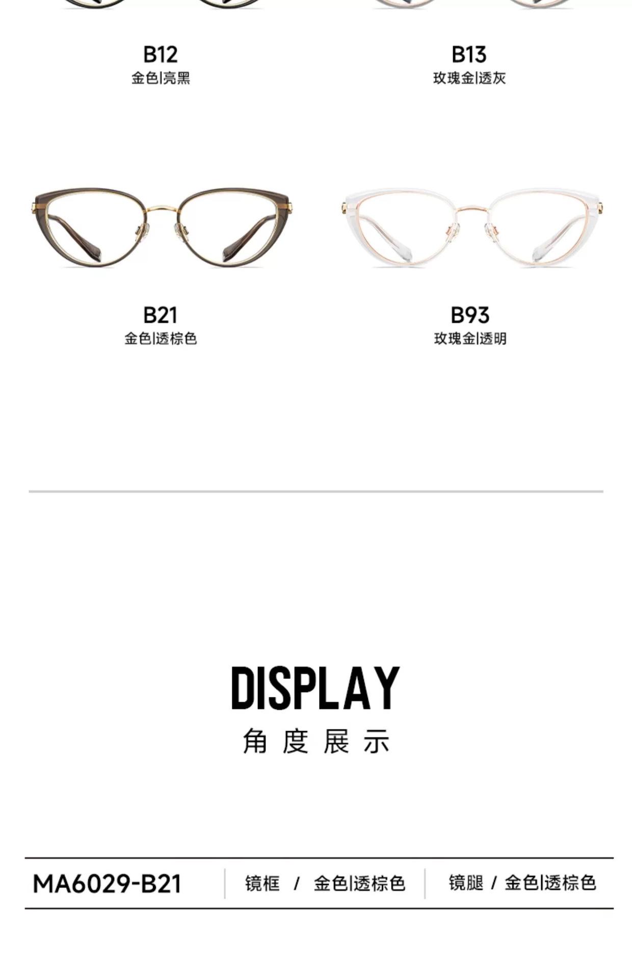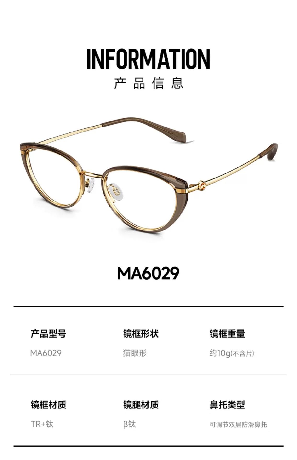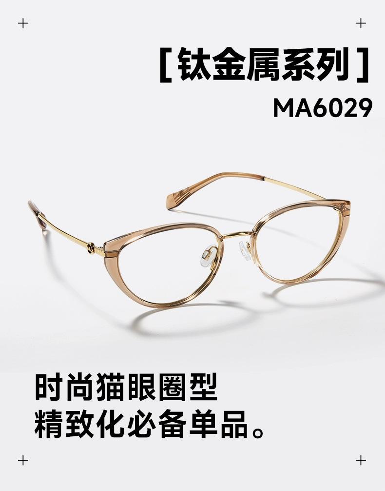 Armazón ojo de gato Mo Sen para mujer miopía grado ajustable luz anti-azul titanio armazón de ceja MA6029