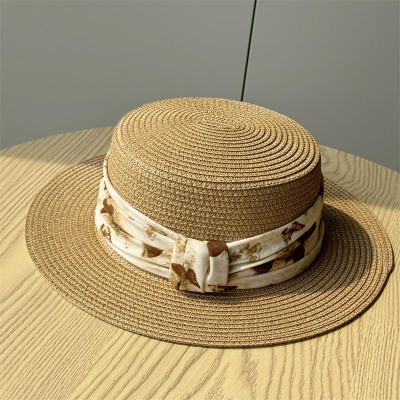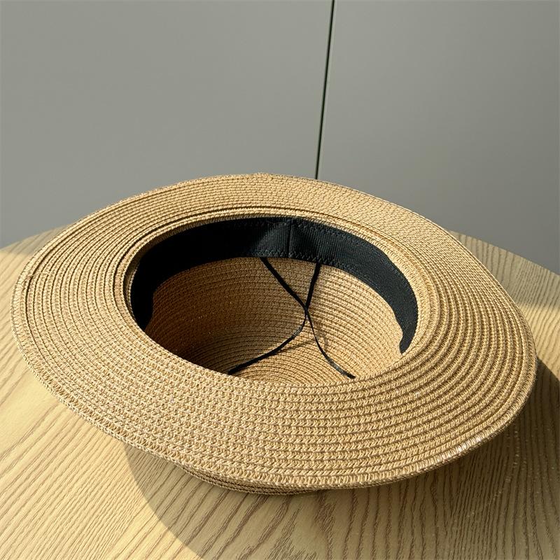 Nuevo Sombrero de Paja de Moda Francesa Sombrero Plano Sombrero de Paja de Verano para Mujer Playa Vacaciones Sombrilla Protector Solar Sombrero de Copa