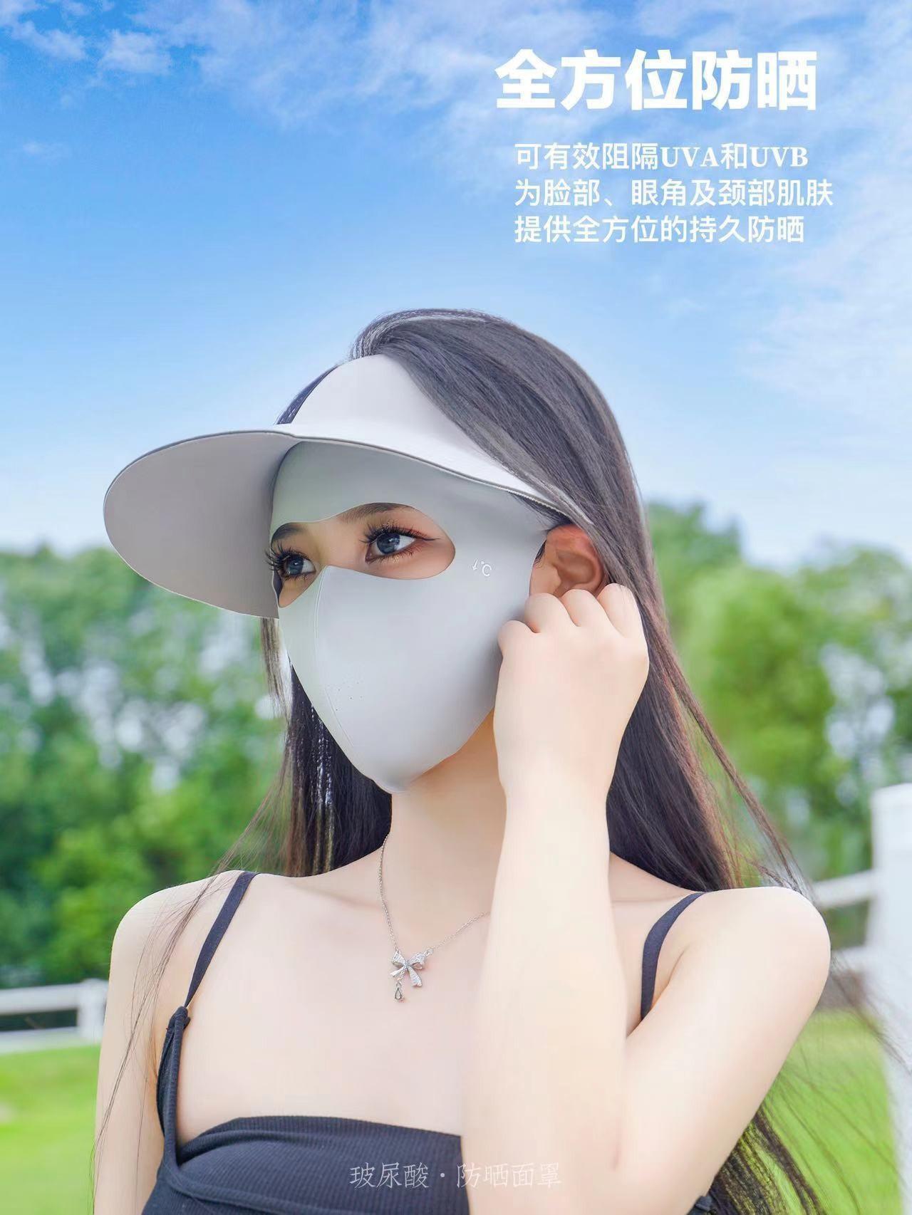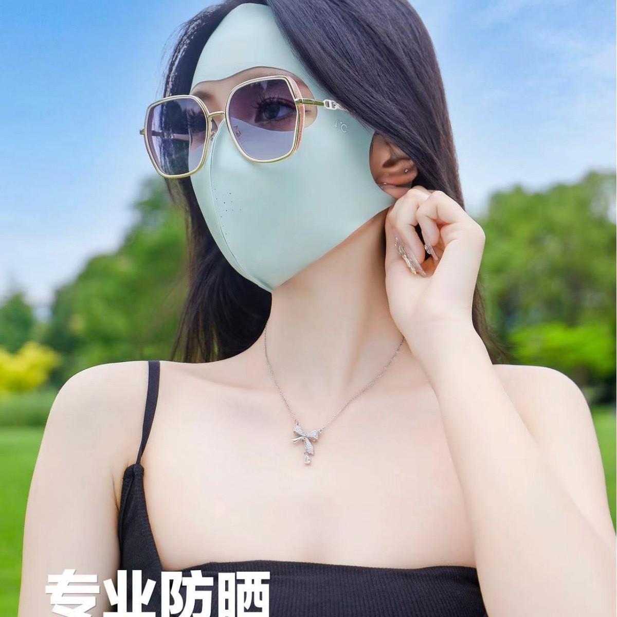 Mascarilla de Protección Solar para Cara Completa para Mujer Verano Anti-UV Parasol Mascarilla Facial de Seda de Hielo Protección Facial Kini Estéreo