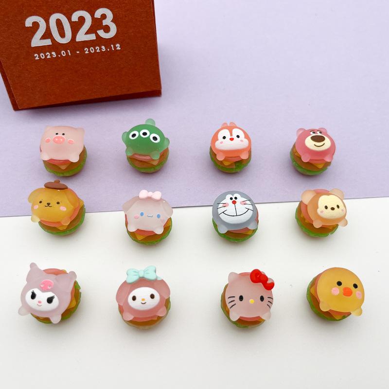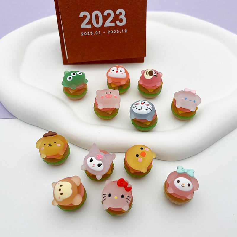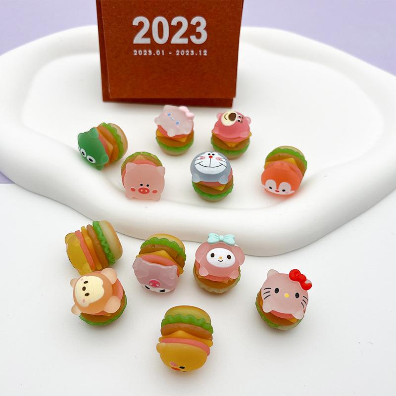 Luminoso 12 colores creativo caricatura tridimensional multicapa hamburguesa diy joyería hecho a mano crema pegamento simulación resina