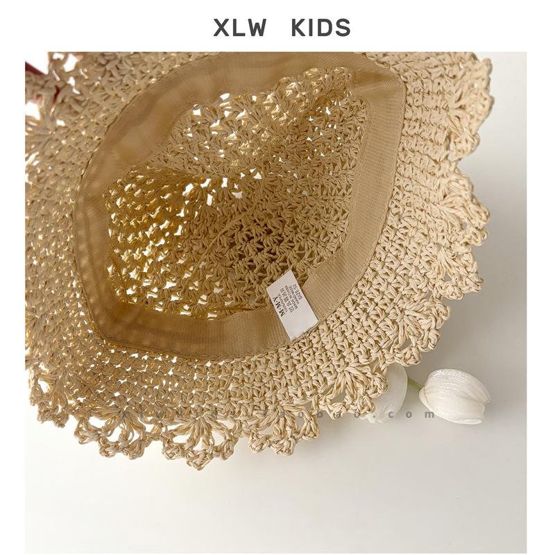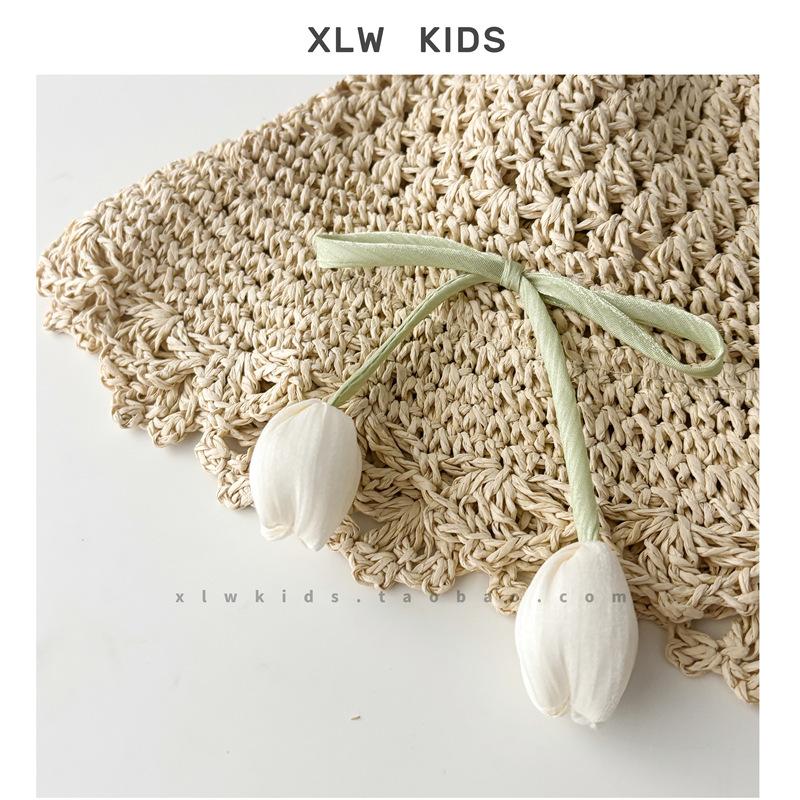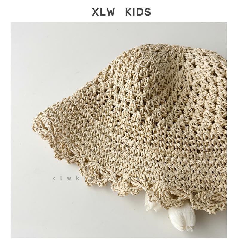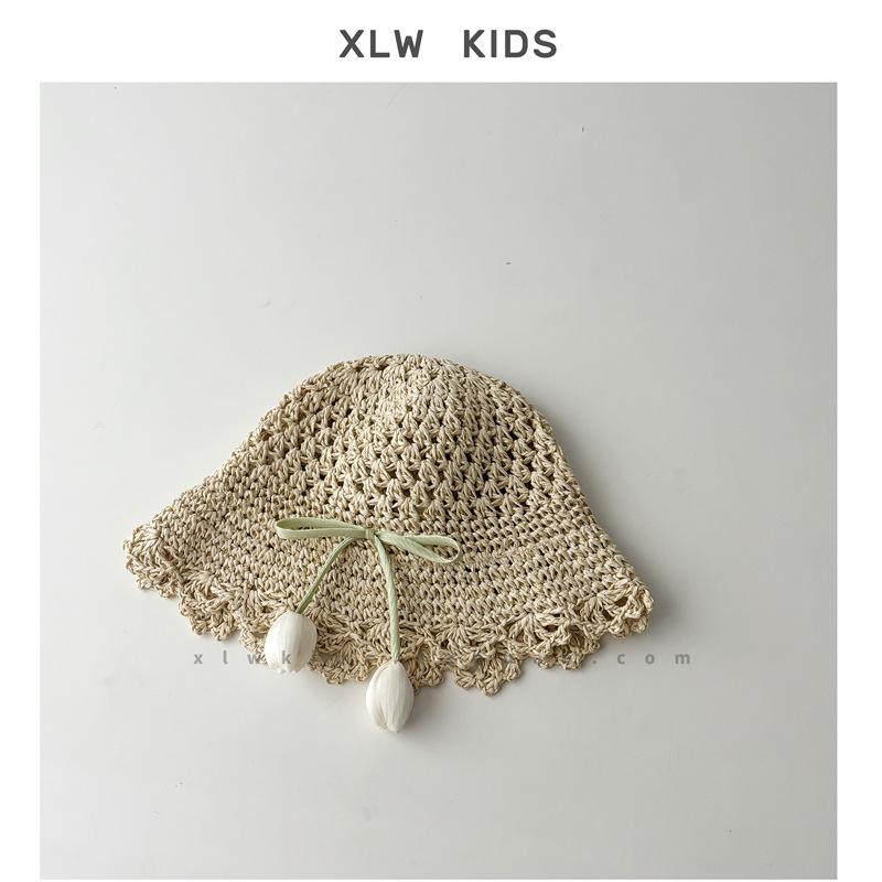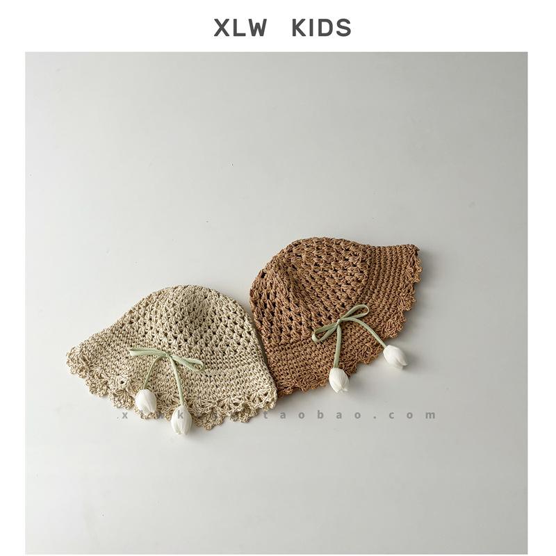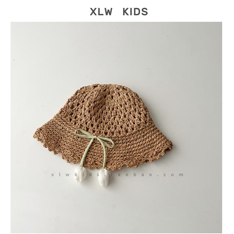 Sombrero de Pescador Infantil de Verano Estilo Ins Tulipán para Niña Bebé Protección Solar Sombrero de Paja Tejido Calado Hecho a Mano