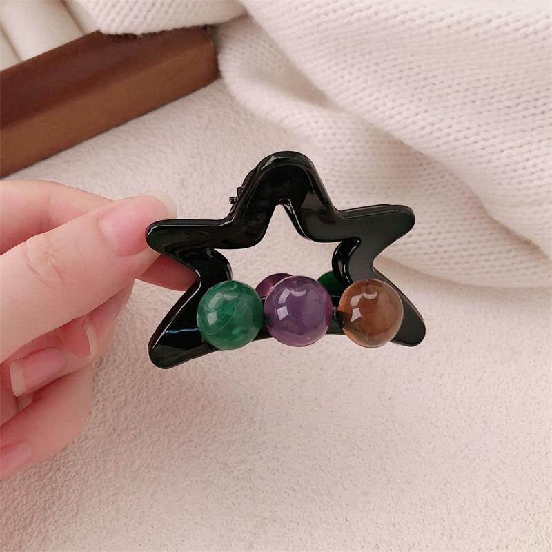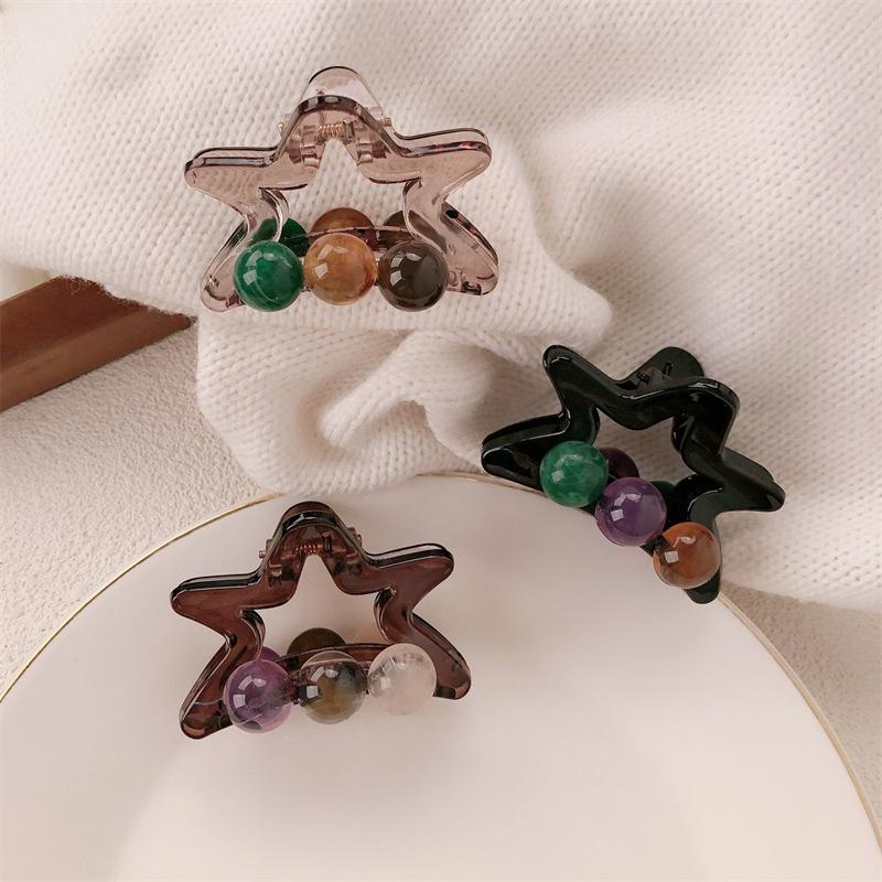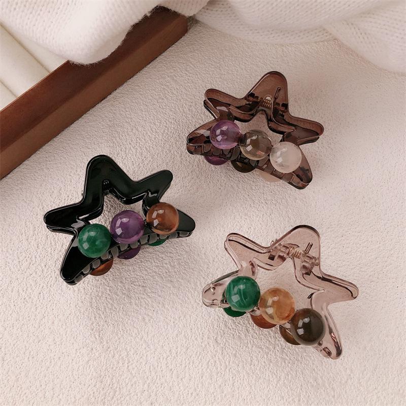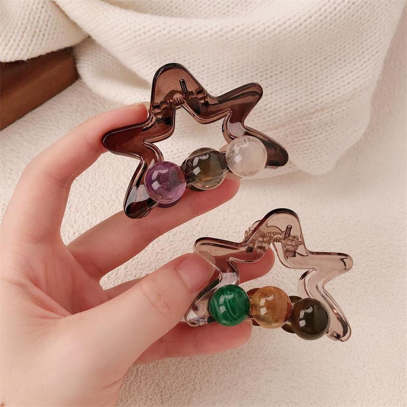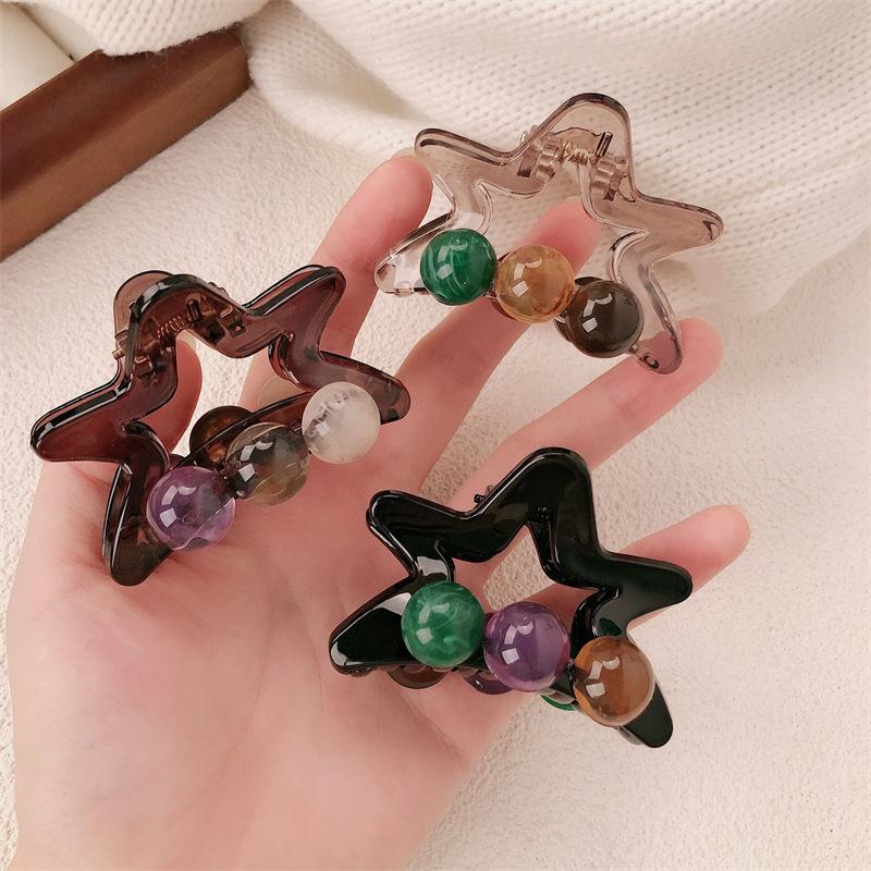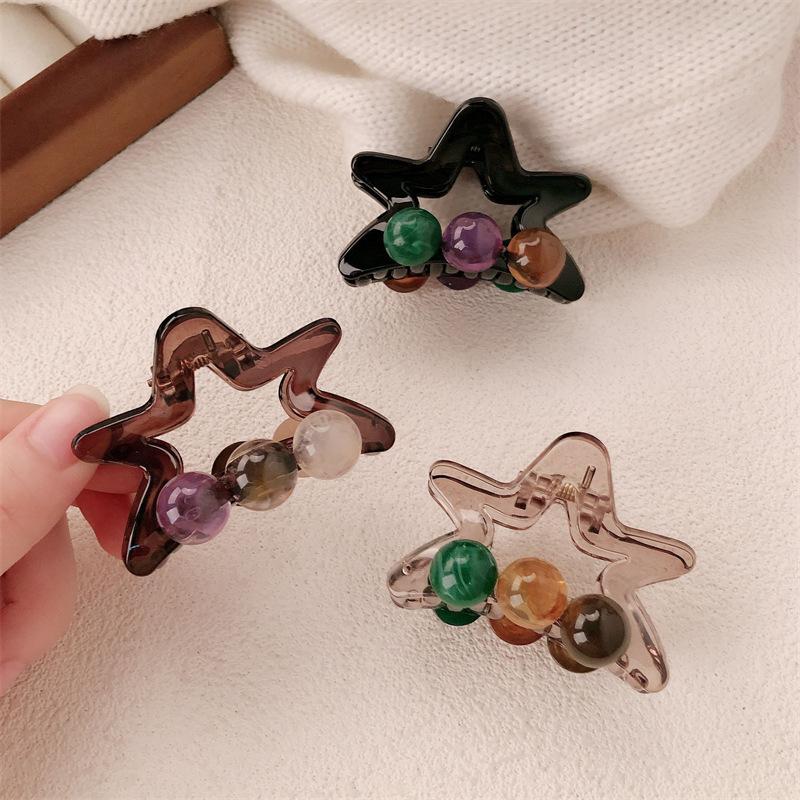 Pinza para el cabello con cuentas de estrella de cinco puntas estilo coreano, nuevo estilo, horquilla para coleta alta fija, dulce, pinza de tiburón para medio cabello