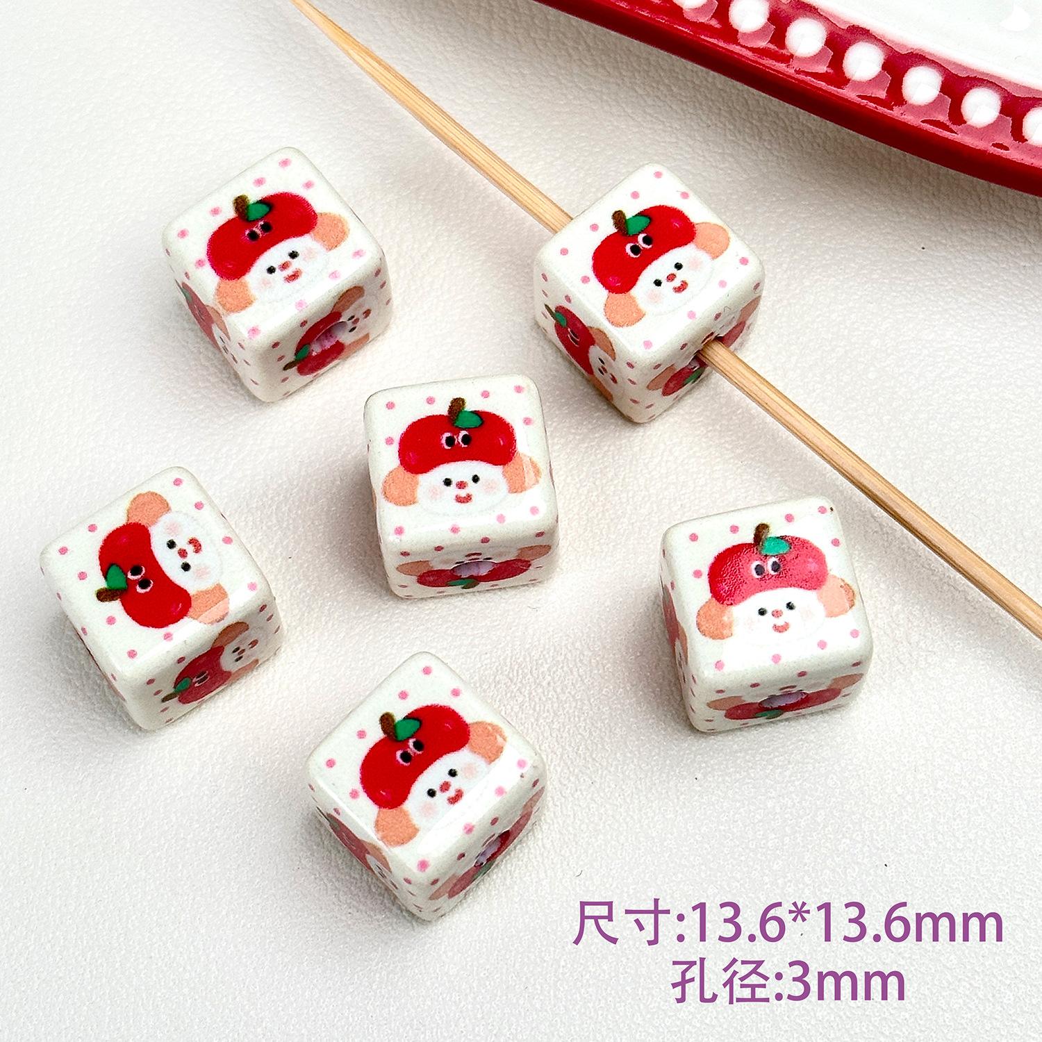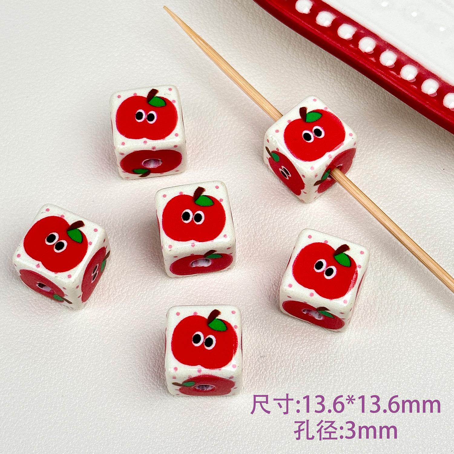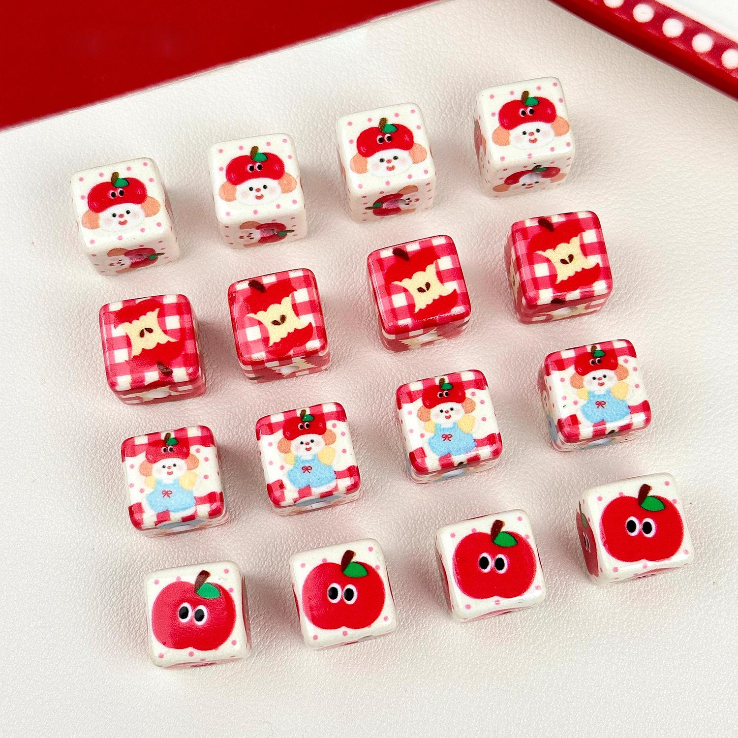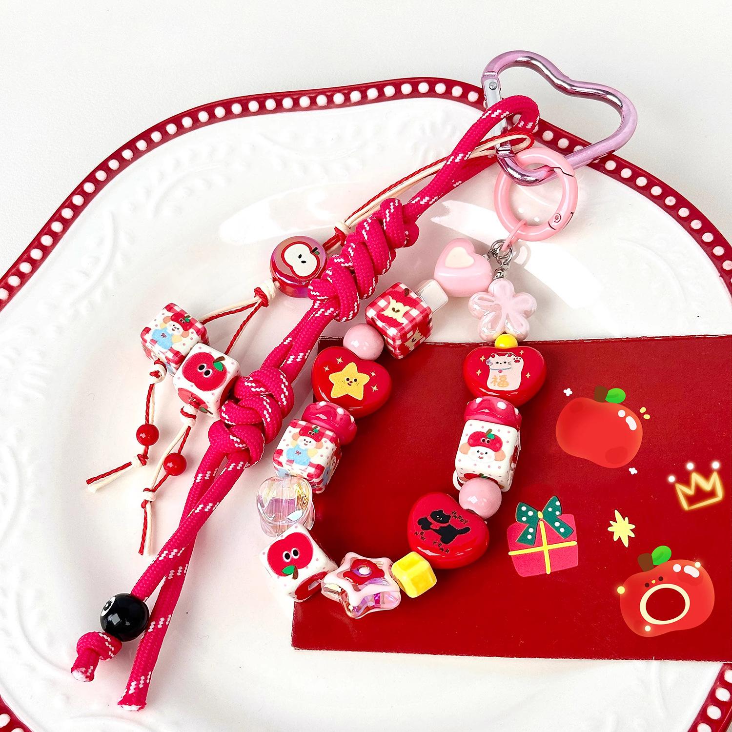 Lindas Cuentas Cuadradas de Manzana Roja Amor Hechas a Mano DIY Cadena para Teléfono Móvil Bolso Colgante Pulsera Material Accesorios de Joyería