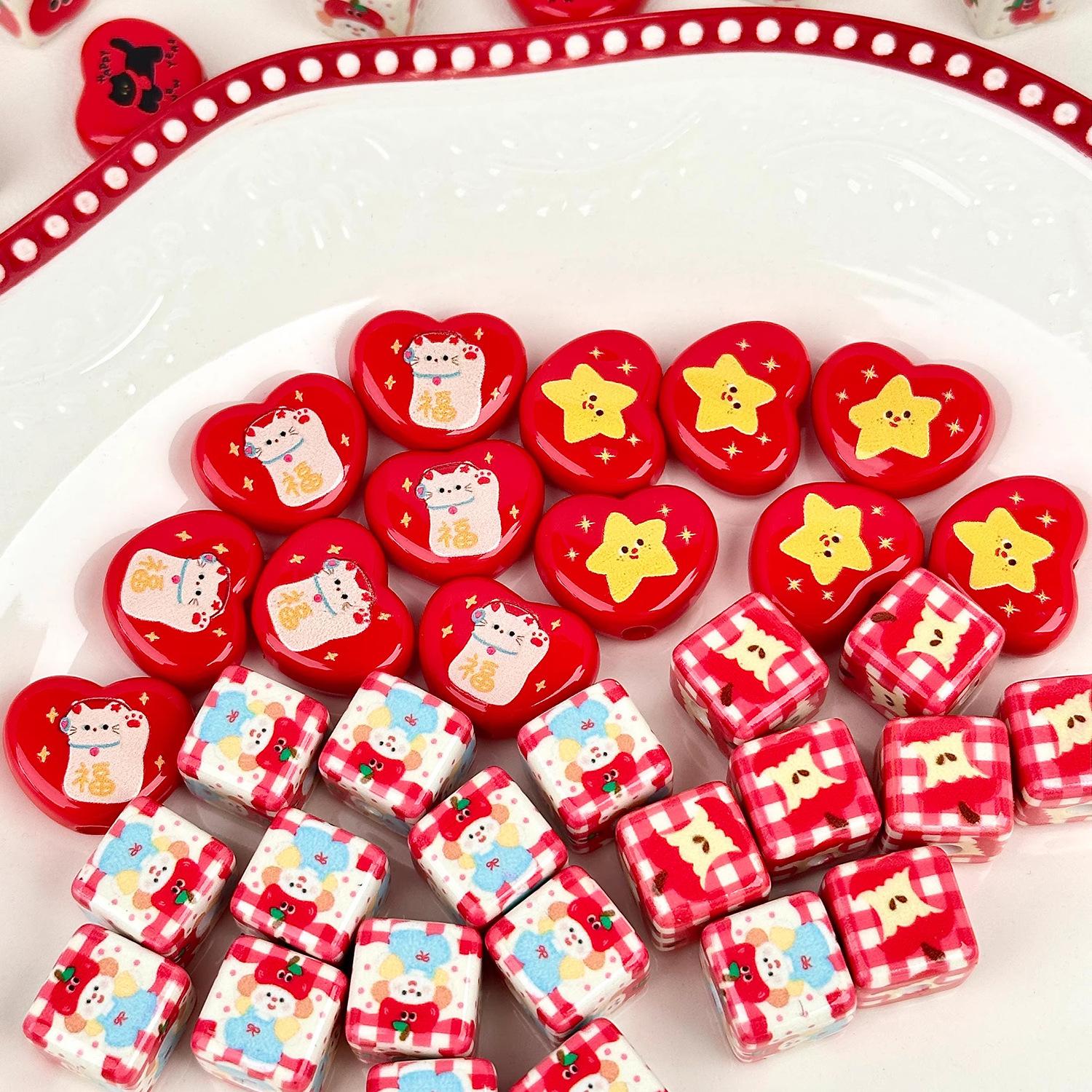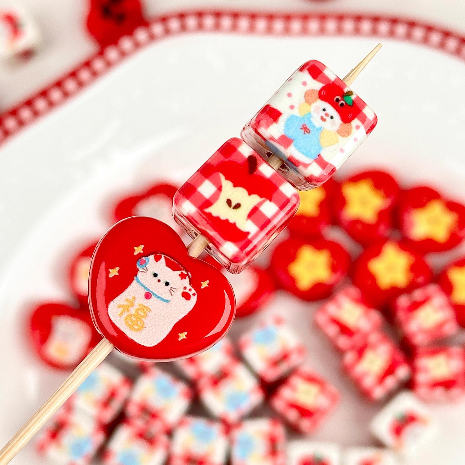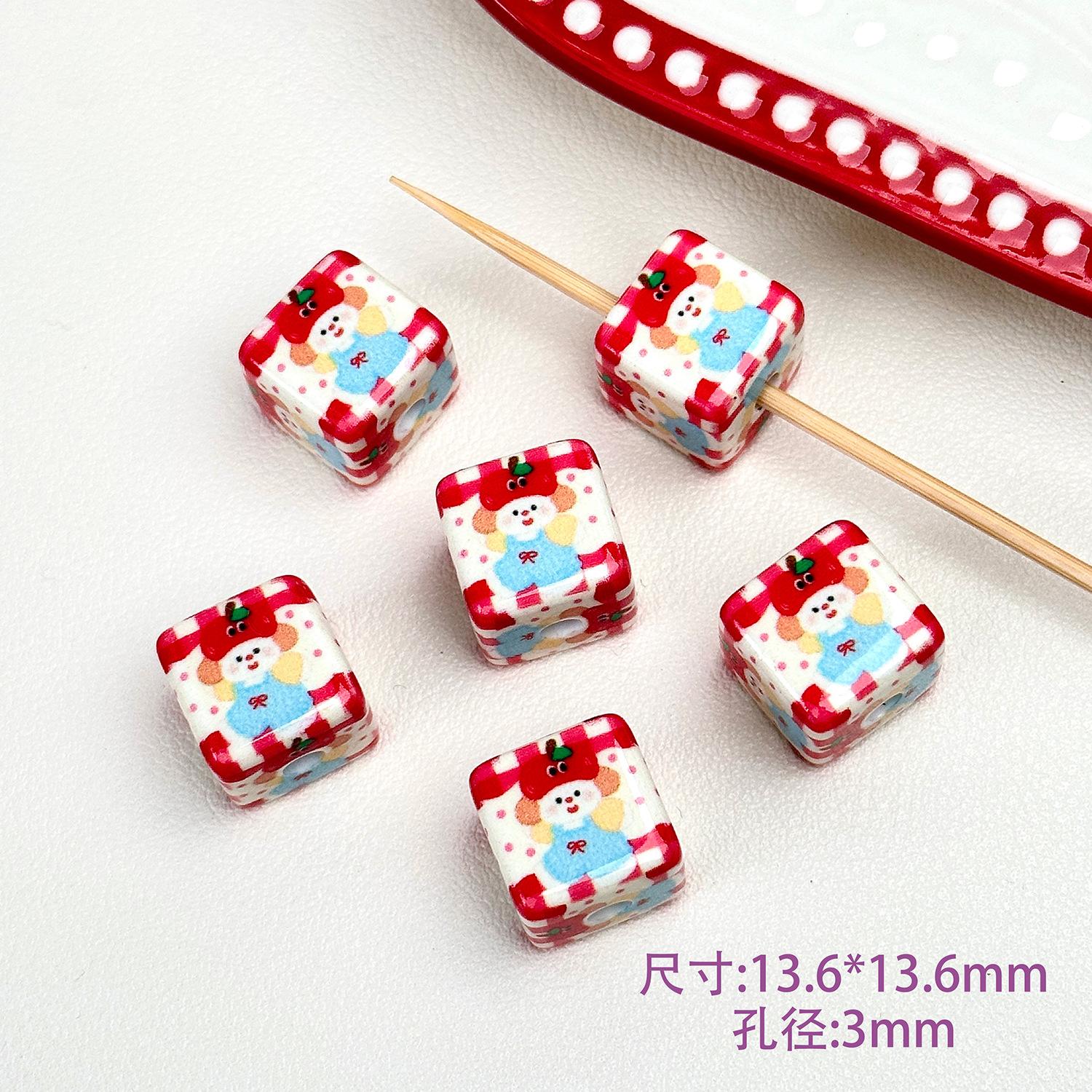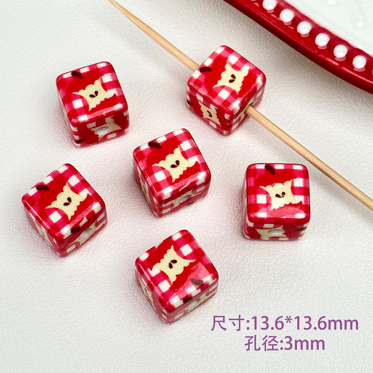 Lindas Cuentas Cuadradas de Manzana Roja Amor Hechas a Mano DIY Cadena para Teléfono Móvil Bolso Colgante Pulsera Material Accesorios de Joyería