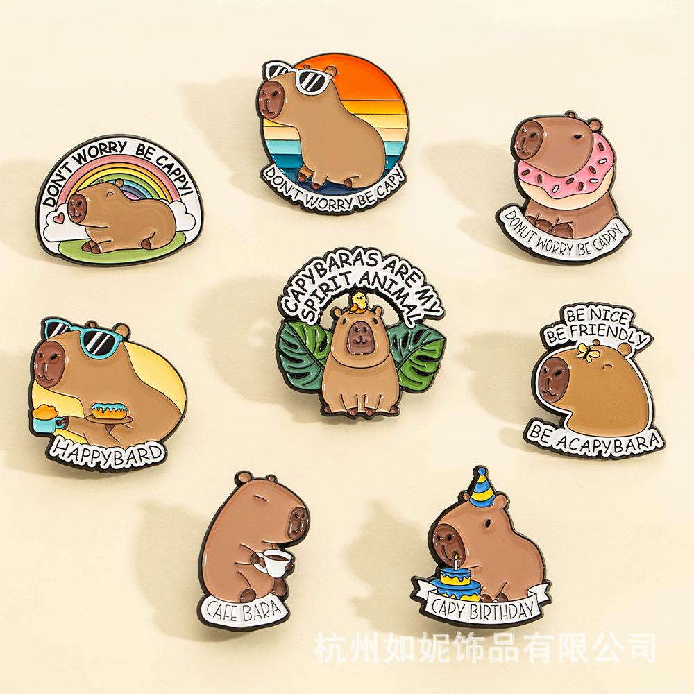 Broche Metálico Serie Animales de Dibujos Animados Más Vendido Transfronterizo Insignia Capibara Ropa Corsage Hebilla Decorativa