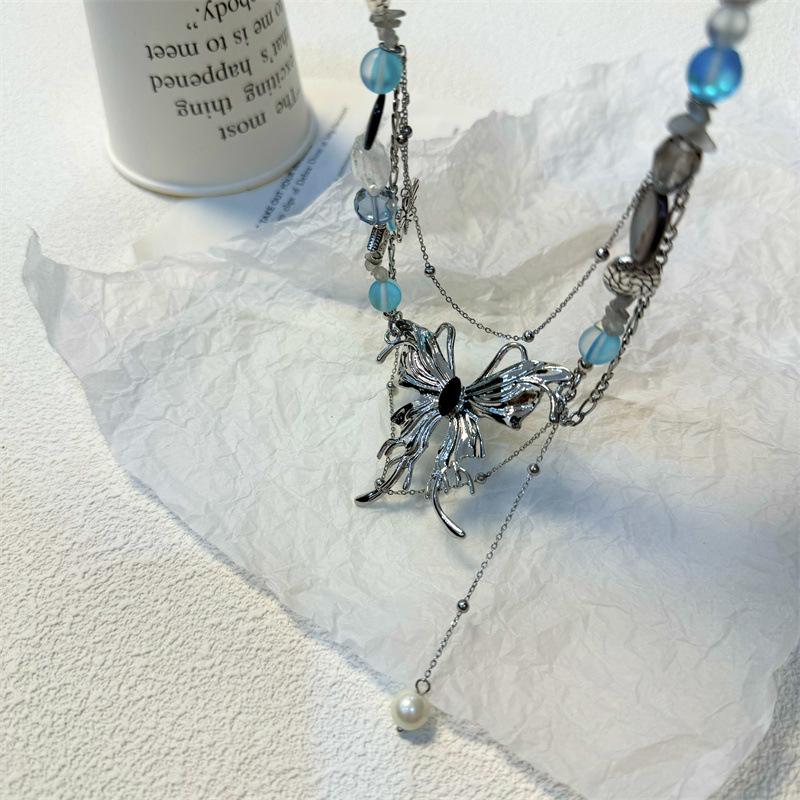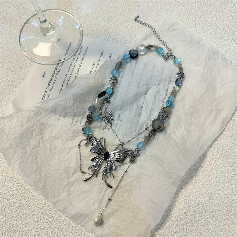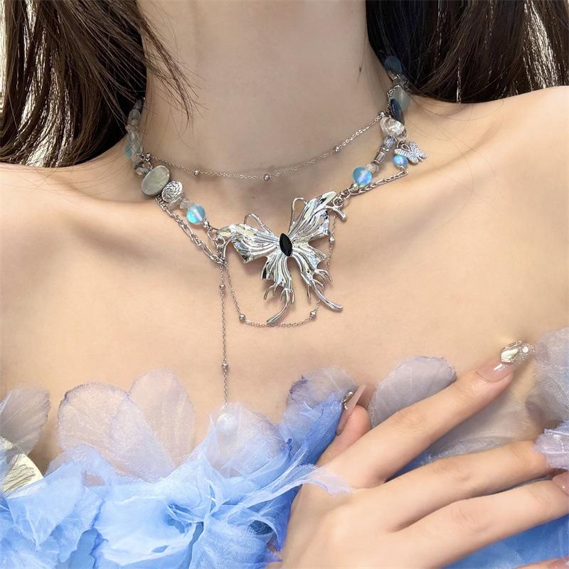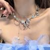 Nuevo collar de mariposa de cristal azul estilo chino para mujer 2023 nuevo collar de diseño nicho de lujo ligero cadena clavicular