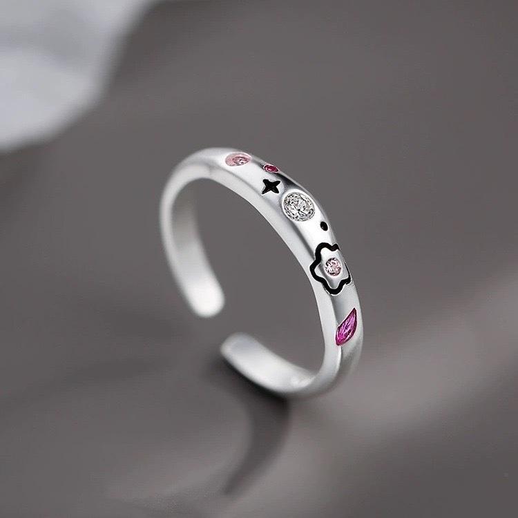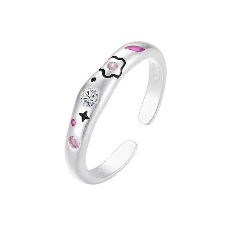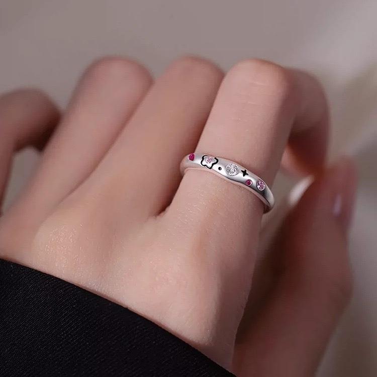 Anillo de diamantes rosa flor estrella para mujer diseño de nicho creativo de lujo ligero simple lindo anillo liso joyería al por mayor