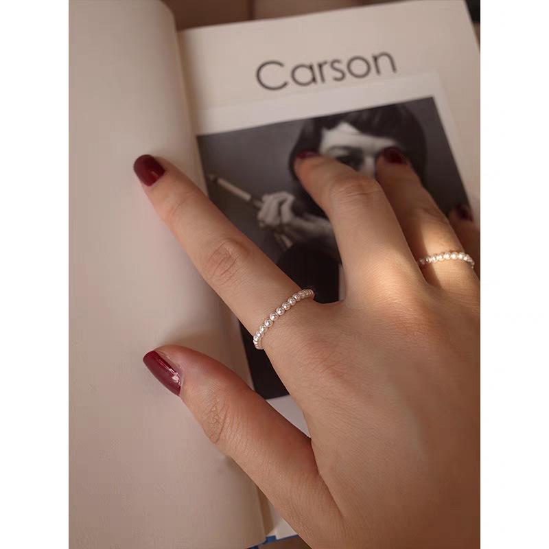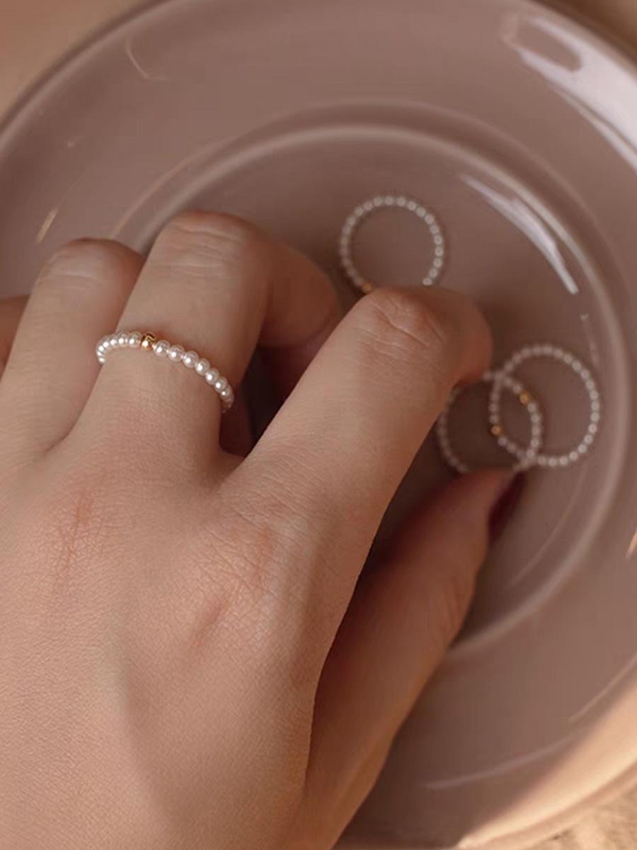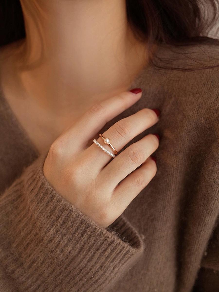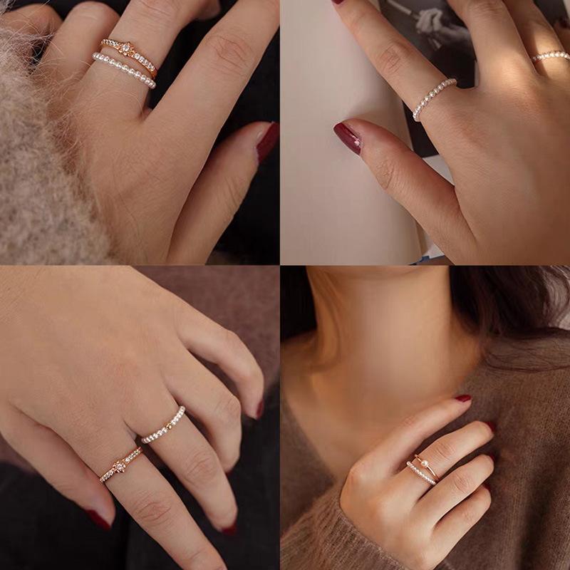 Anillo de Perlas Finas Mini de 2 mm Luz Lujo Diseño Nicho Uso Apilado Anillo para Dedo Índice Anillo Simple Versátil