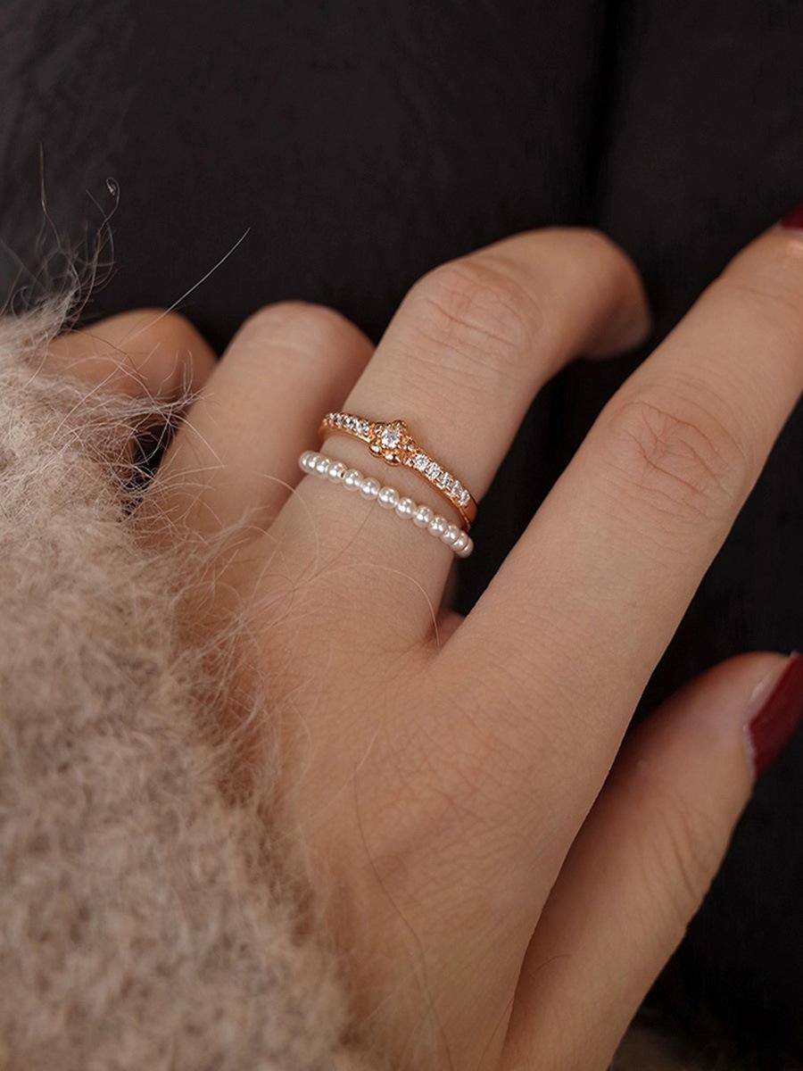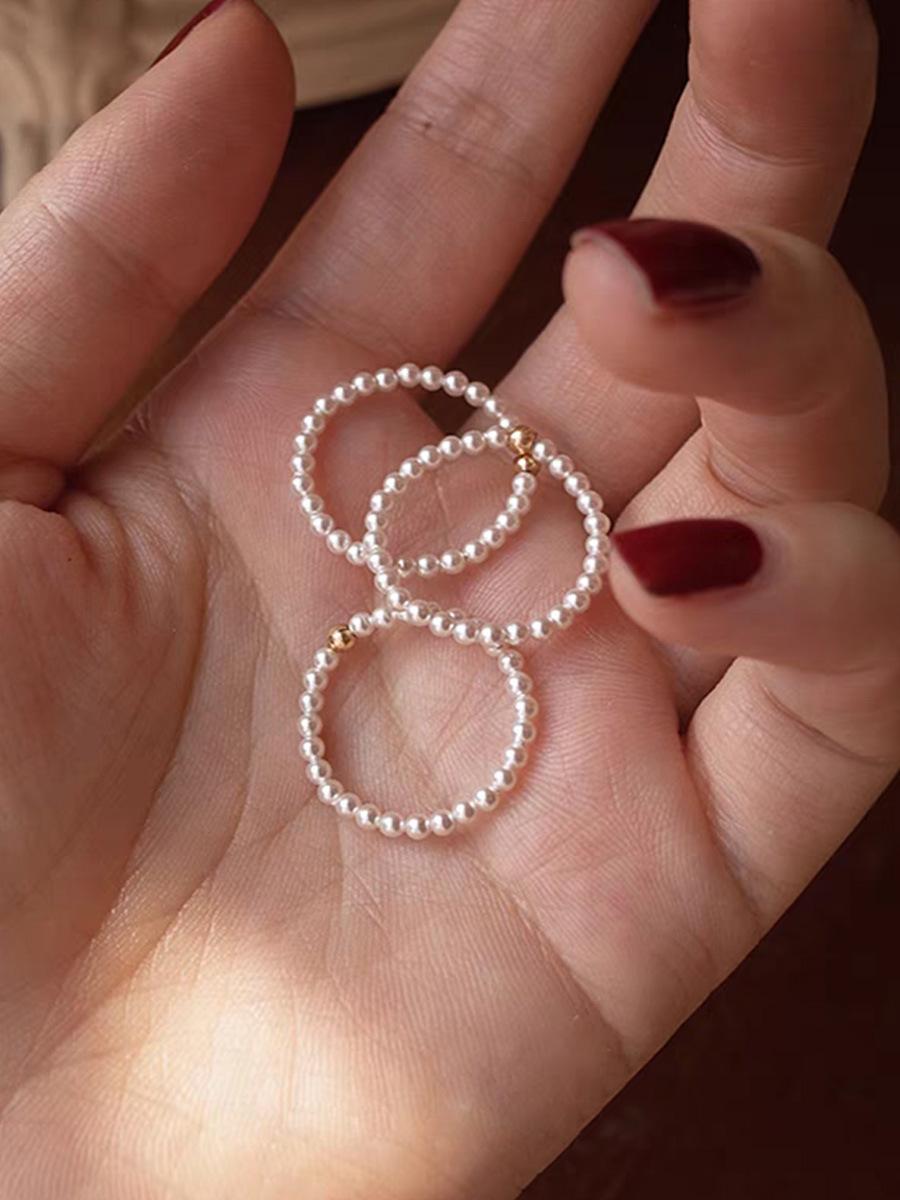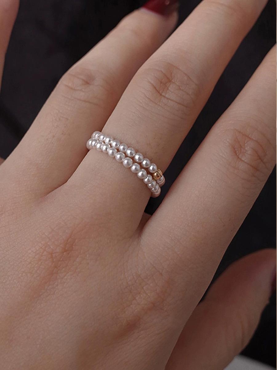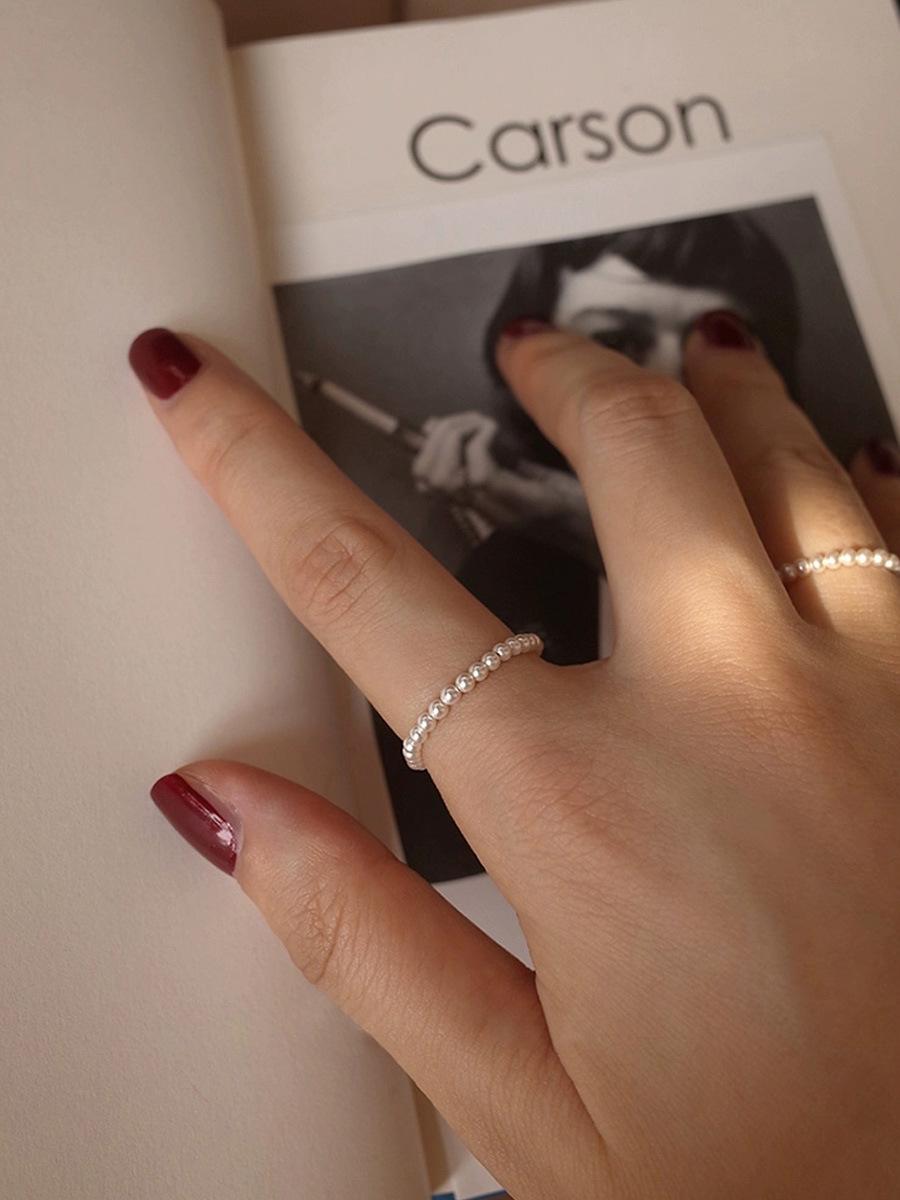 Anillo de Perlas Finas Mini de 2 mm Luz Lujo Diseño Nicho Uso Apilado Anillo para Dedo Índice Anillo Simple Versátil