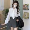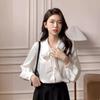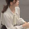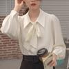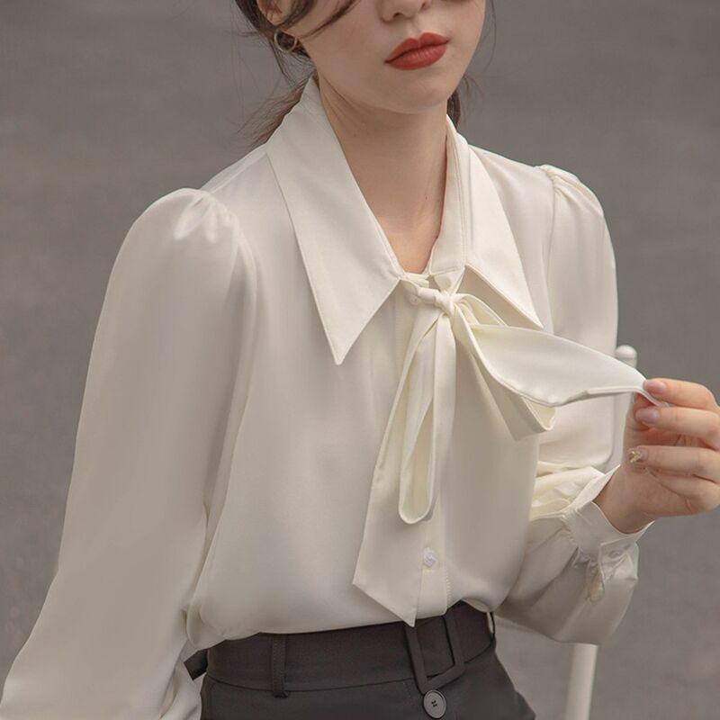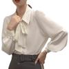 Primavera y Verano 2025 Nueva Camisa de Lazo de Manga Linterna Camisa Interior para Mujer Diseño Formal con Cordones Top Profesional