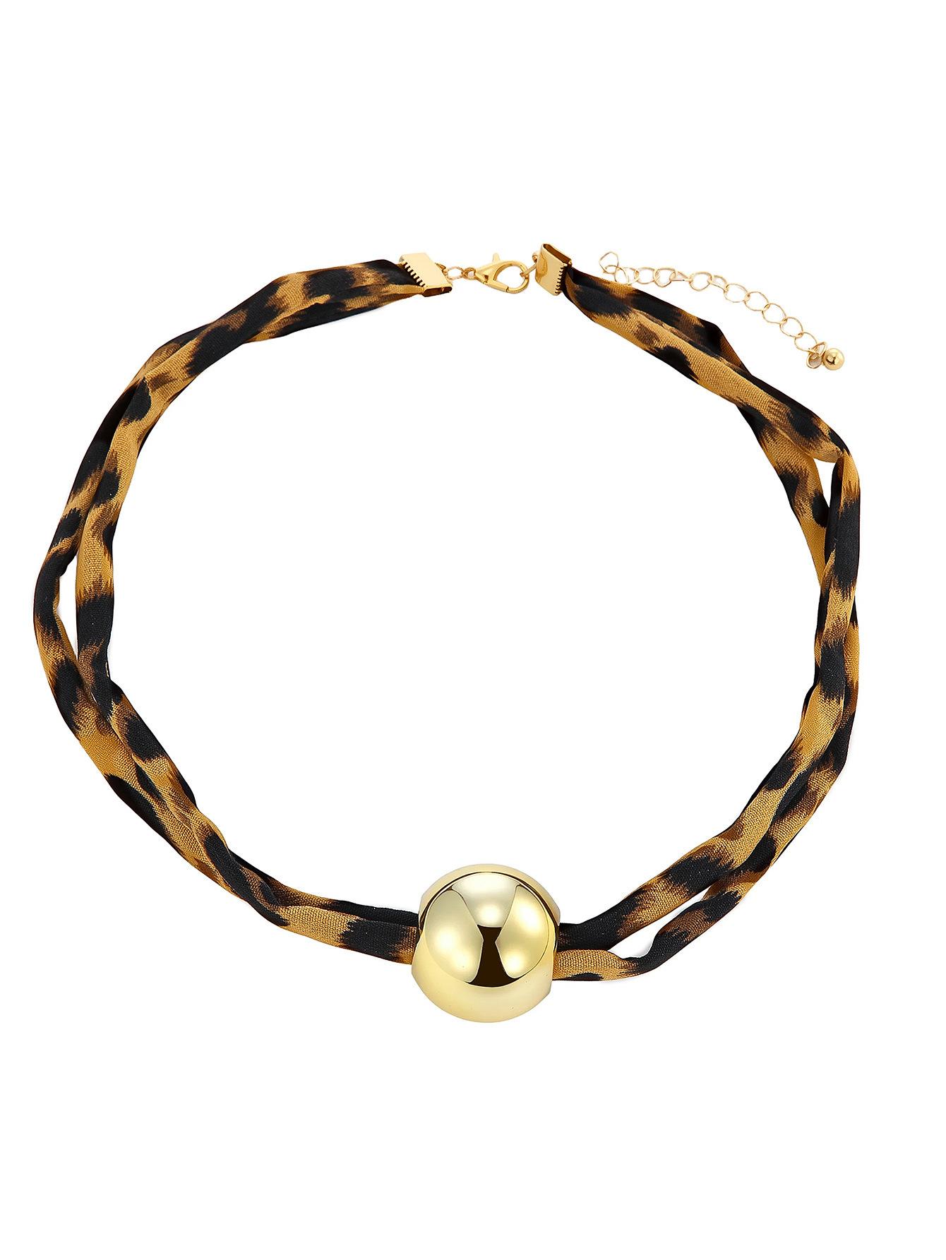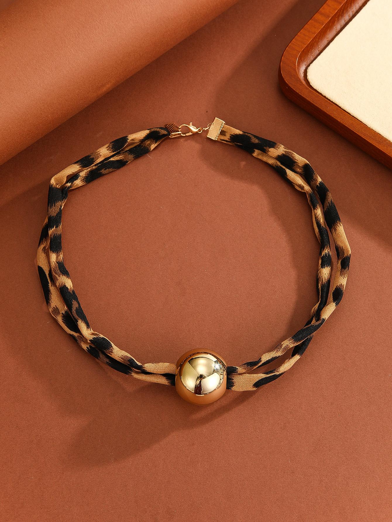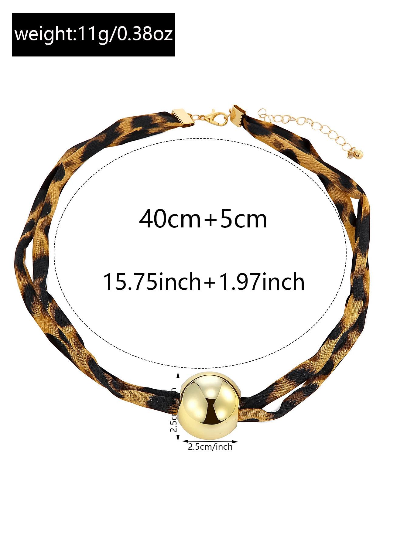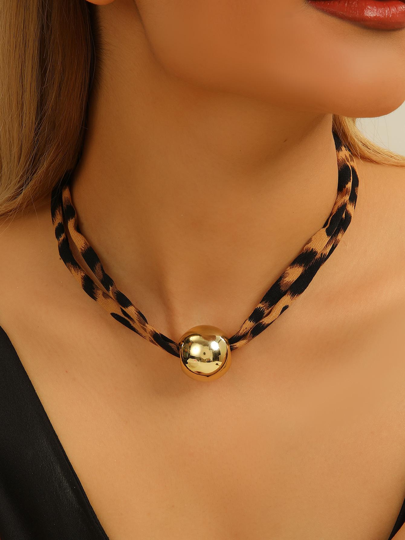 Collar Estampado Leopardo Venta al por Mayor Verano Europeo y Americano Transfronterizo Exagerado Bola de Metal Cadena Clavícula Diseño Nicho para Mujer Gargantilla