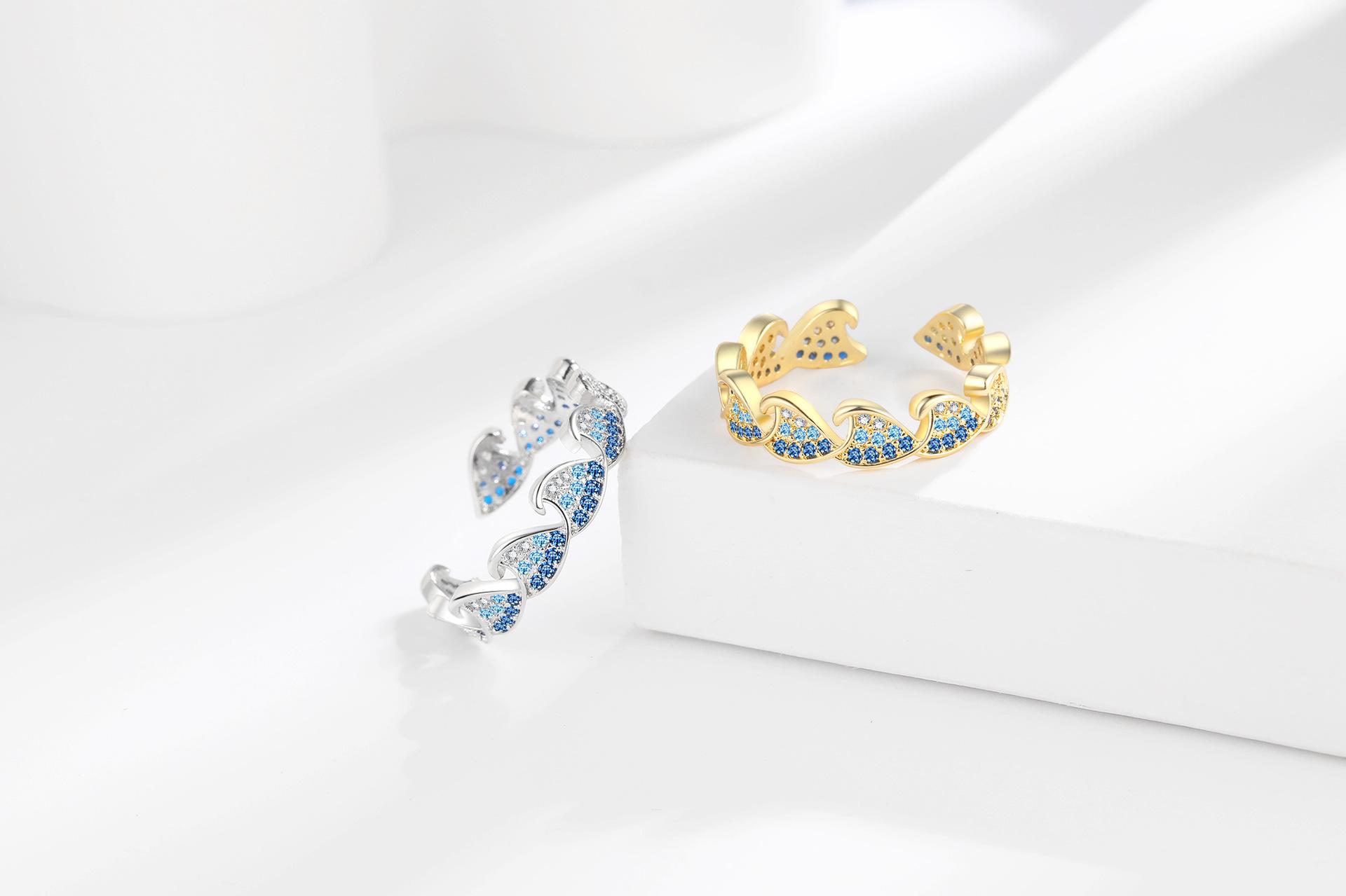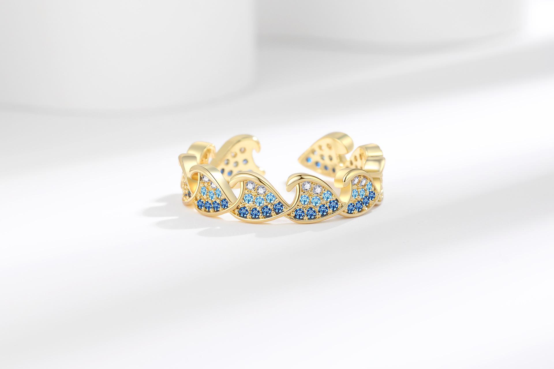 Anillo de onda de circonita de diamante de verano nuevo transfronterizo, anillo de onda simple para mujer a la moda, joyería europea y americana al por mayor