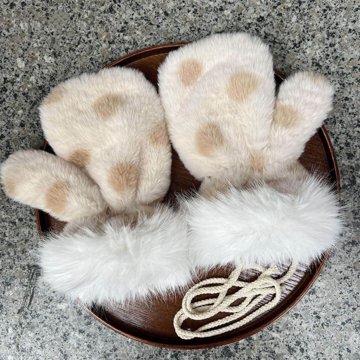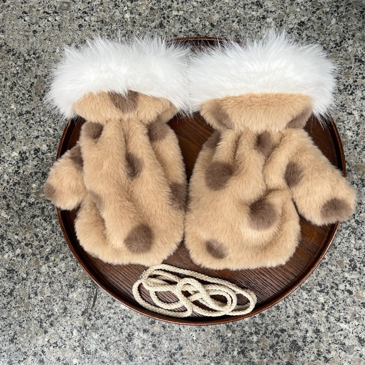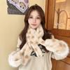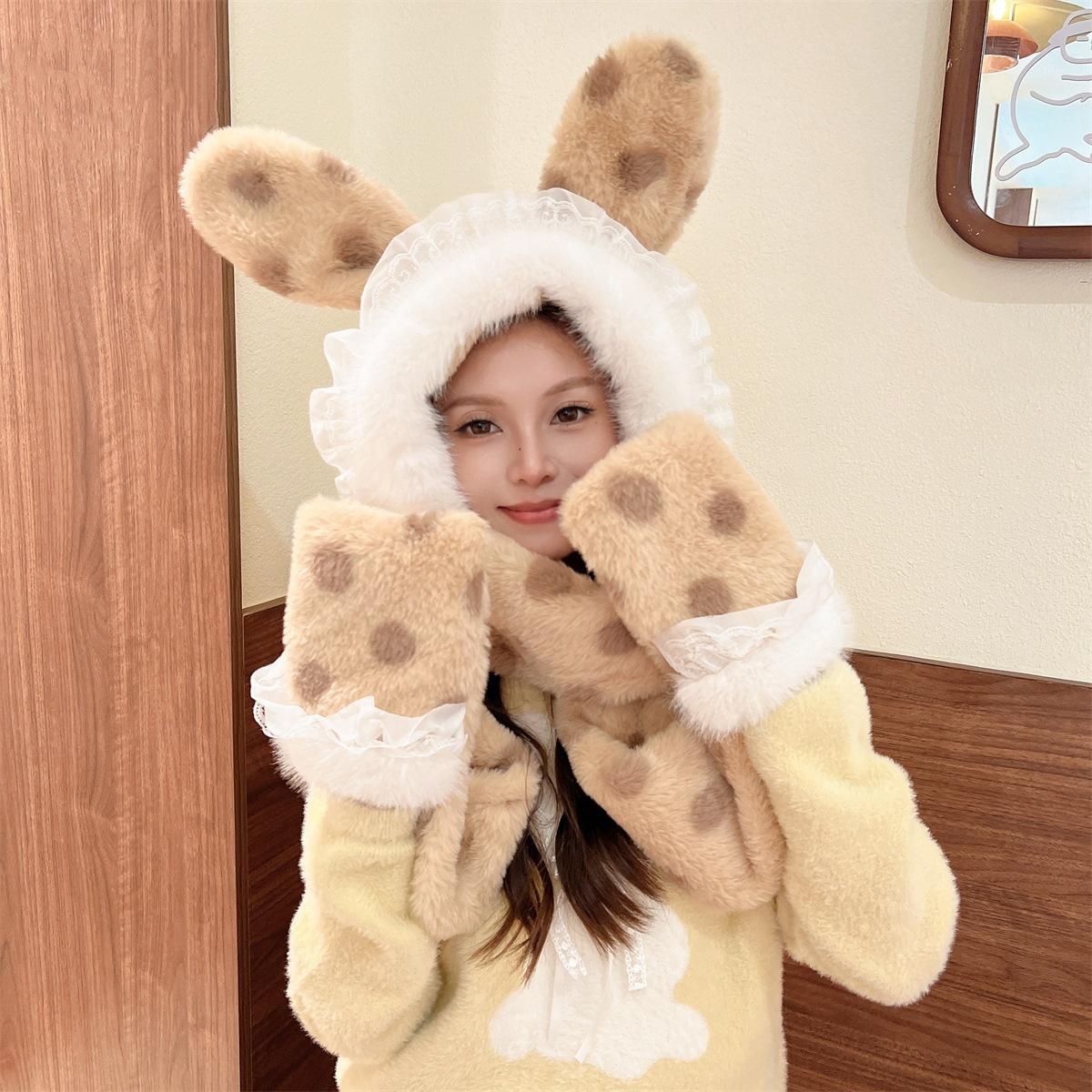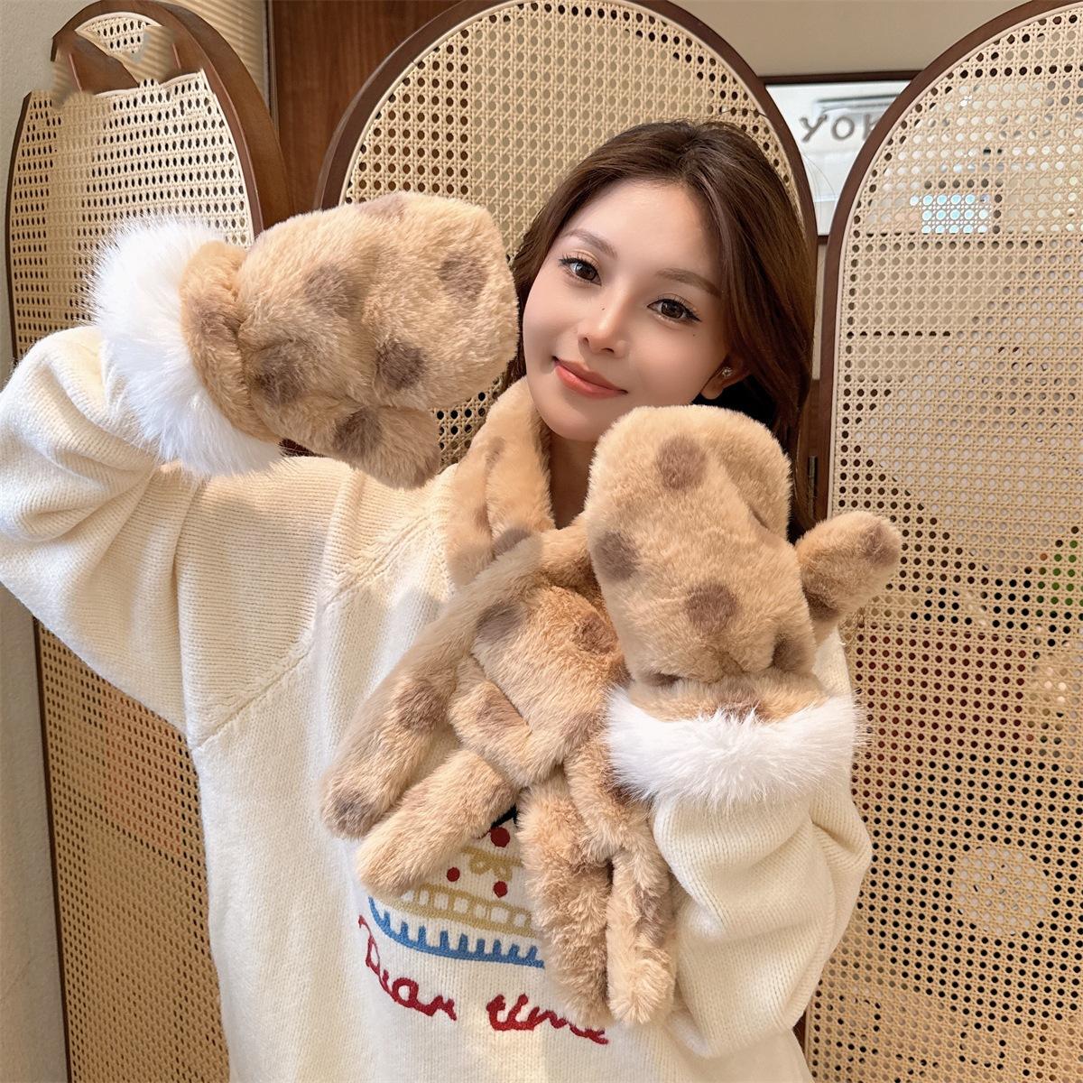 Guantes Cálidos de Invierno 2025 para Mujer, Lindo Conjunto de Bufanda de Felpa para Estudiante de Invierno con Forro Polar y Calentador de Cuello Engrosado de Imitación de Piel de Conejo