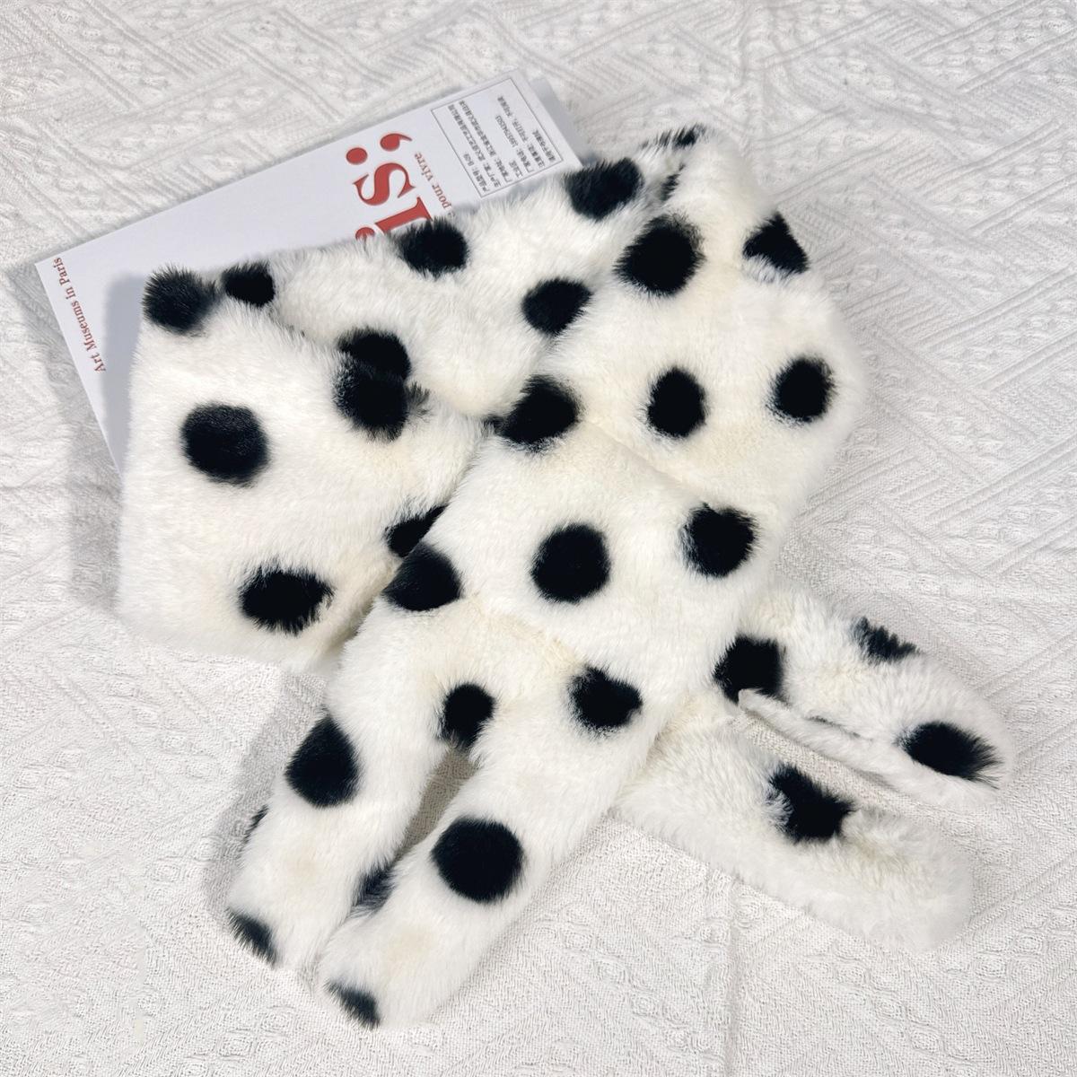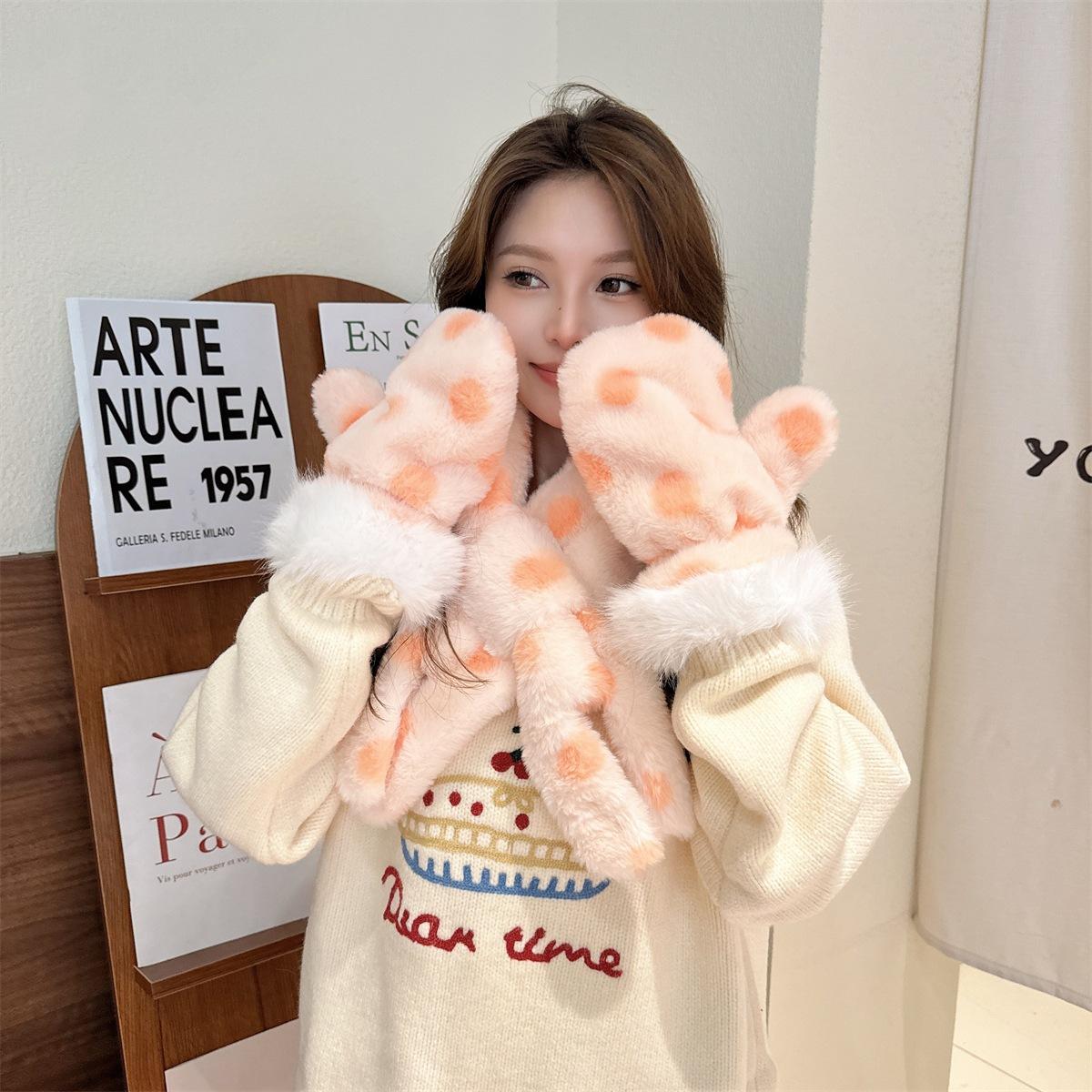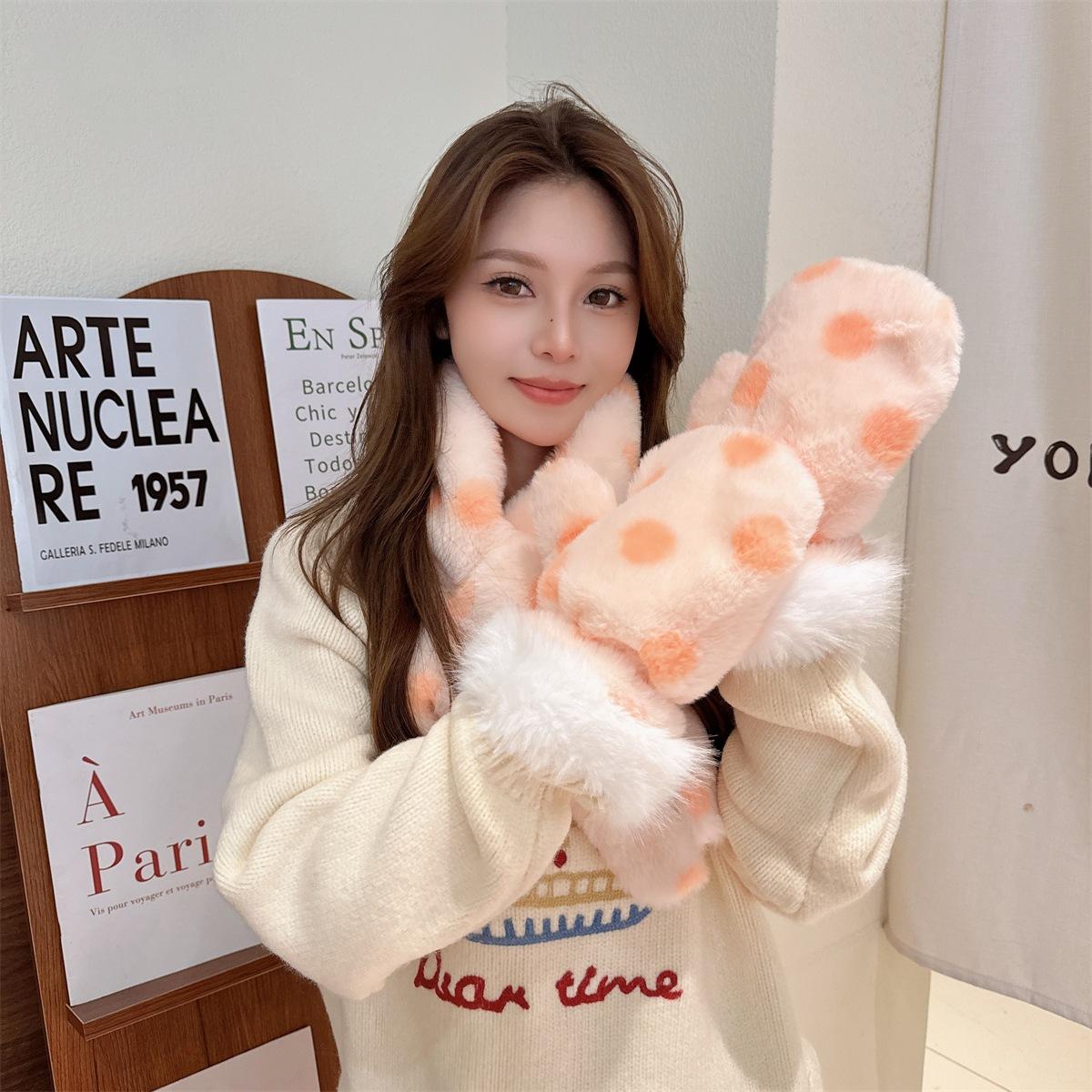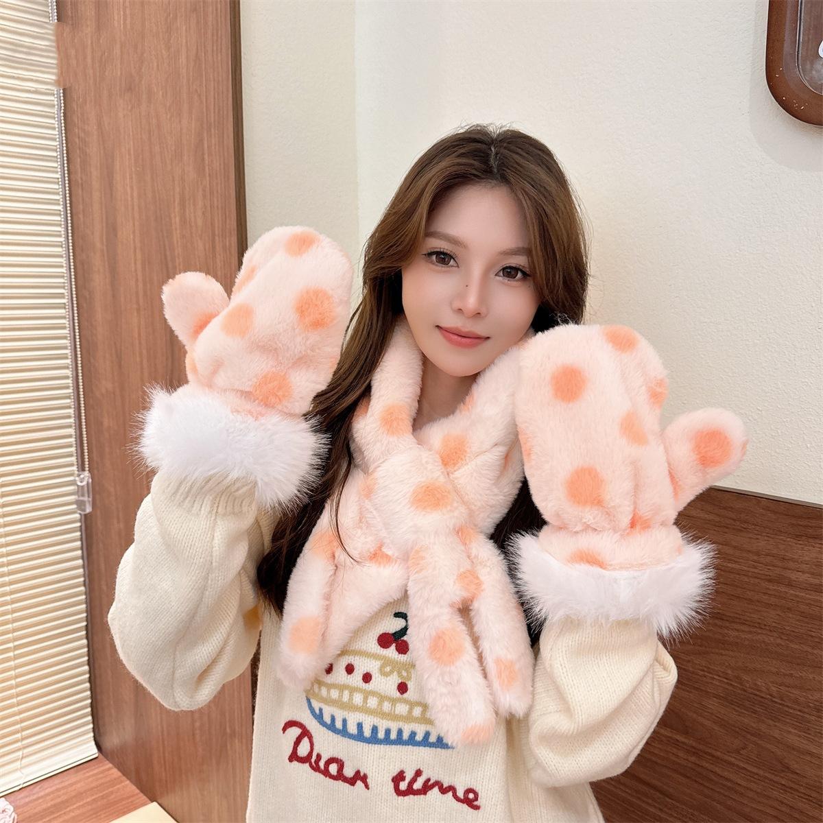 Polka dot gloves and scarf two-piece set—orange pink, Polka dot gloves and scarf two-piece set—white, Polka do...