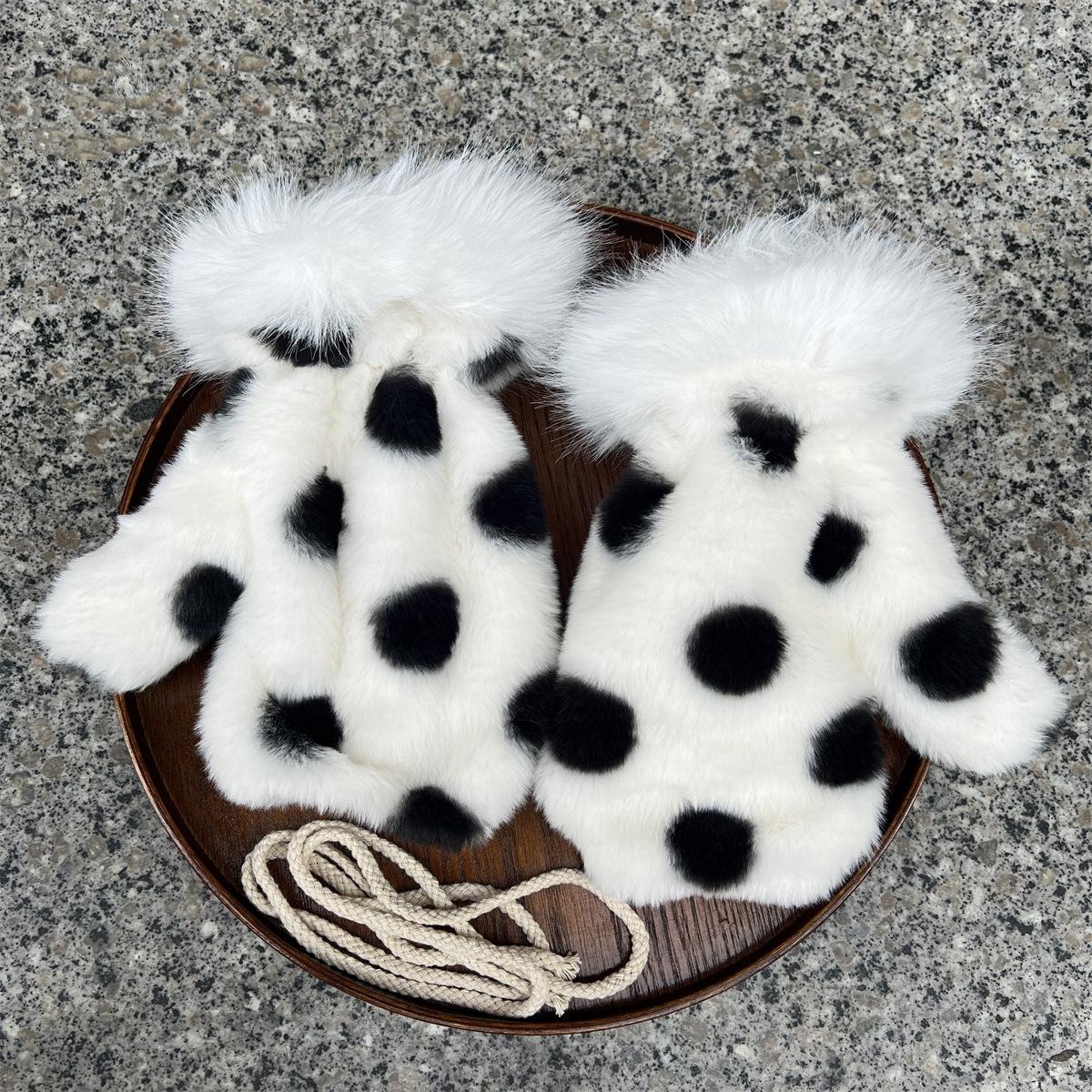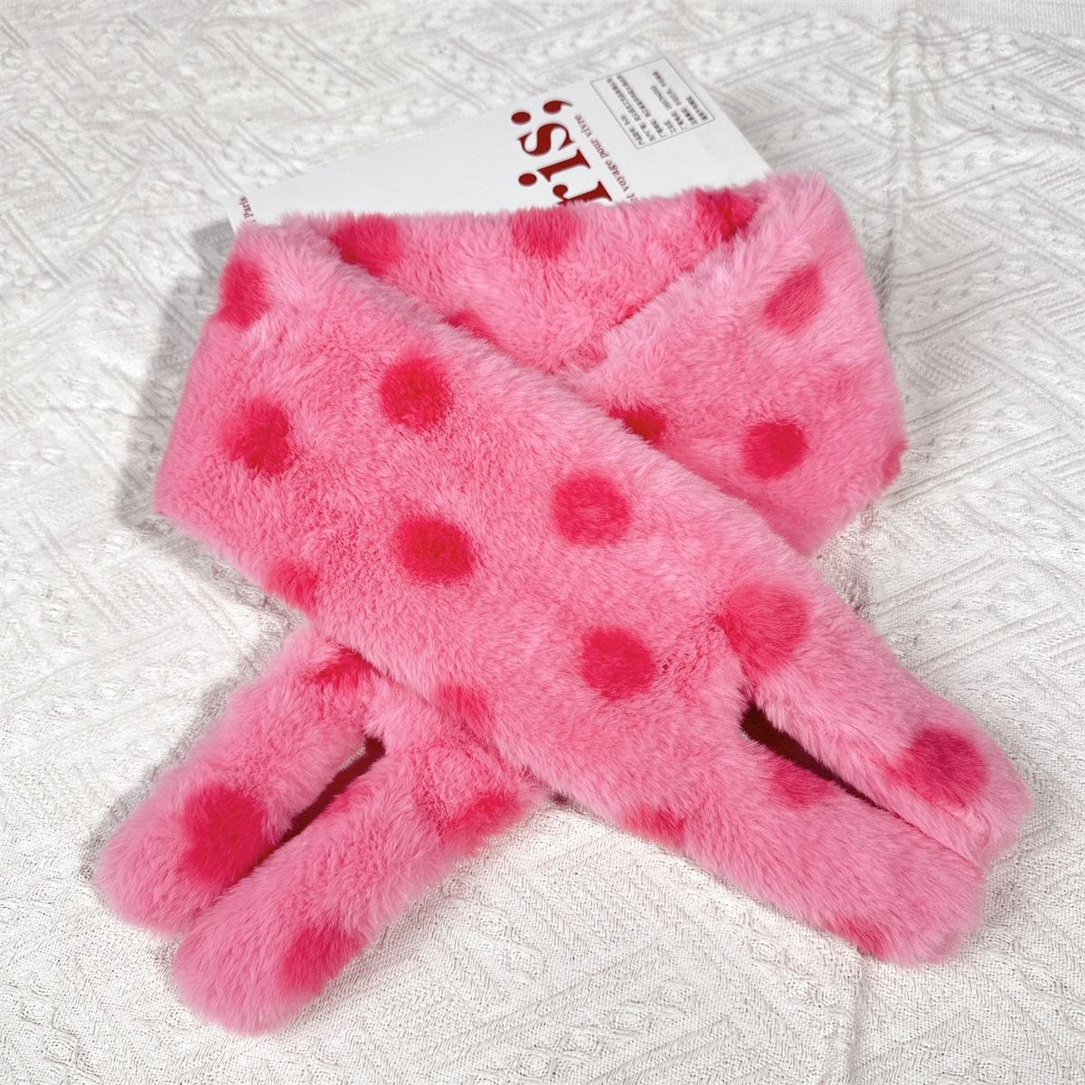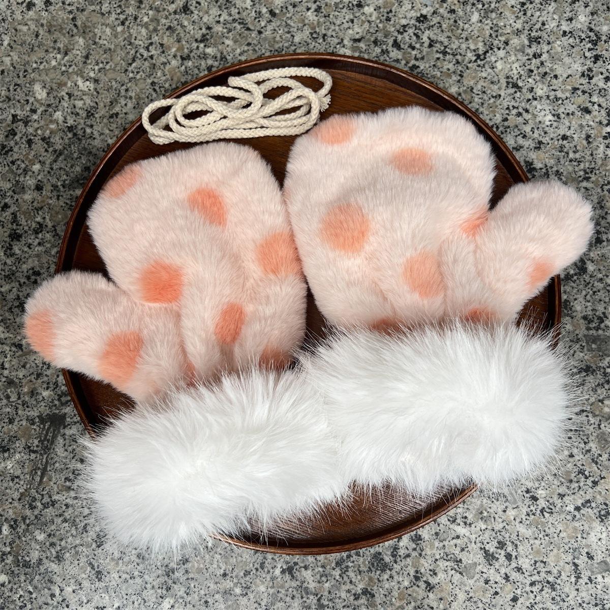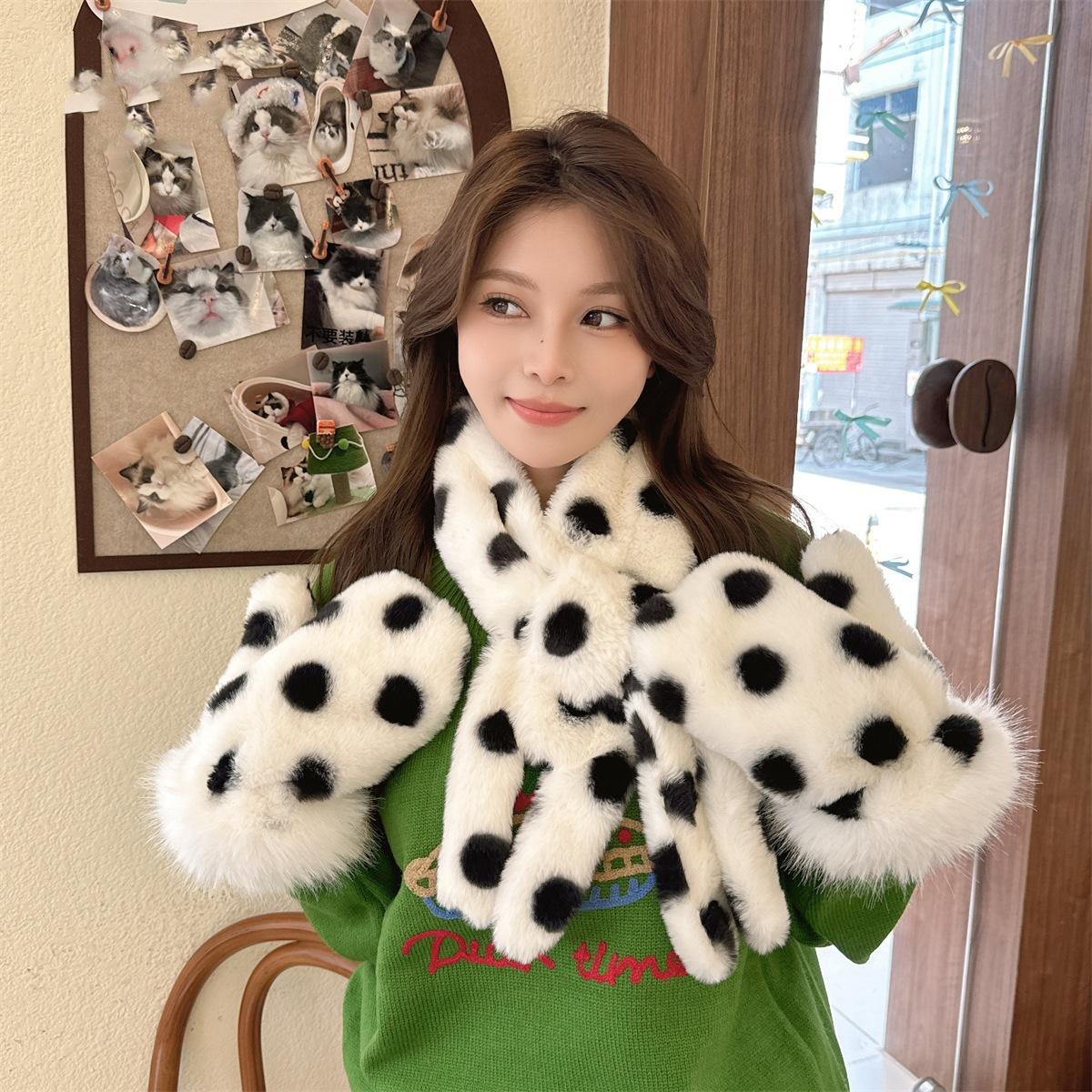 Polka dot gloves and scarf two-piece set—orange pink, Polka dot gloves and scarf two-piece set—white, Polka do...