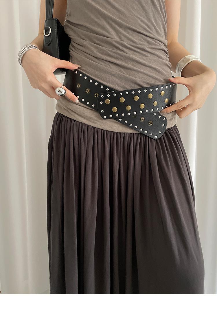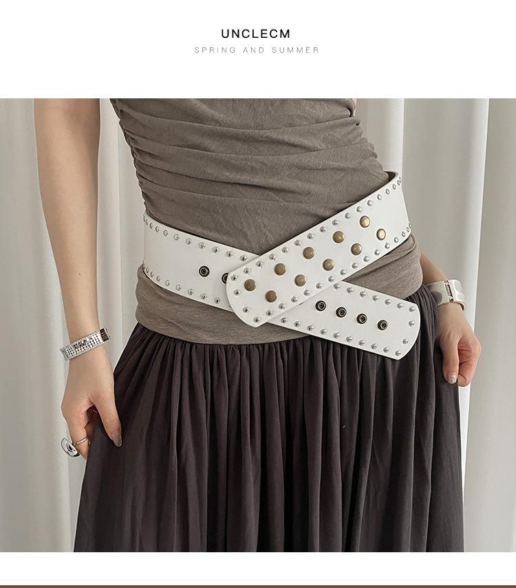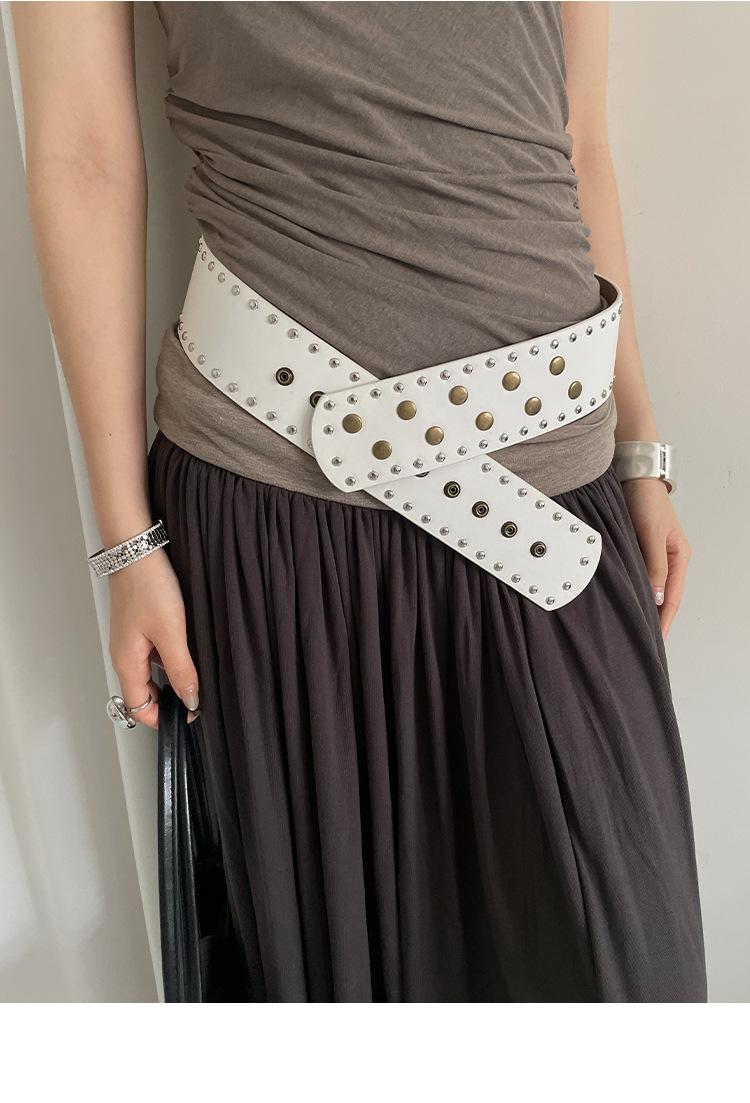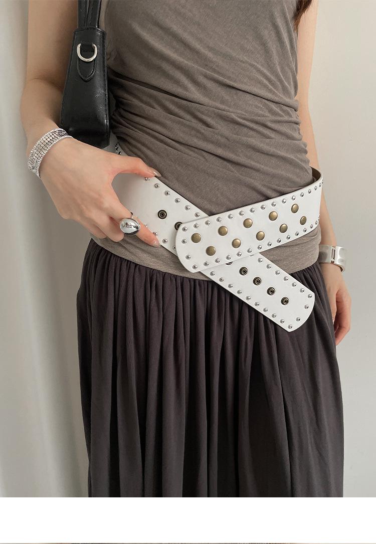 Cinturón de Remaches Estilo Punk Retro Nicho para Mujer, Diseño de Versión Ancha, Falda Faja Versátil Personalizada, Cinturón para Jeans