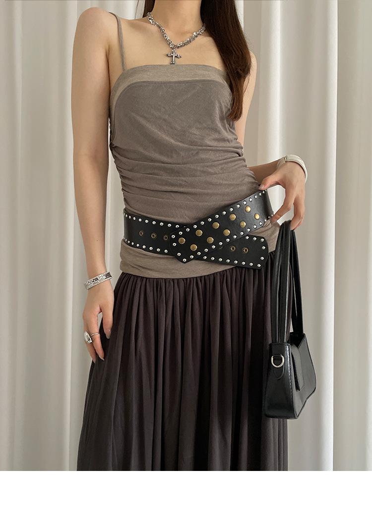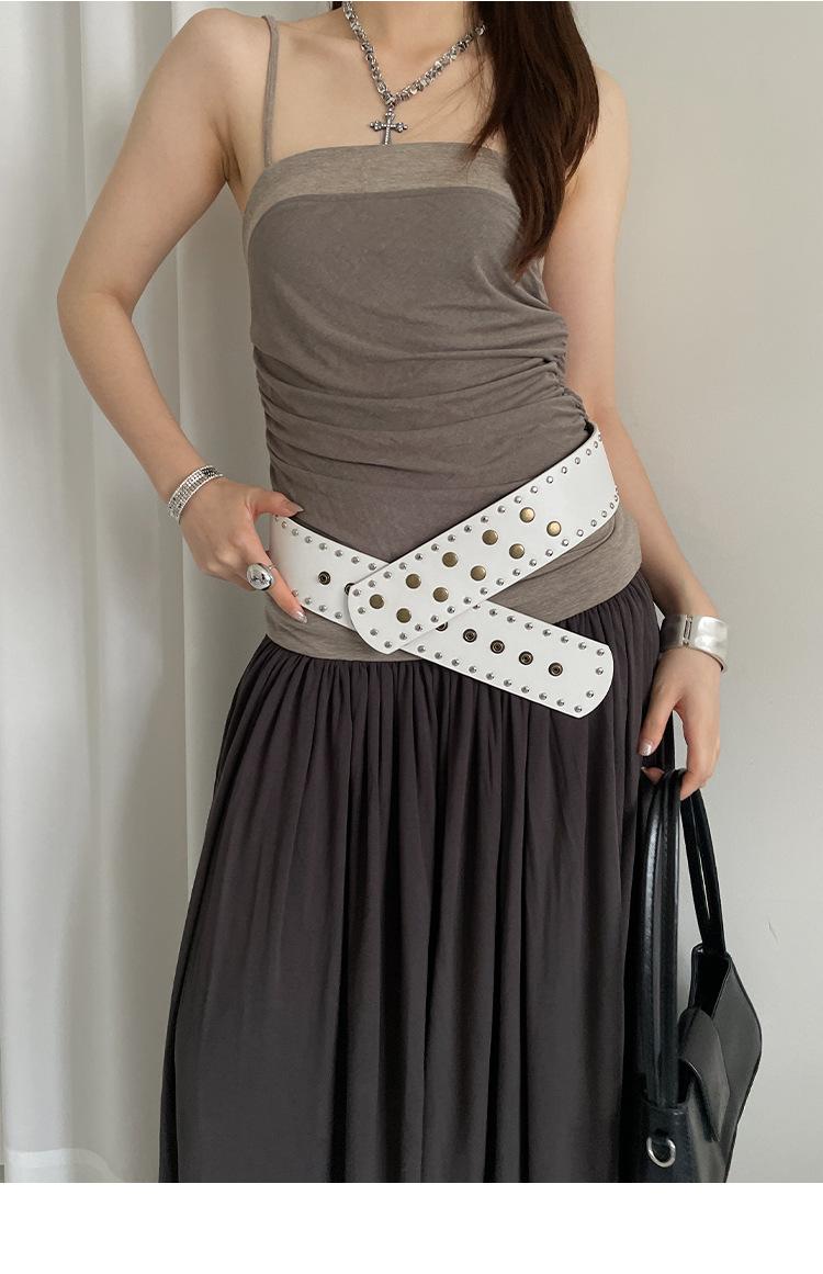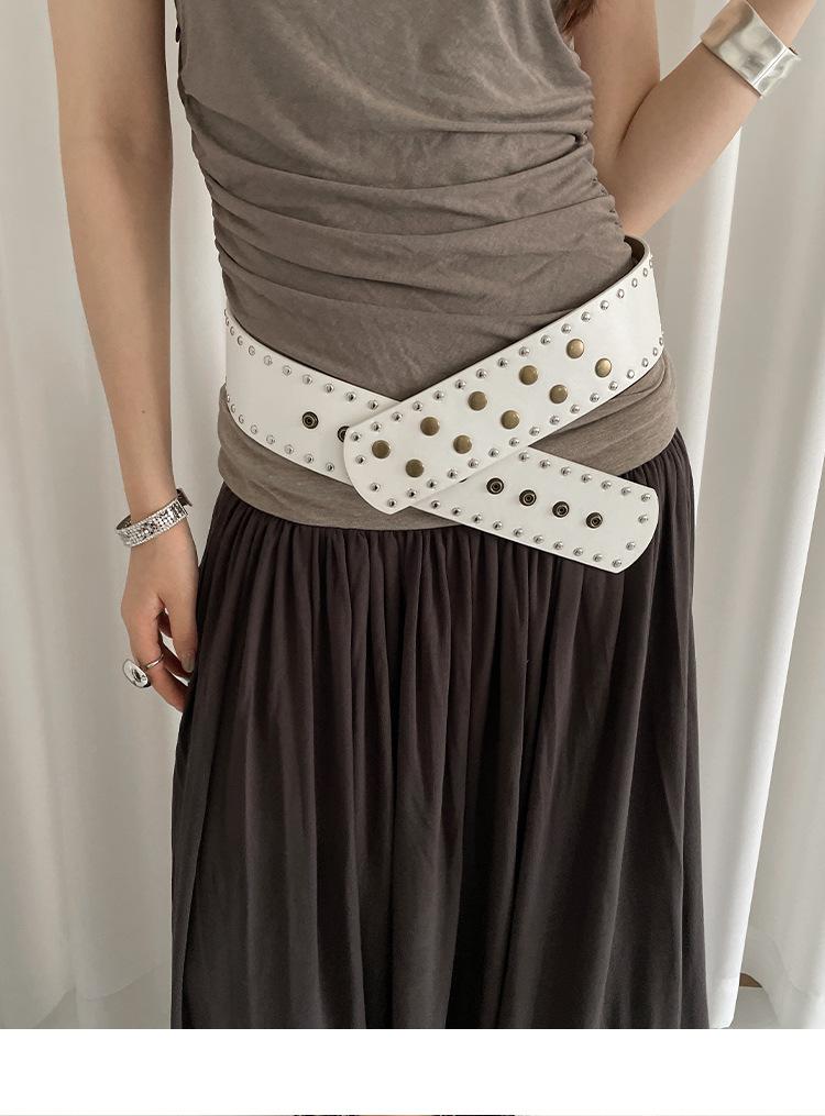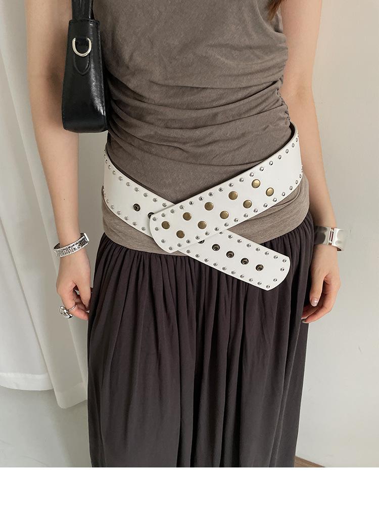 Cinturón de Remaches Estilo Punk Retro Nicho para Mujer, Diseño de Versión Ancha, Falda Faja Versátil Personalizada, Cinturón para Jeans