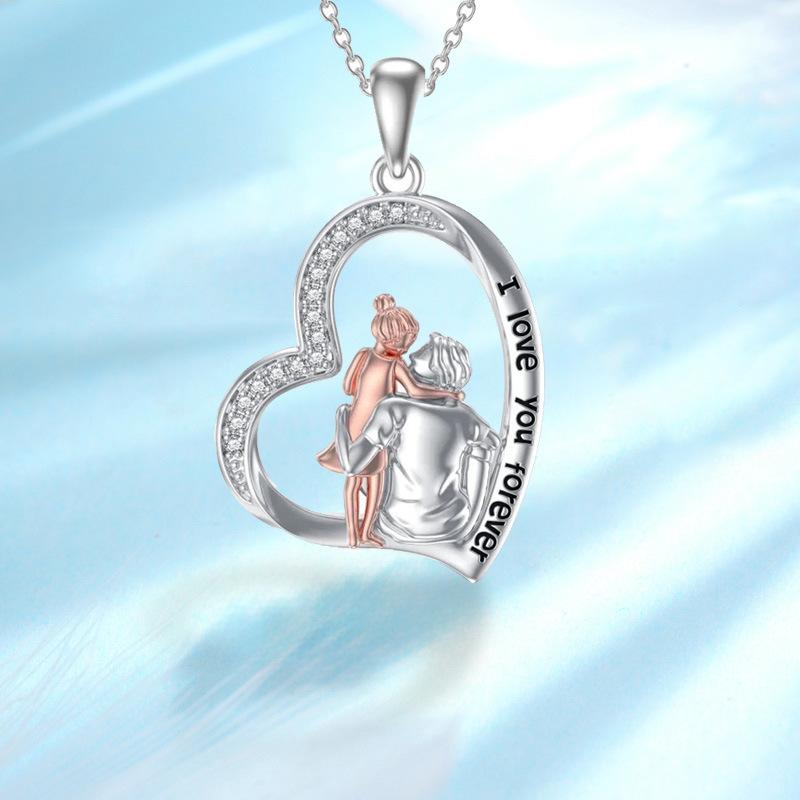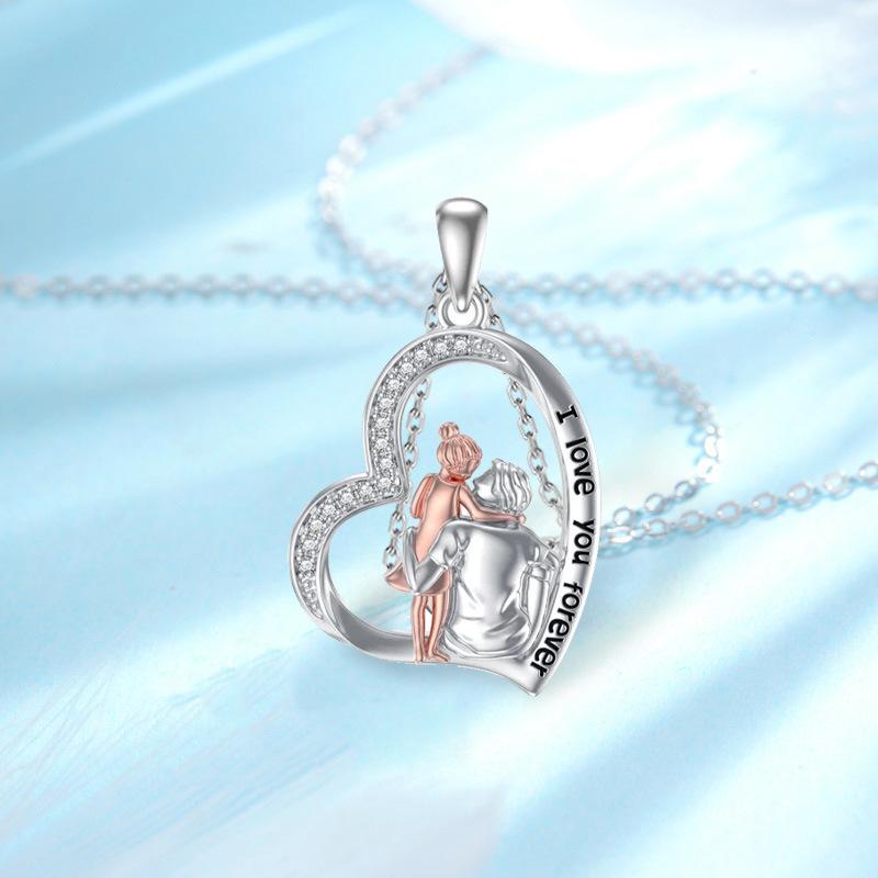 Collar de Corazón para el Día de la Madre de Amazon de Venta Caliente Transfronterizo Regalo Cadena de Clavícula de Moda Bicolor Europea y Americana Colgante S925
