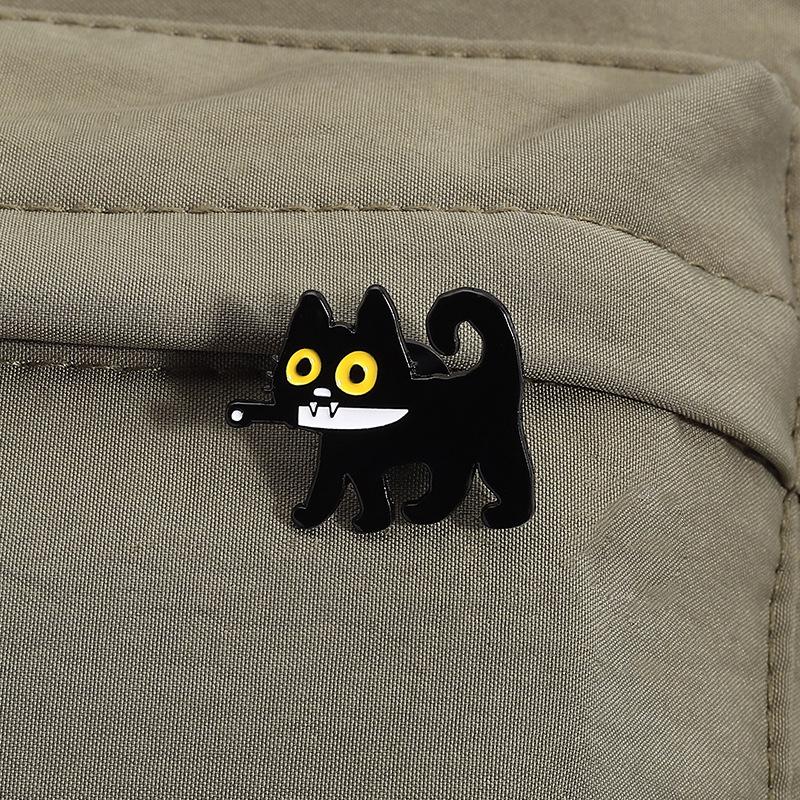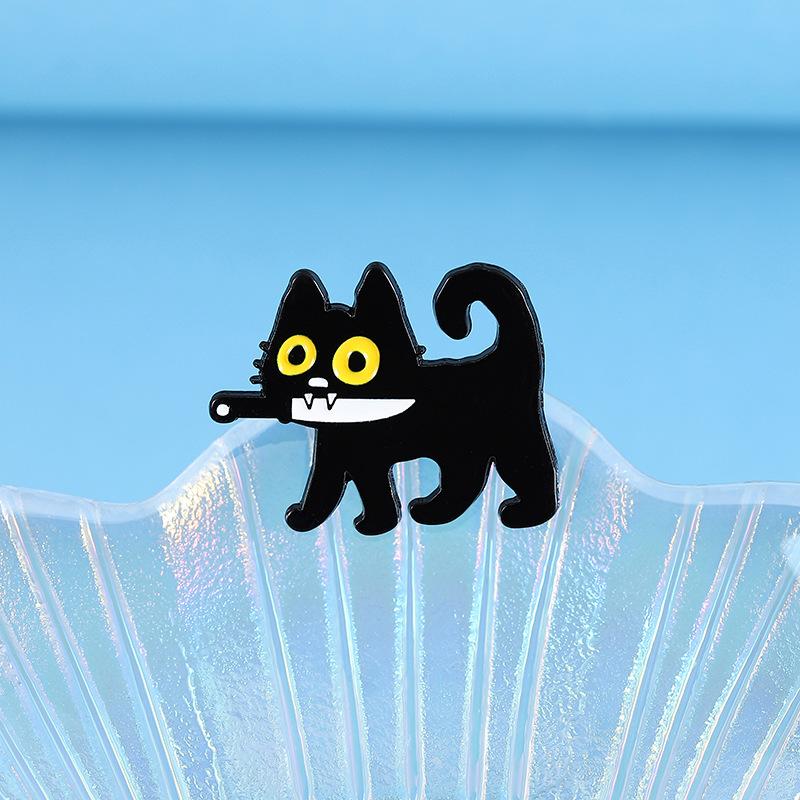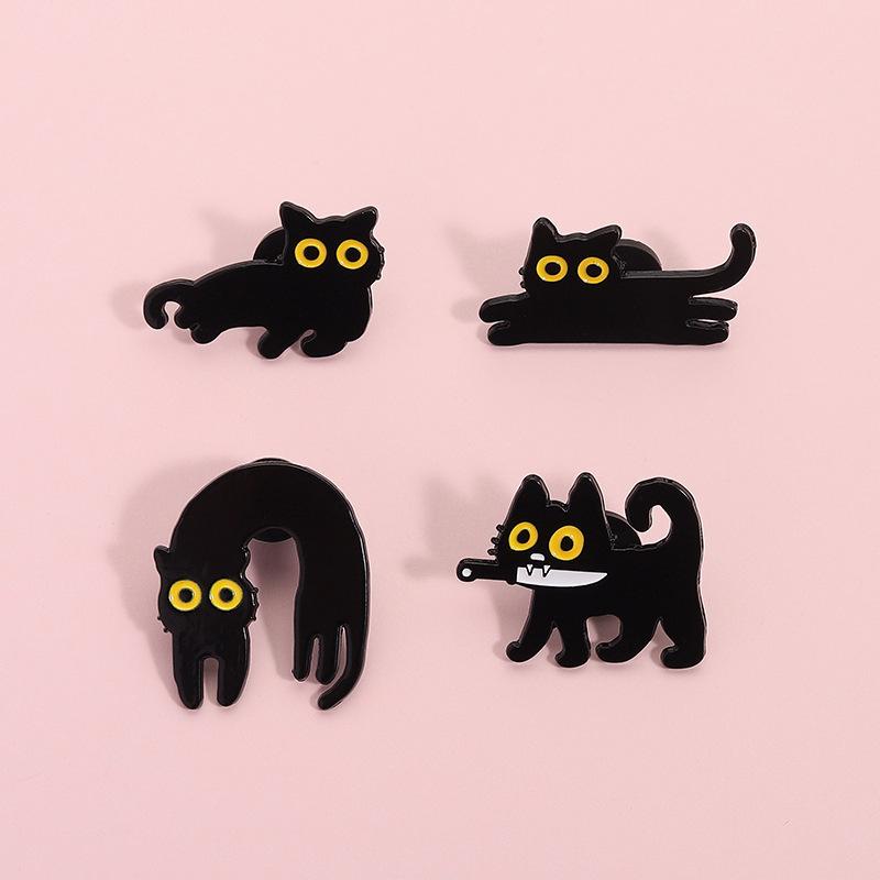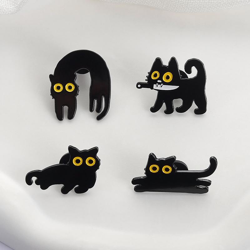 Broche de la serie de gatos negros lindos y nuevos, comercio exterior, insignia creativa de personalidad de dibujos animados con forma de gato líquido