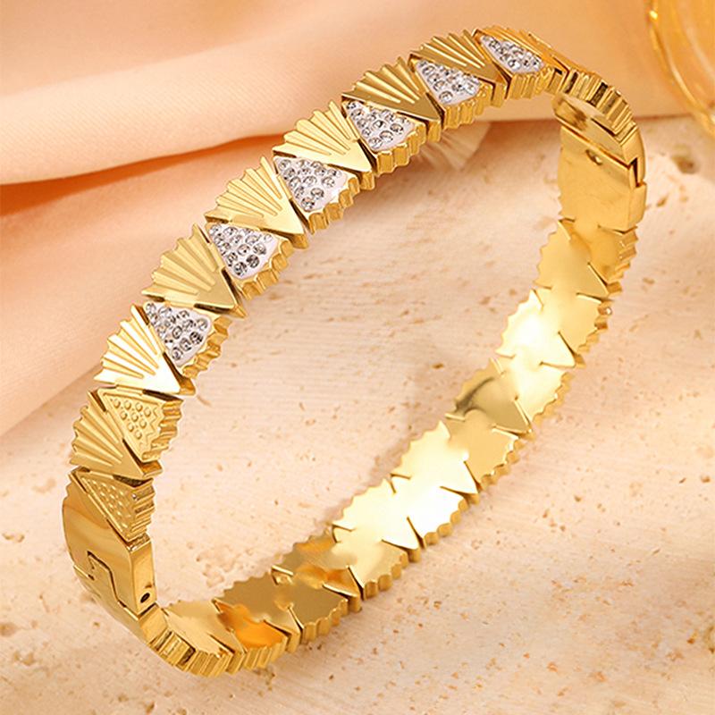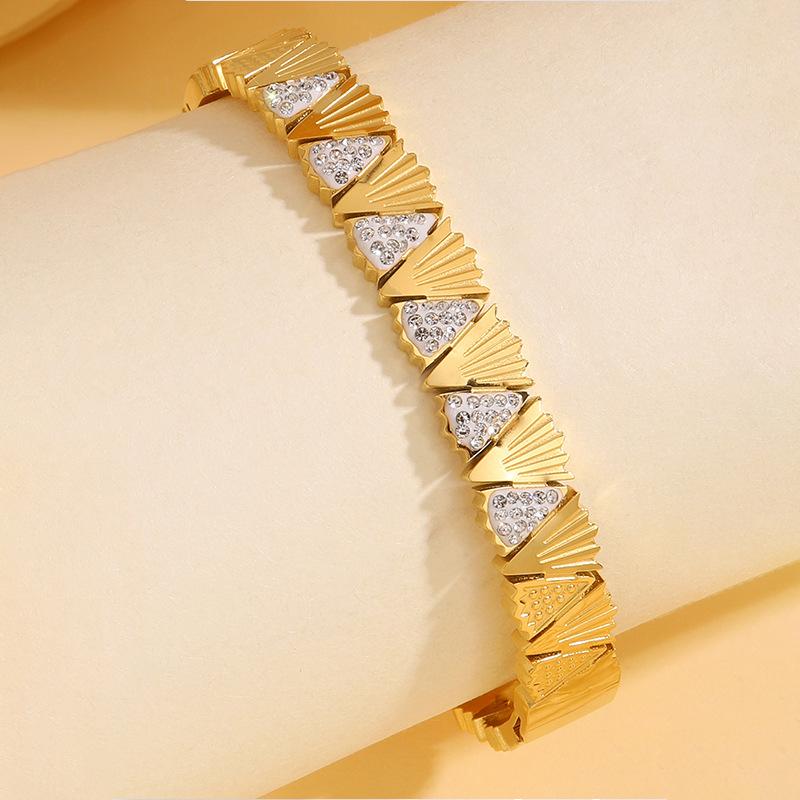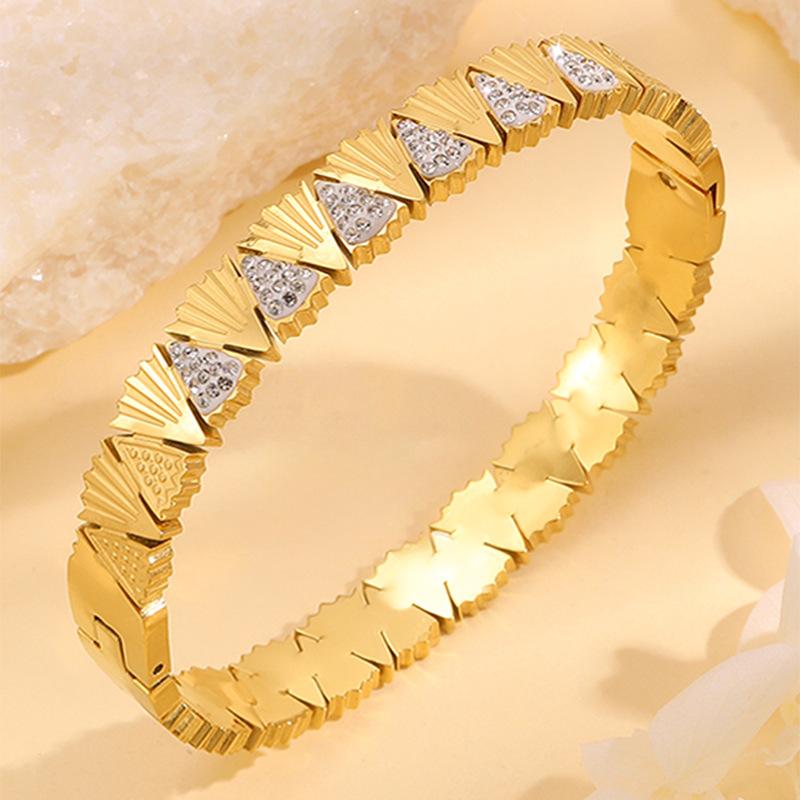 Pulsera de Acero Inoxidable Retro con Incrustaciones de Diamantes para Mujer con Hebilla Apilada Europea y Americana Transfronteriza Pulsera de Medio Diamante de Acero de Titanio Joyería que No se Desvanece