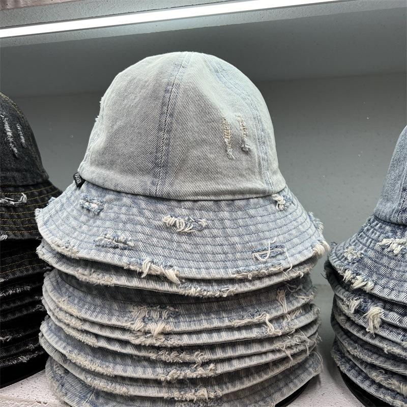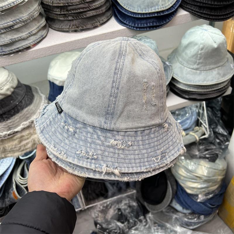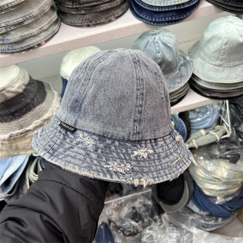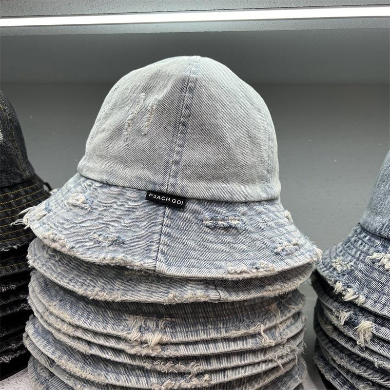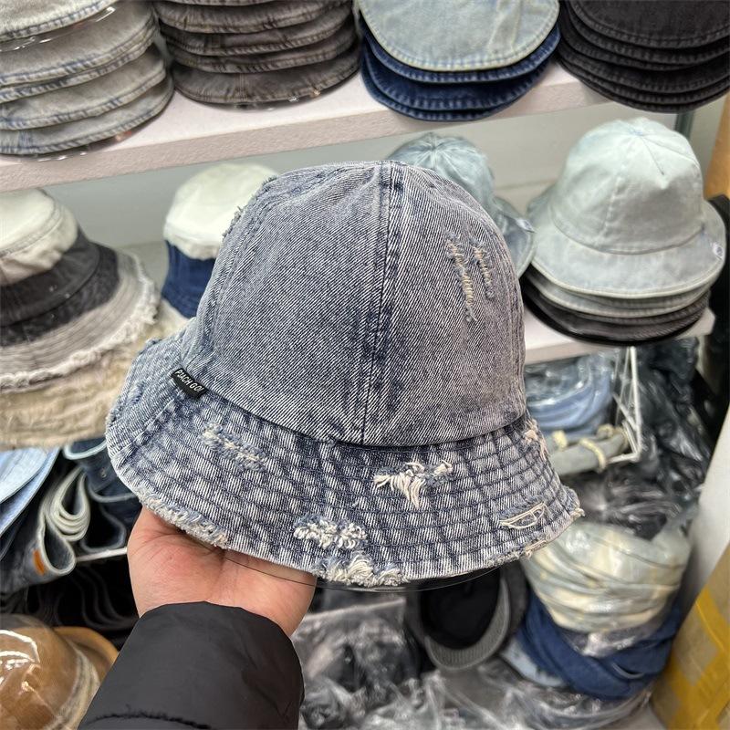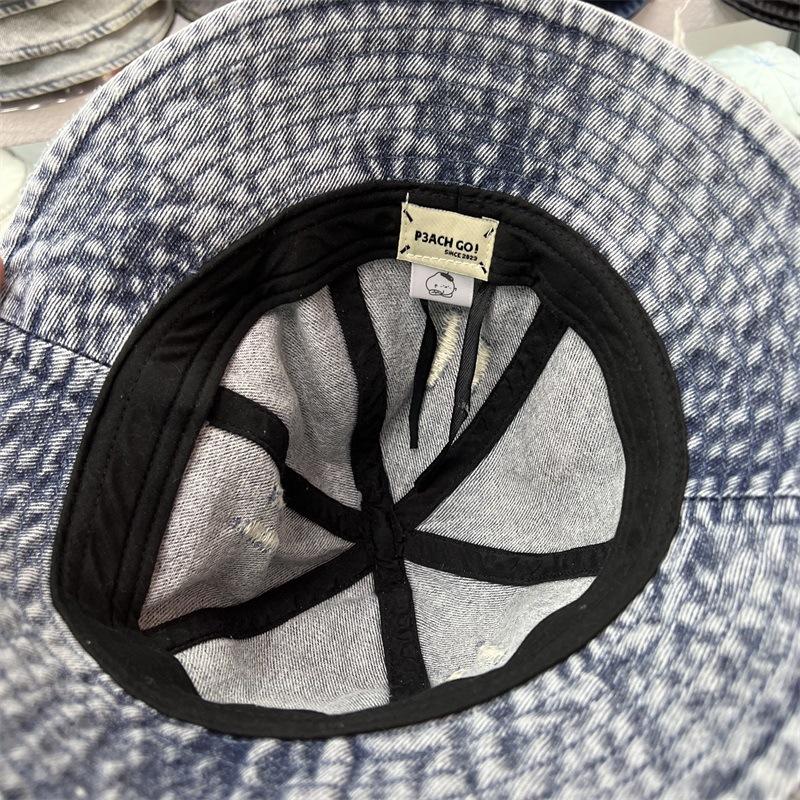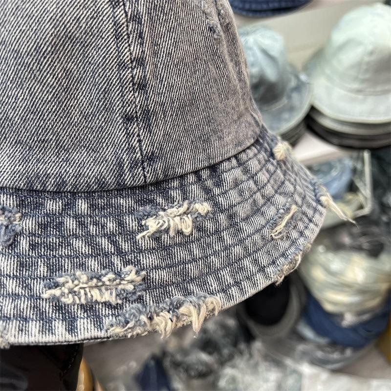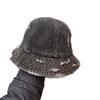 Sombrero de Pescador de Mezclilla Roto Nuevo de Primavera y Verano para Mujer, Estilo Japonés Vintage Versátil Protección Solar Sombrero para el Sol, Sombrero Pequeño Adelgazante para el Rostro