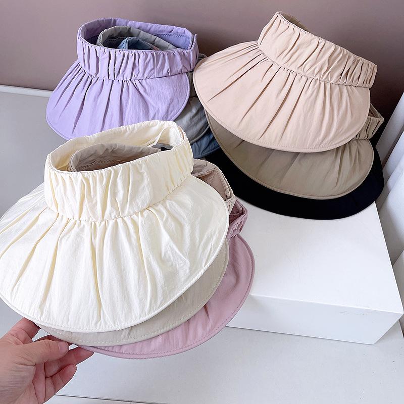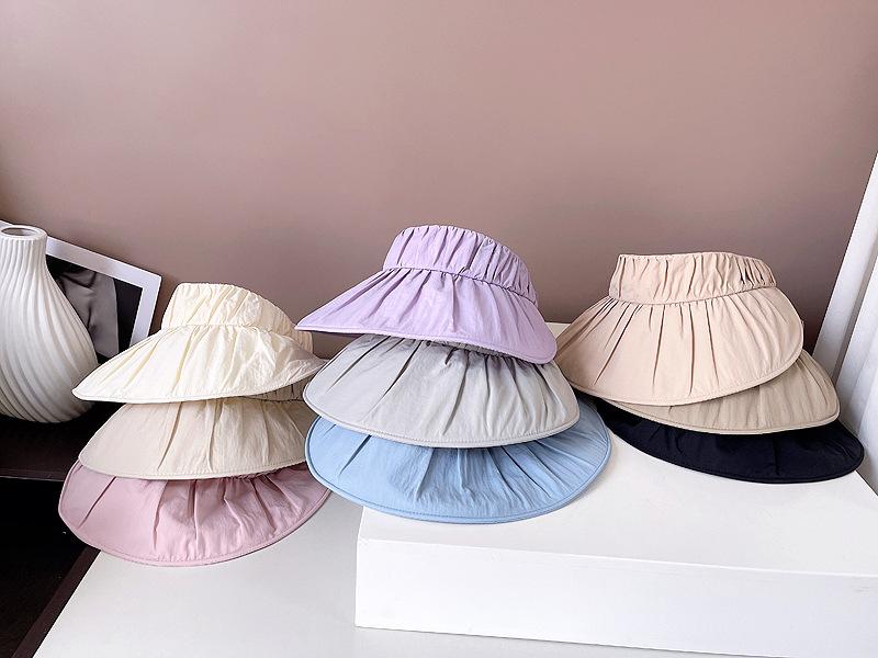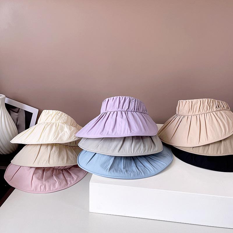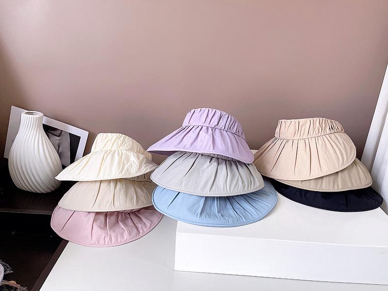 Sombrero de sol de ala ancha plisado estilo coreano para mujer, verano, exterior, versátil, casual, sombrero de sol para ir al trabajo, deportivo