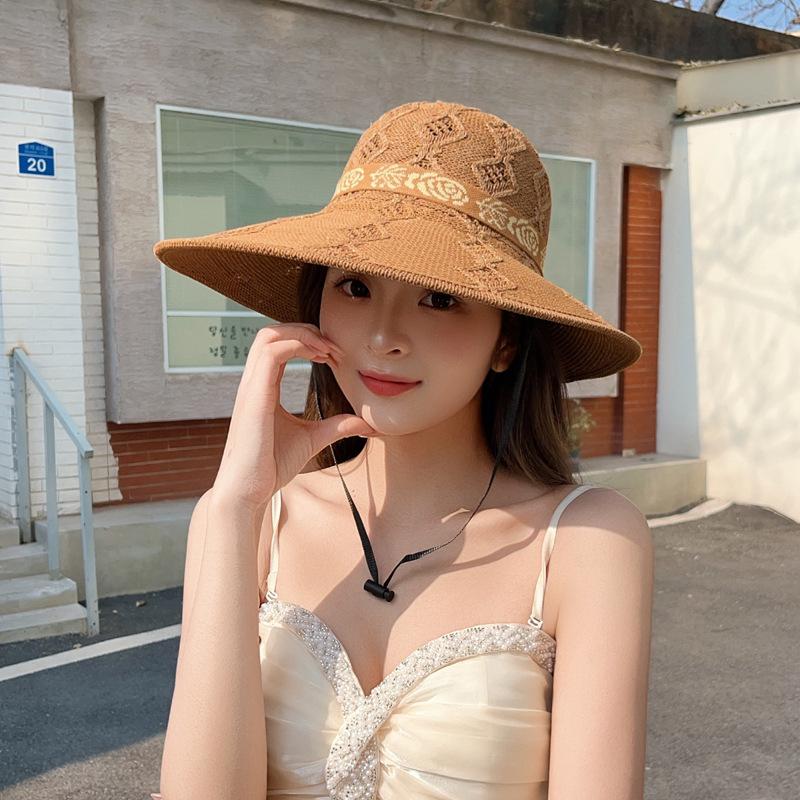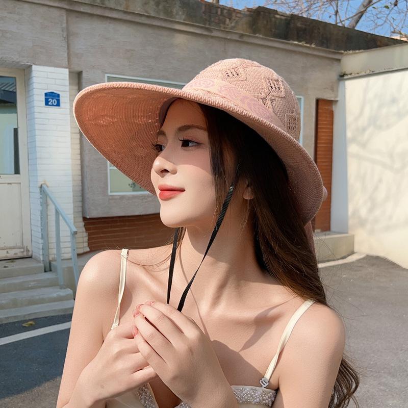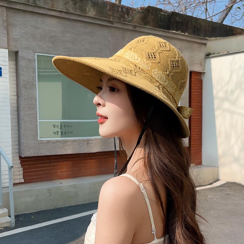 Sombrero Nuevo Sombrero de Punto Fino Transpirable de Verano para Mujer Sombrero de Sol de Ala Ancha Protección Solar para Exteriores Sombrero de Playa Sombrero de Pescador