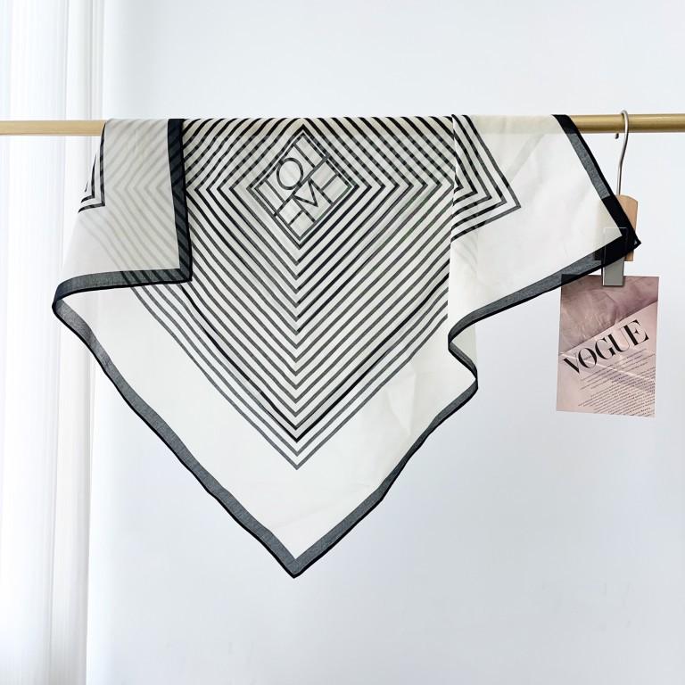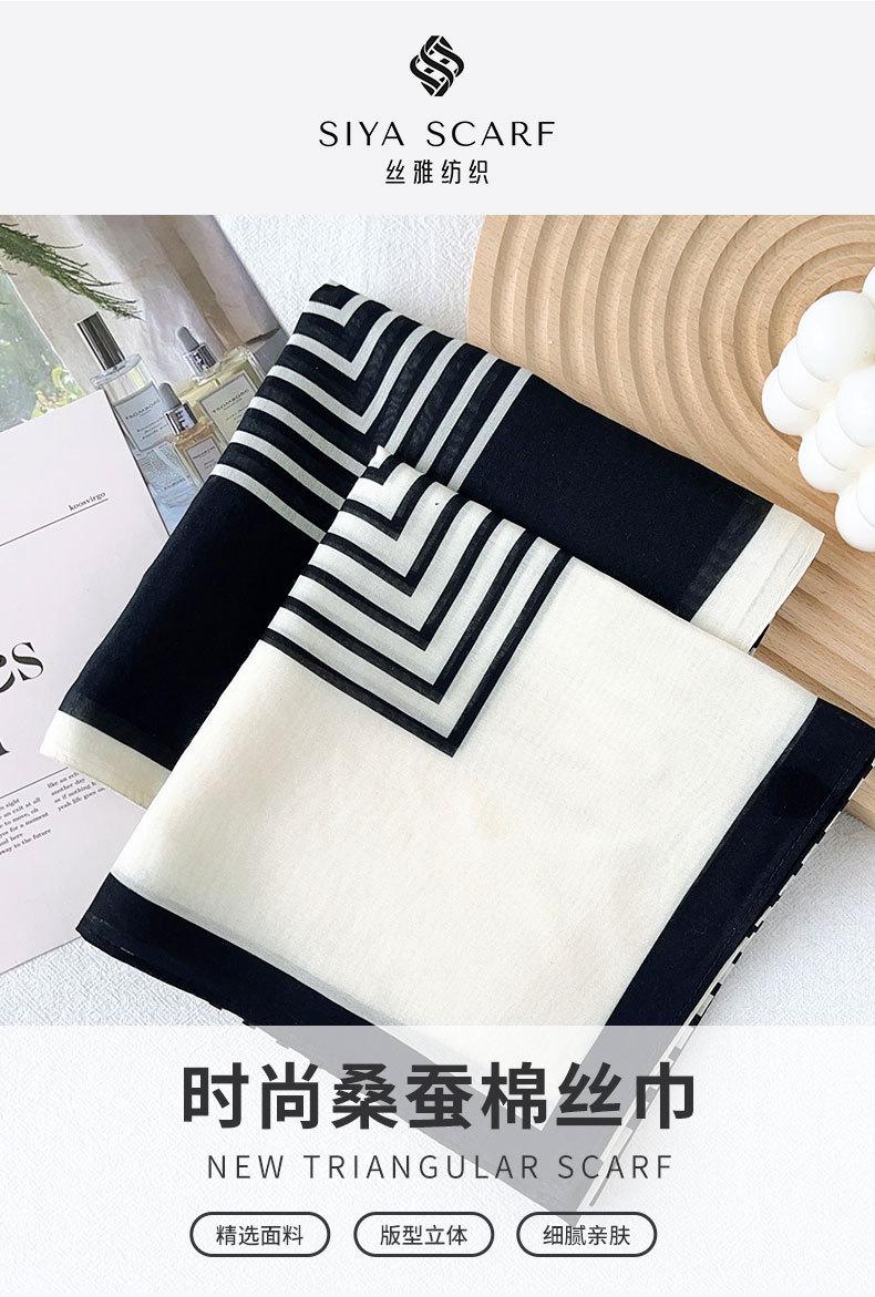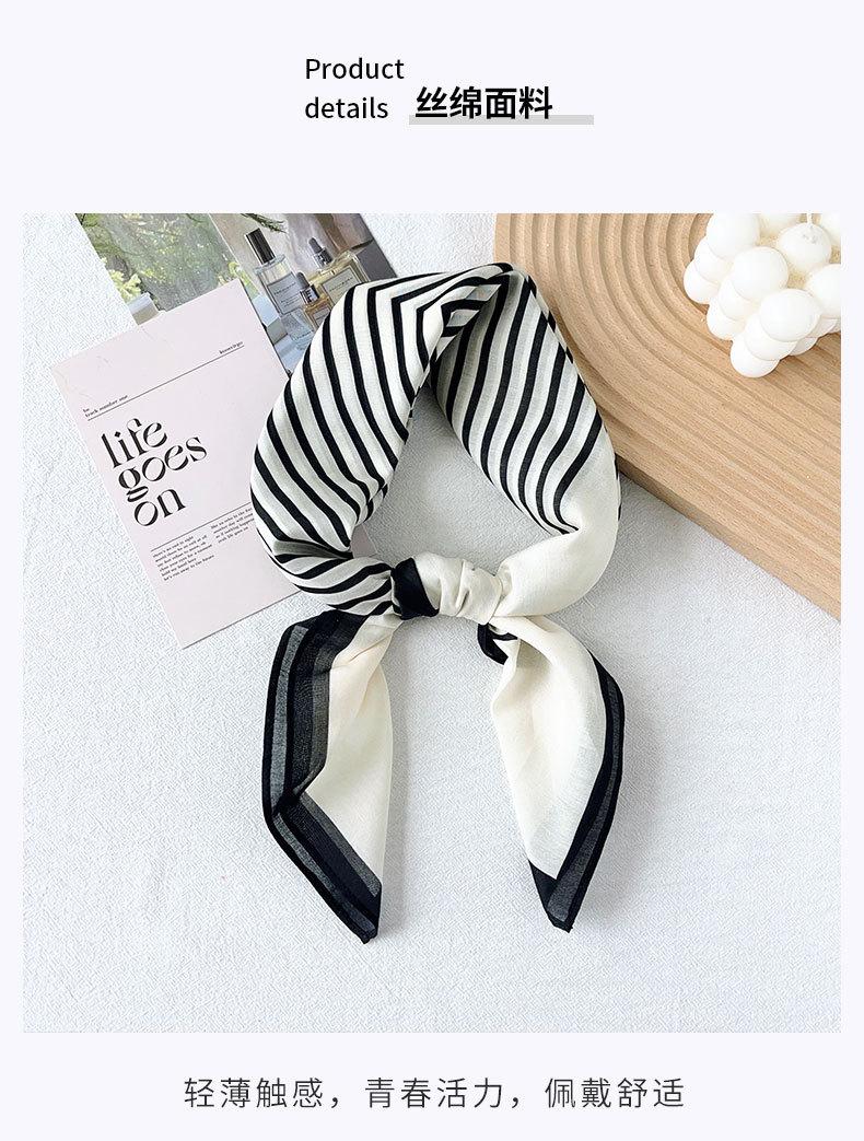 "Algodón de Seda" Estilo Primavera/Verano Simple Elegante Bufanda de Seda Rayada Ins Bufanda Cuadrada Pequeña Versátil Profesional Bufanda Pequeña para el Cuello