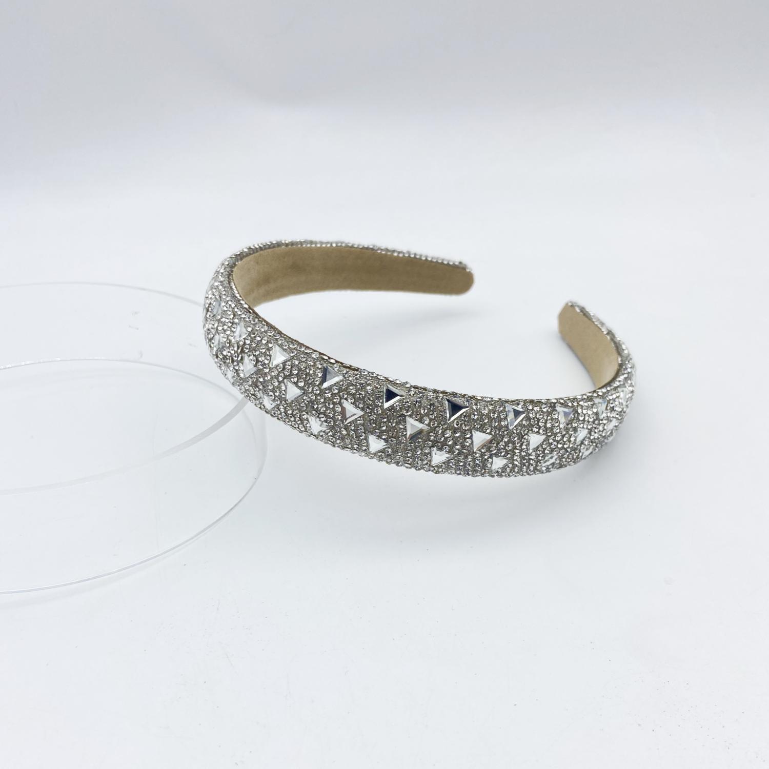 Silver White Triangle Crystal Full Diamond Handmade Hair Band, Advanced gray triangle crystal full diamond han...