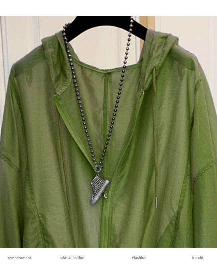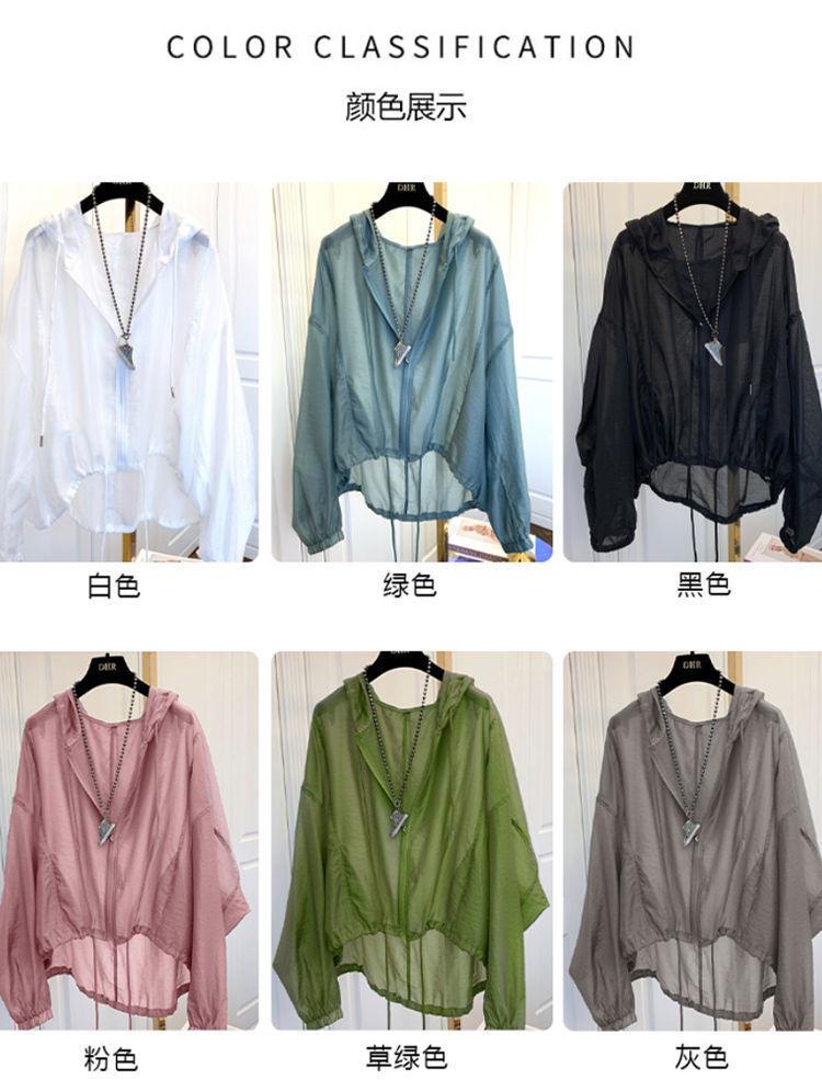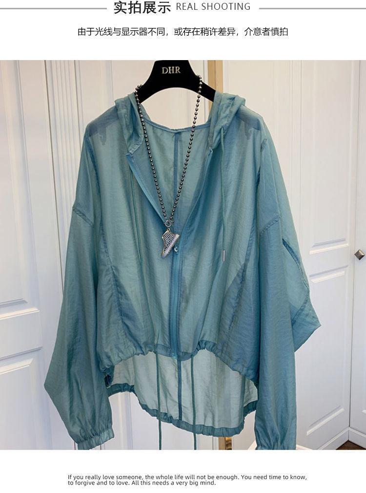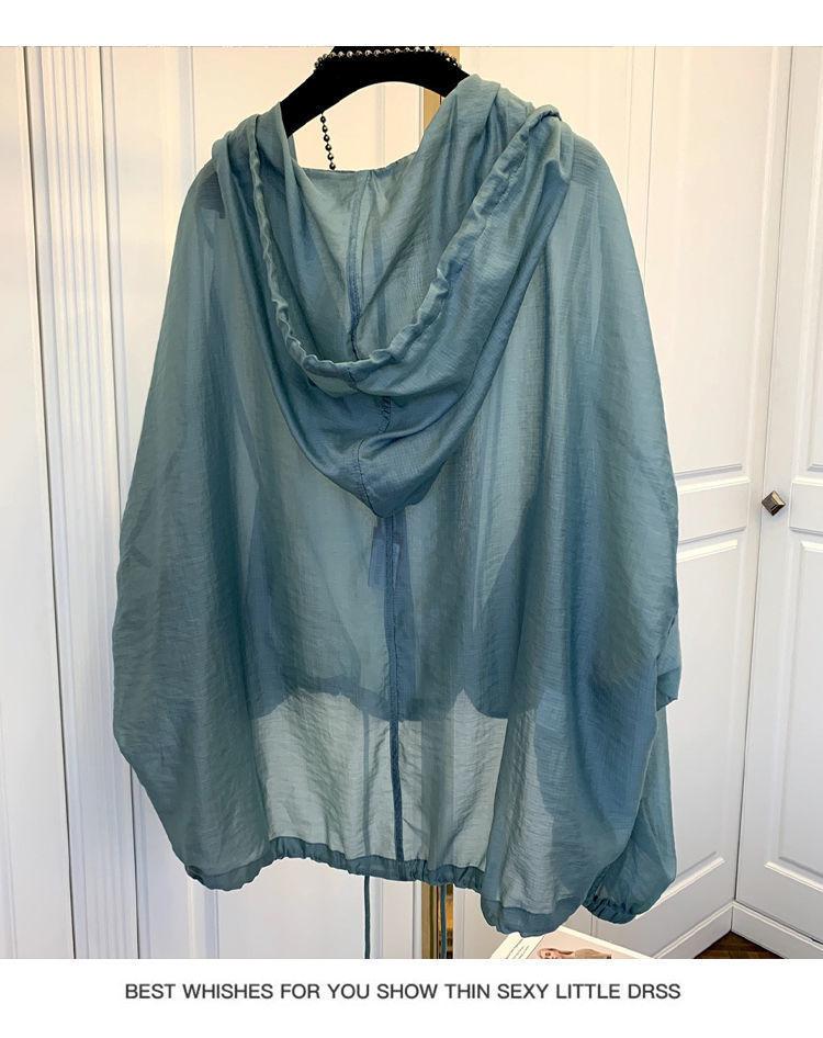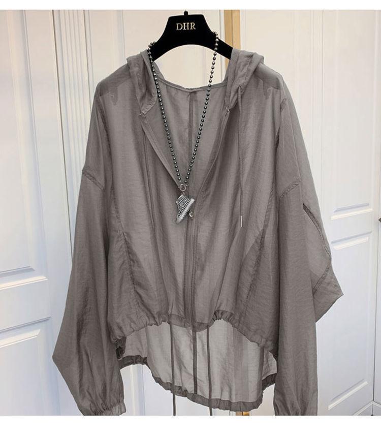 Talla grande Ropa de protección solar ligera de seda de hielo para mujer Camisa holgada adelgazante para mujer Top con capucha estilo occidental Abrigo fino a la moda