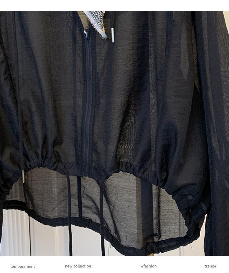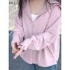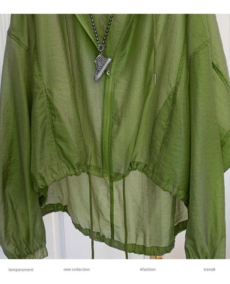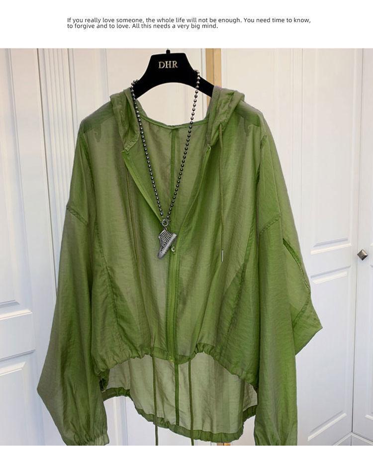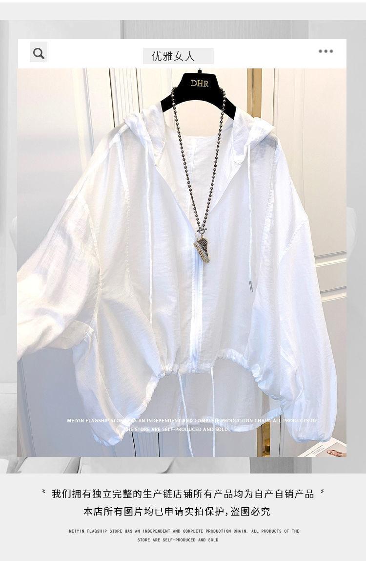 Talla grande Ropa de protección solar ligera de seda de hielo para mujer Camisa holgada adelgazante para mujer Top con capucha estilo occidental Abrigo fino a la moda