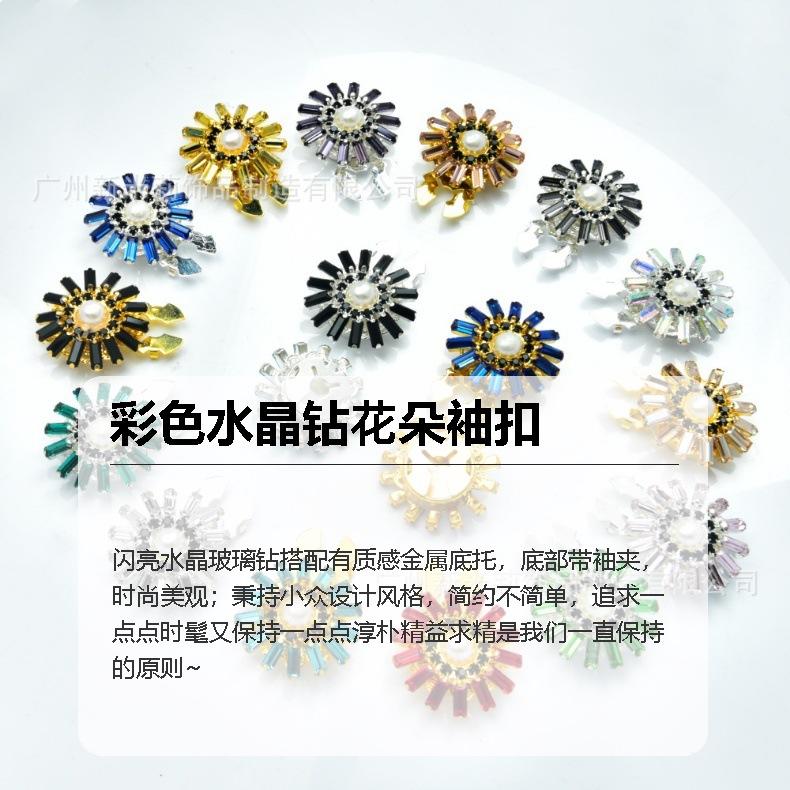 Gemelos de flor de pedrería de color directo de fábrica, botón para camisa de ropa, botón de cristal decorativo para abrigo de piel, accesorios