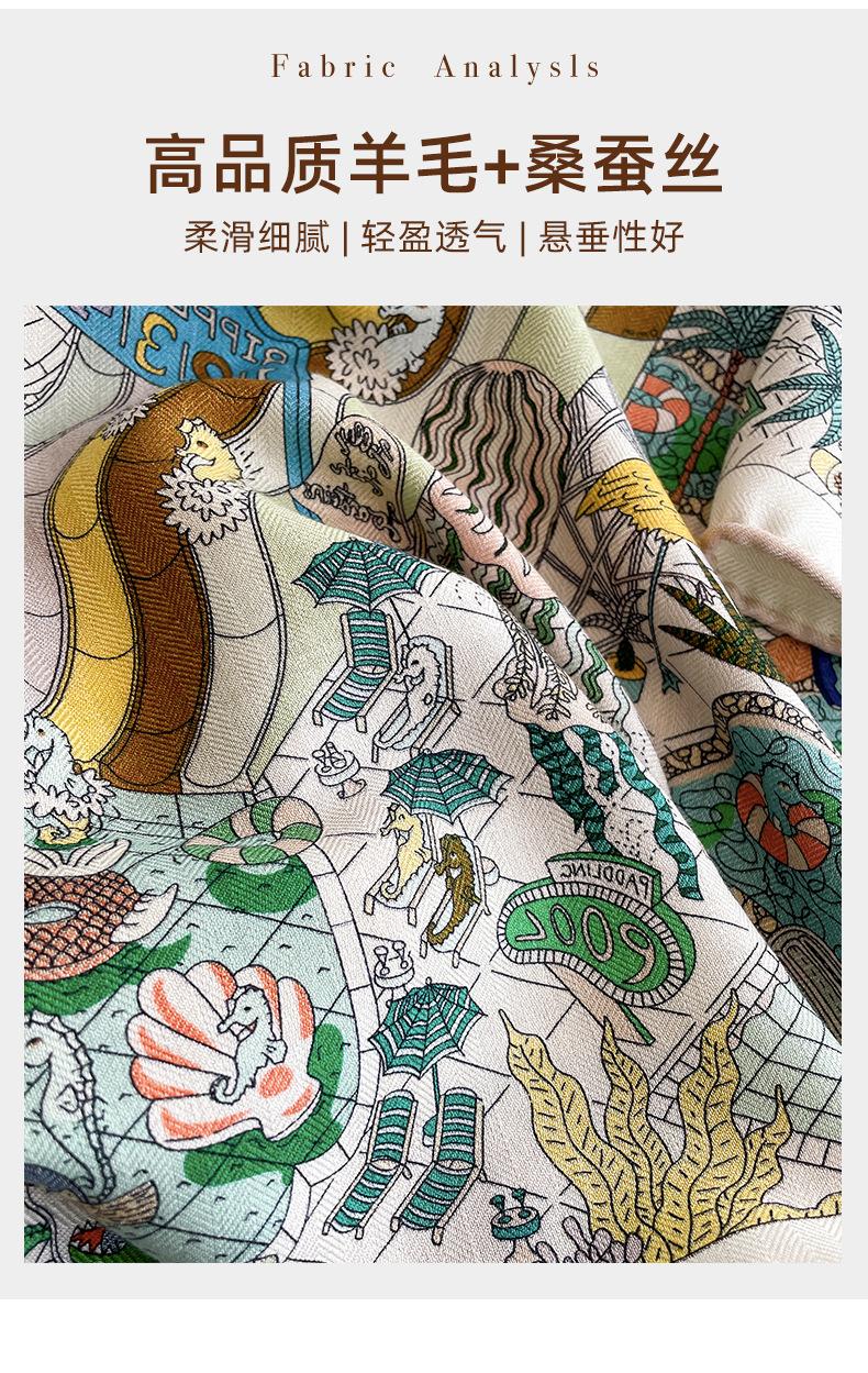 Bufanda de Seda y Lana de Alta Gama Nueva para Primavera y Otoño 2025 Chal Estampado Elegante y a la Moda para Mujer Bufanda de Seda de Doble Cara