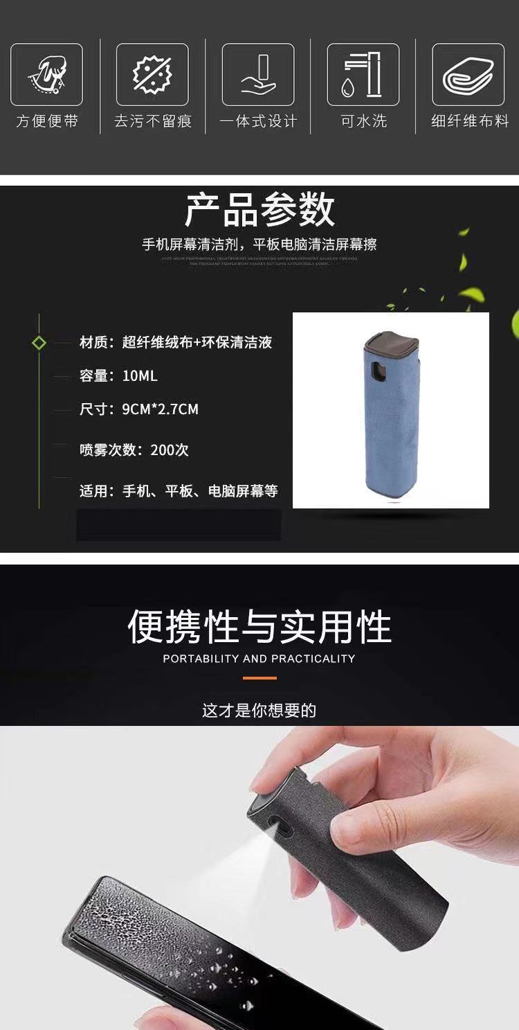 Artefacto Portátil para Limpieza de Pantallas Transfronterizo Todo-en-Uno Limpiador LCD para Teléfonos Móviles y Tabletas Juego de Spray
