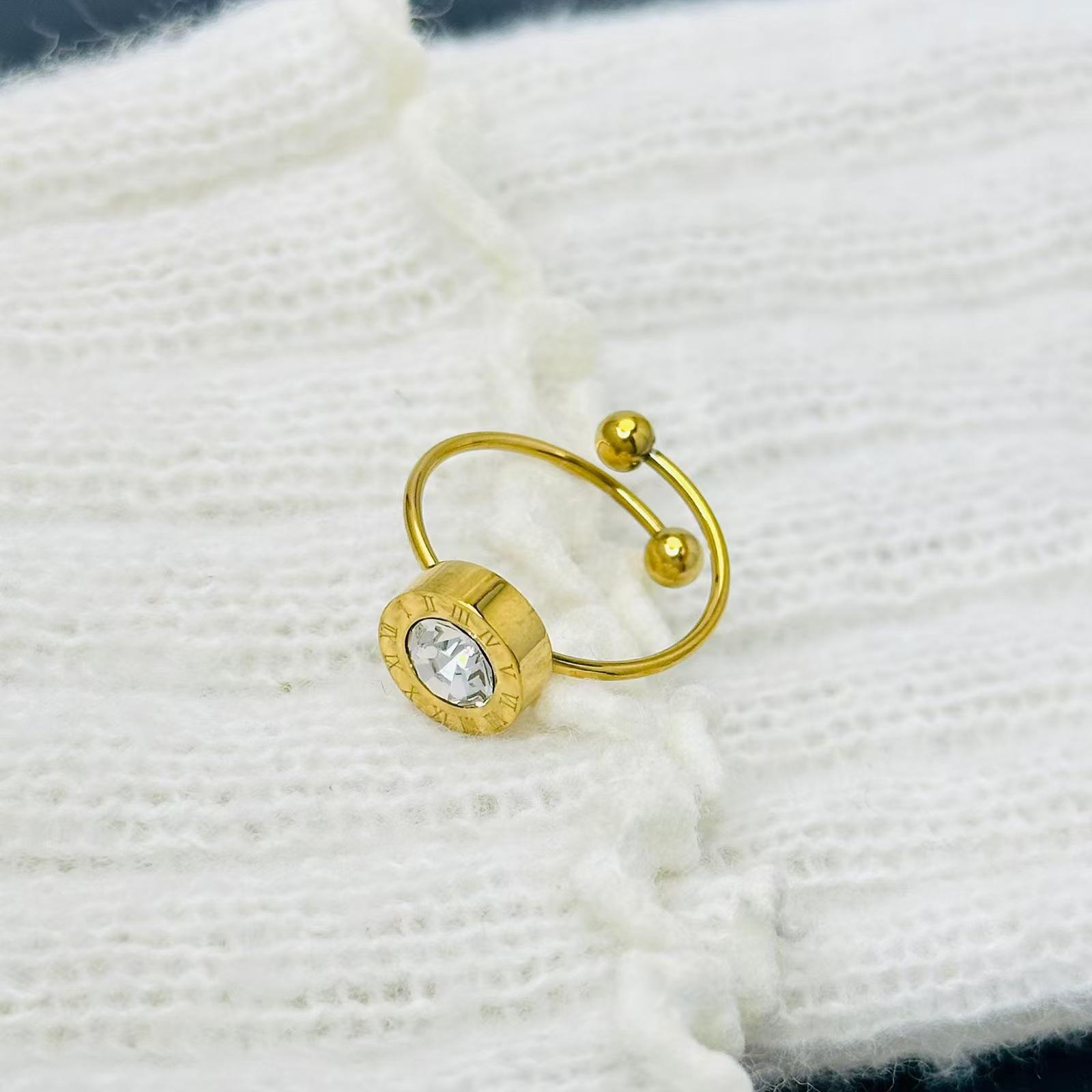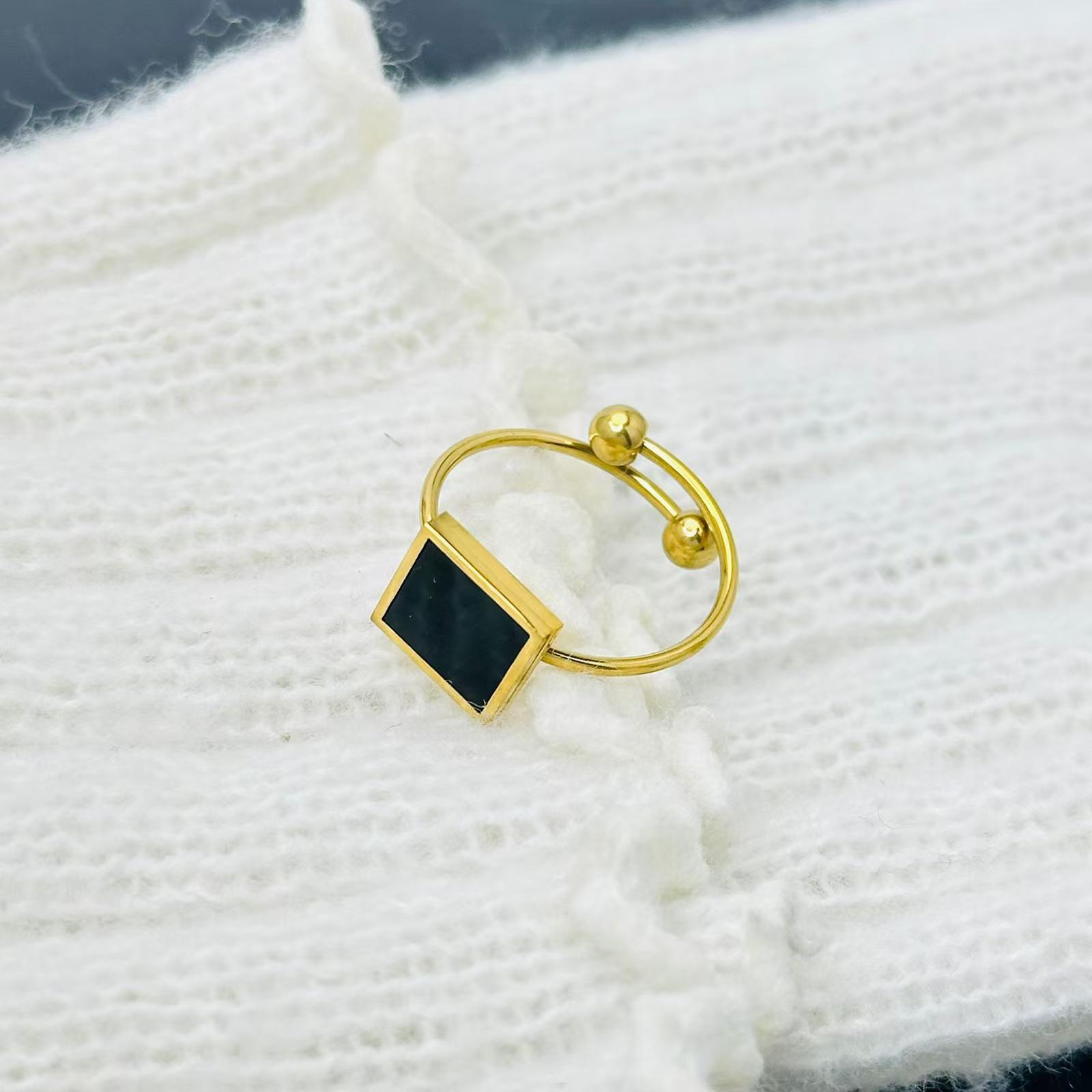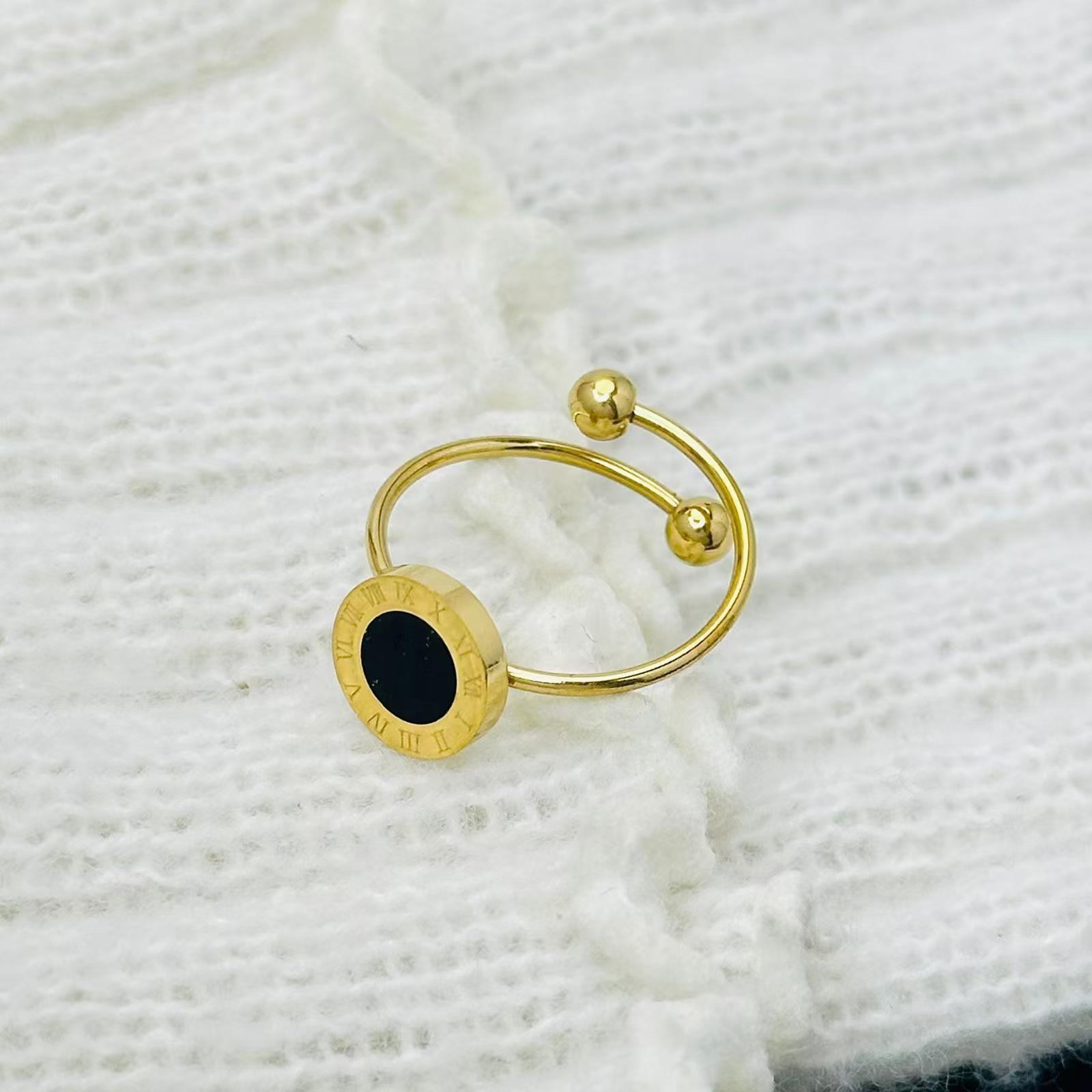 Anillo de acero de titanio con diseño de margaritas negras romanas francesas, apertura ajustable, pequeño, para mujer