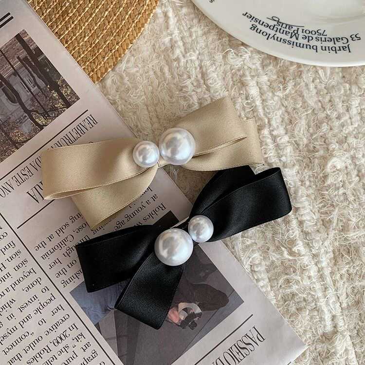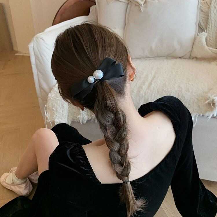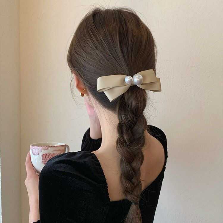 Elegante Pasador Retro de Perlas con Lazo Simple Moda Combinable Parte Trasera del Cabello Clip Superior Accesorios para el Cabello Lateral