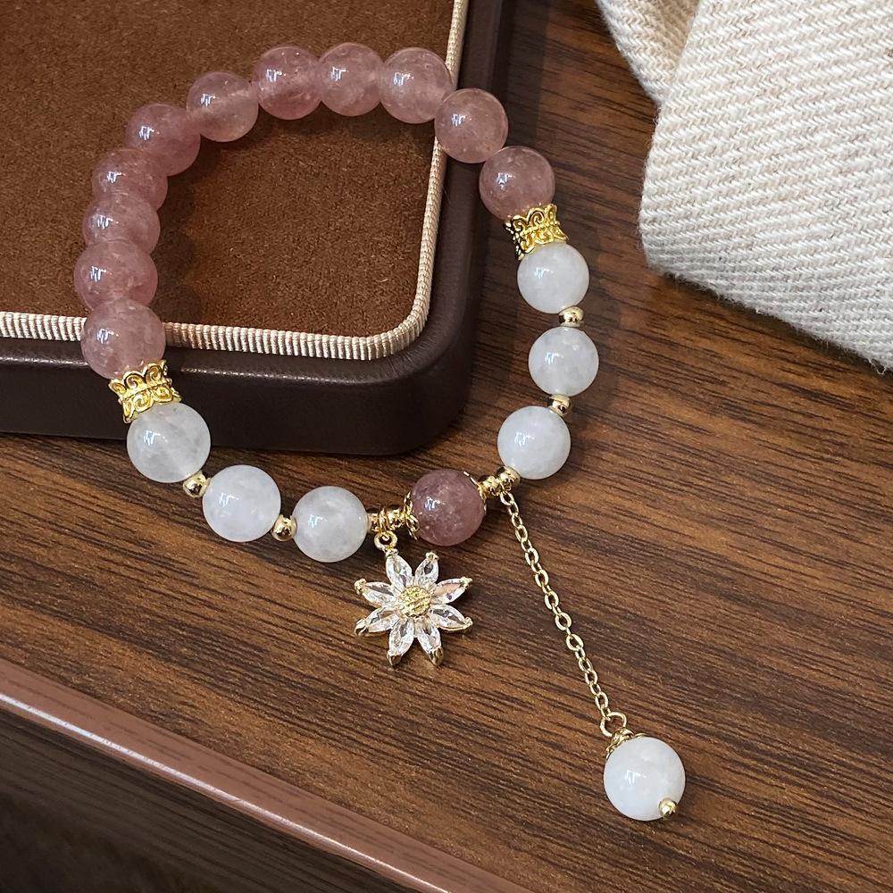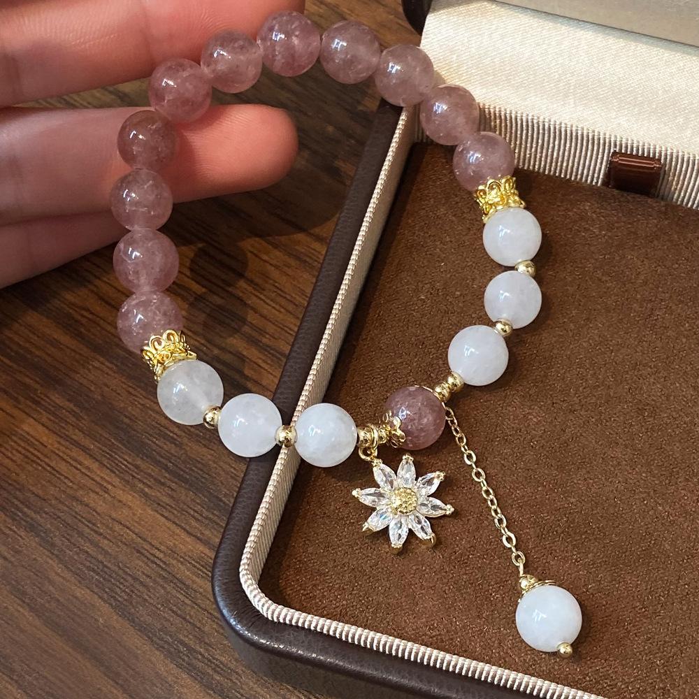 Cristal de Fresa Natural Cristal Blanco Piedra Natural Zircón Colgante de Estrella Exquisita Pulsera Pulsera Pequeña con Cuentas para Niña