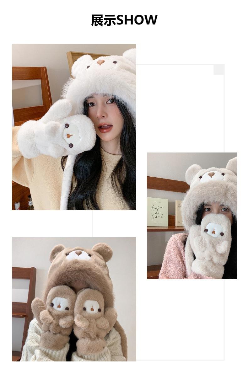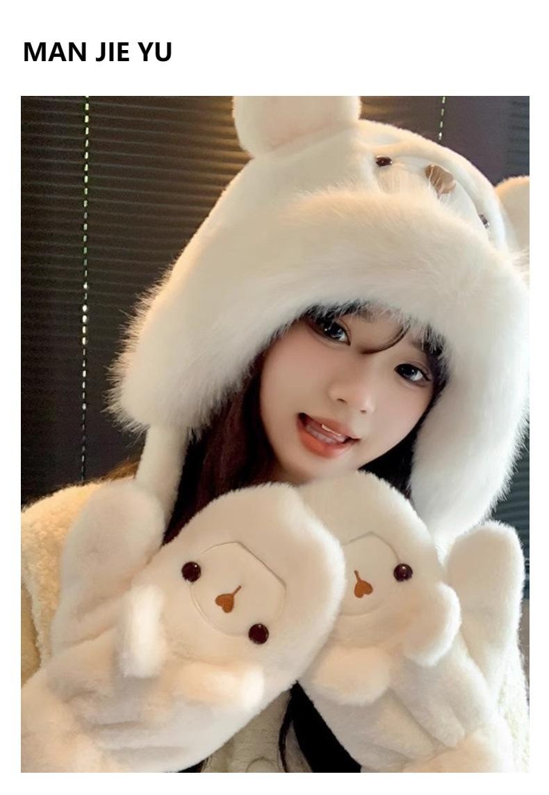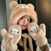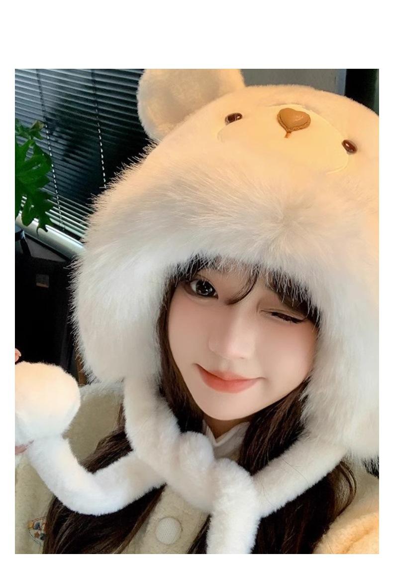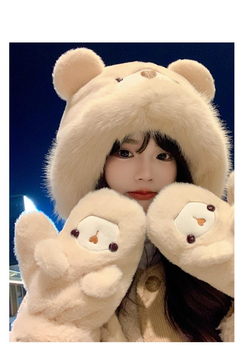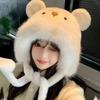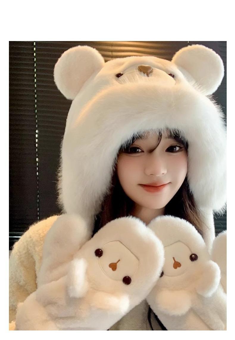 Gorro de peluche con orejas de oso para mujer, grueso y cálido, protector de orejas, para otoño e invierno, bonito gorro Lei Feng, guantes de ciclismo