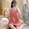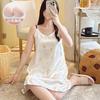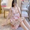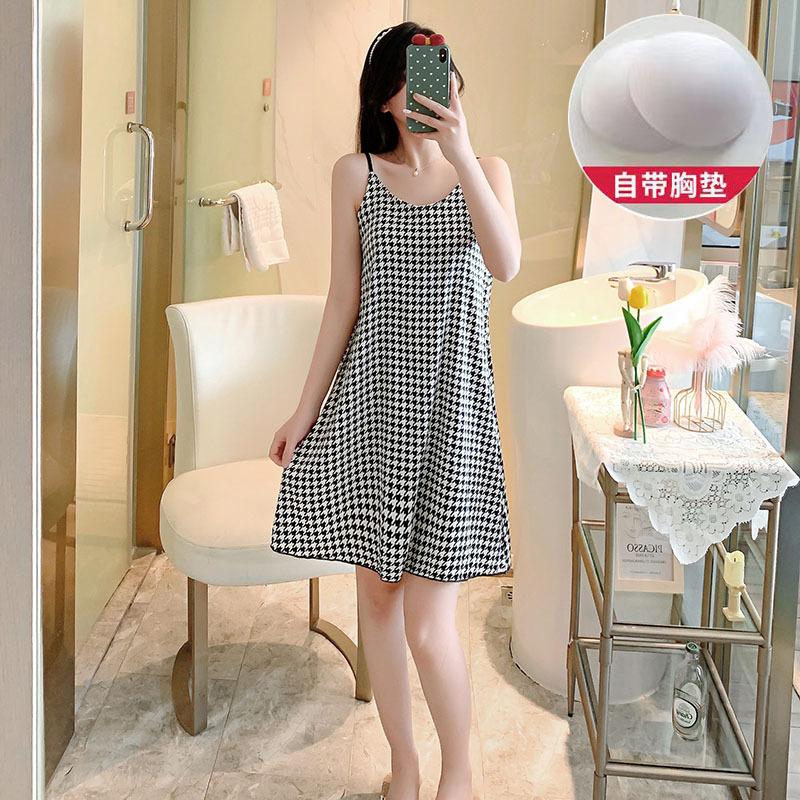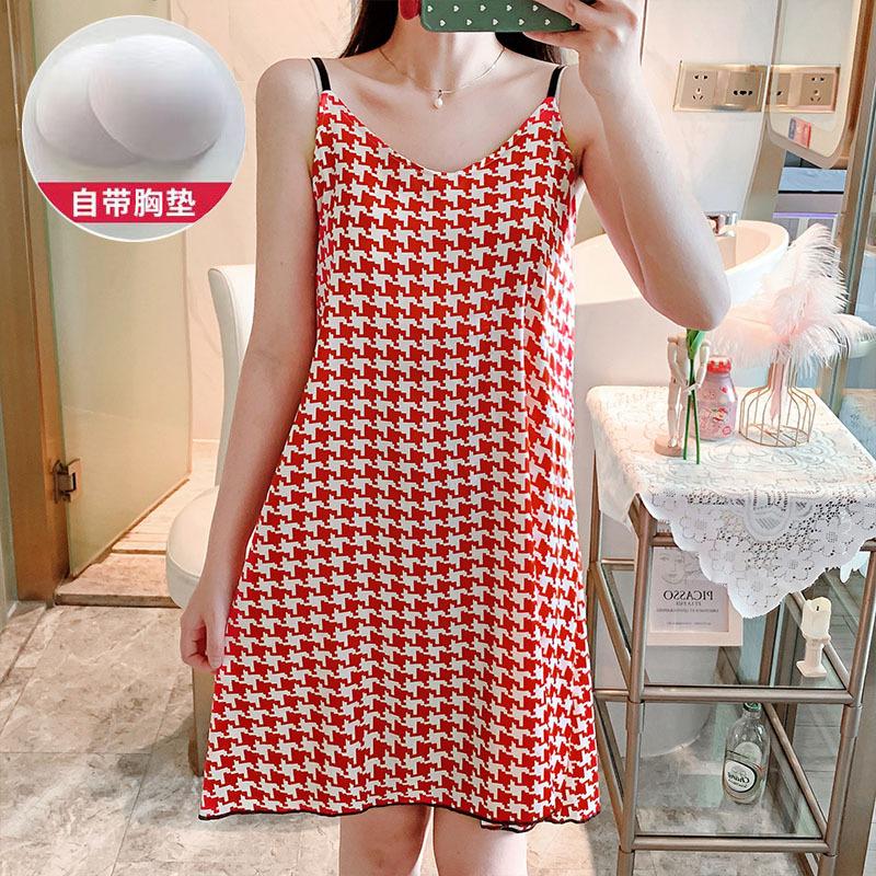 Verano nuevo estilo con almohadilla en el pecho camisón de tirantes para mujer sexy dulce niña seda pijama delgado ropa de casa al por mayor