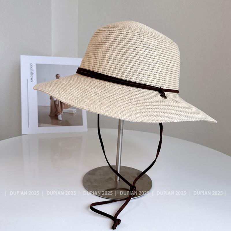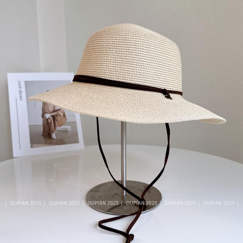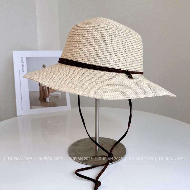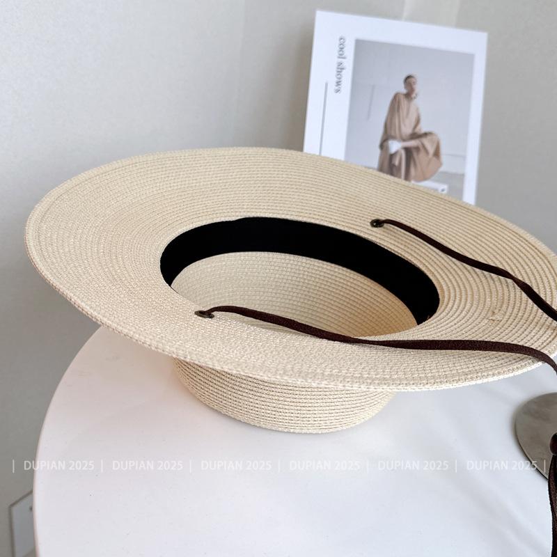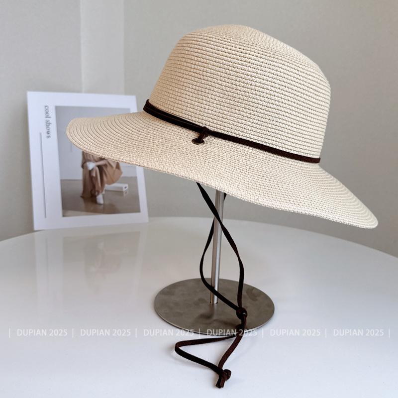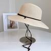 Sombrero de Pescador Sencillo con Cordón y Ala Ancha para Mujer en Verano, Sombrero de Paja Elegante y Versátil para Protección Solar para Vacaciones y Viajes Sombrero de Cúpula