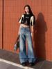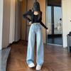 Jeans de Pierna Ancha de Cintura Alta para Mujer Primavera y Otoño 2025 Nuevo Adelgazante Suelto Largo hasta el Piso Patrón Cielo Estrellado Primavera Pantalones Rectos