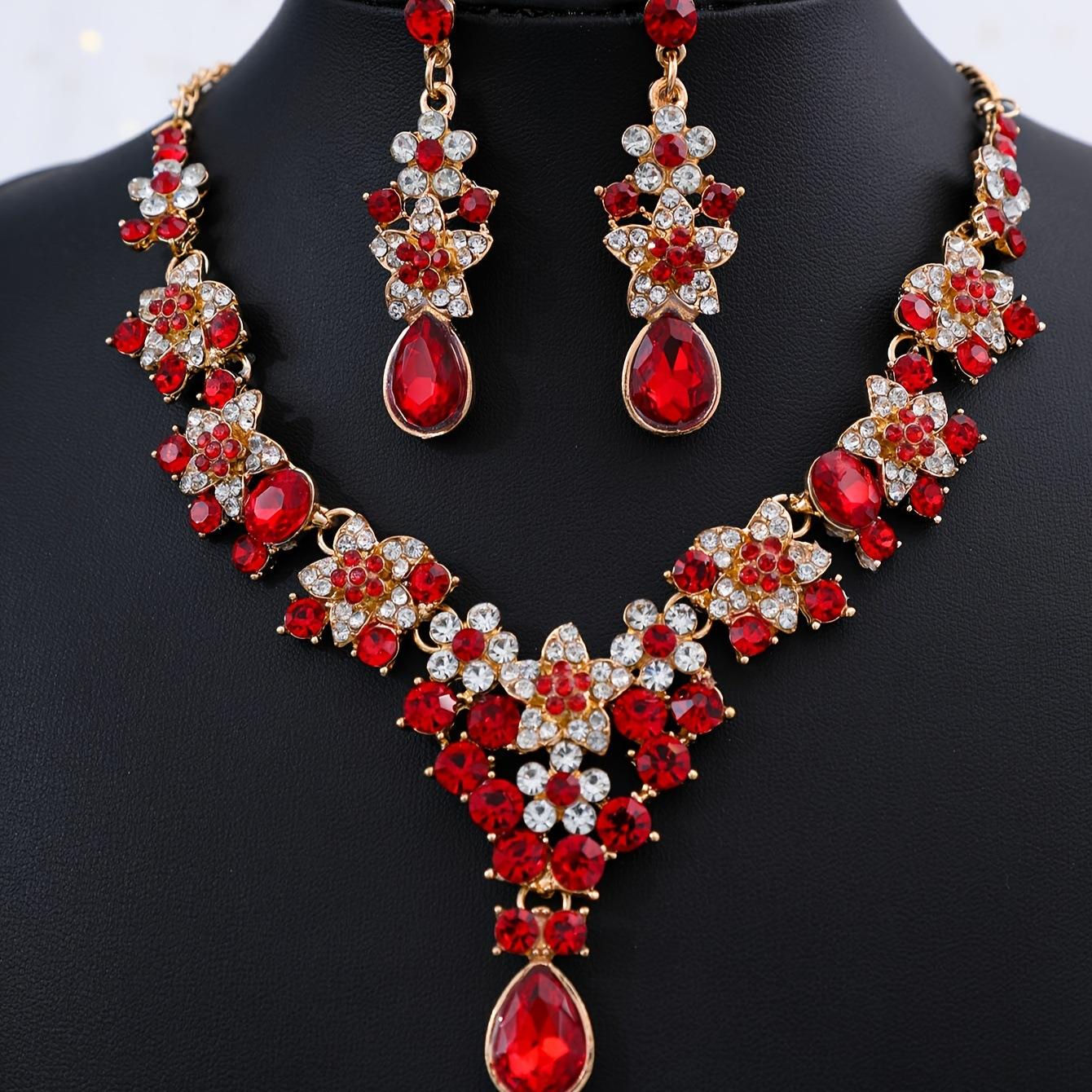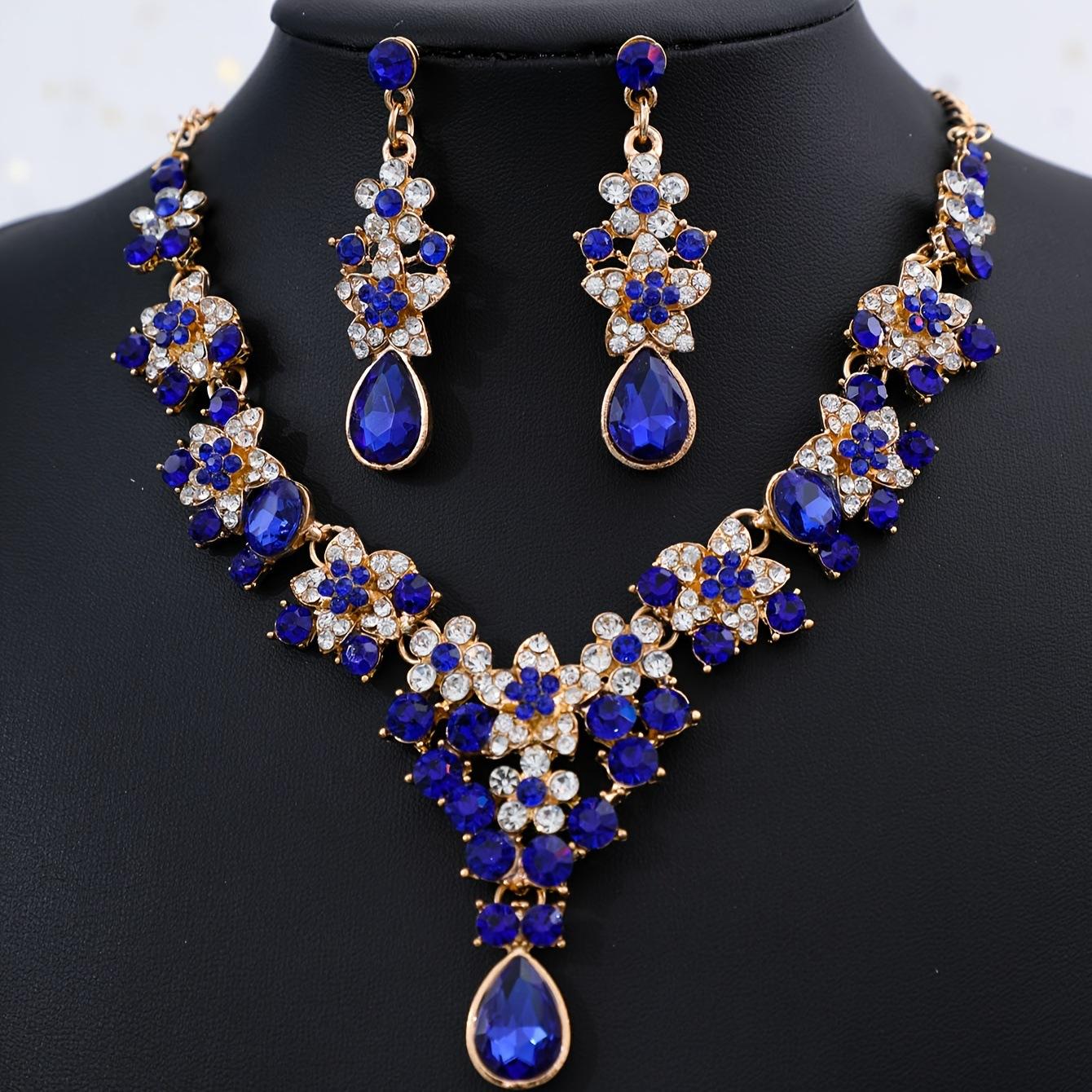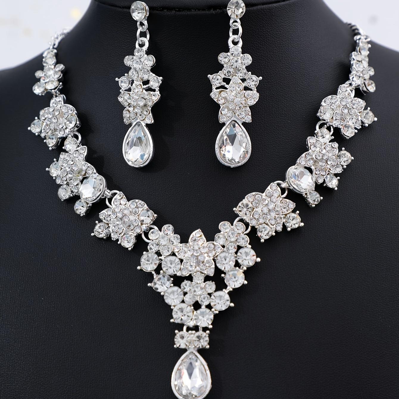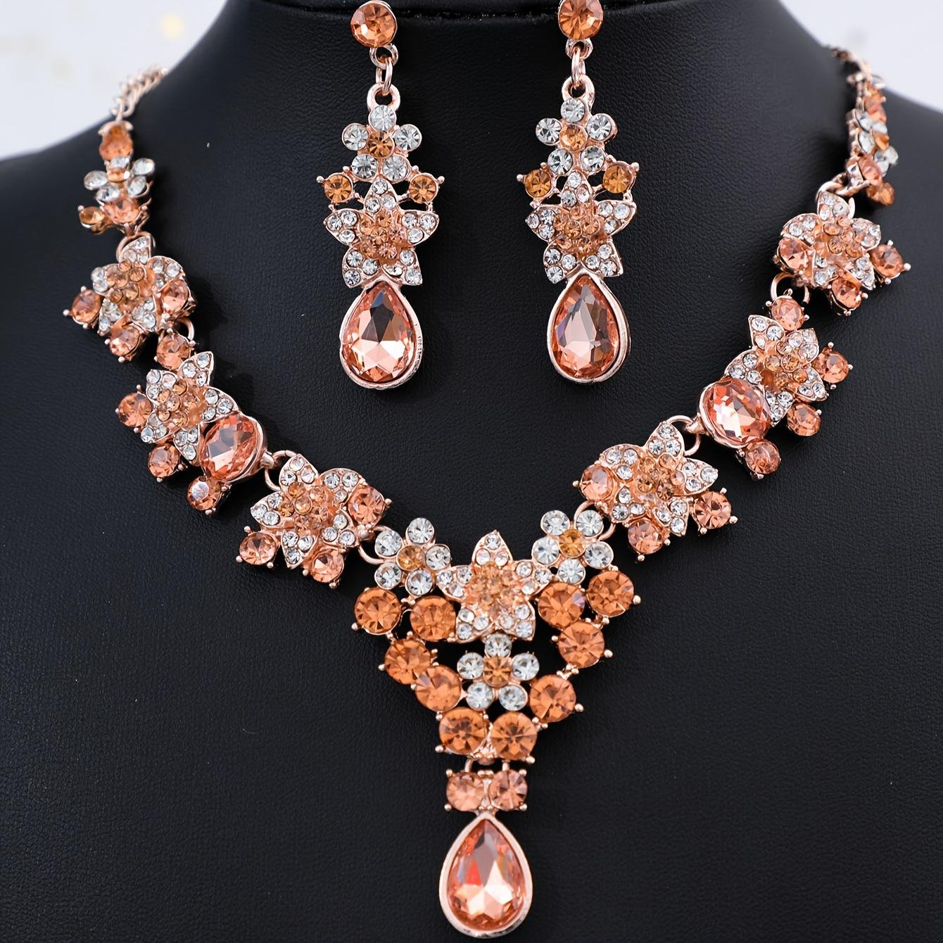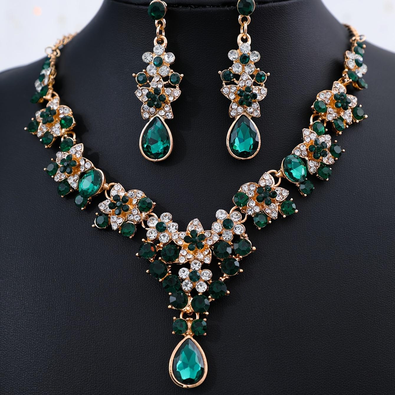 Moda Europea y Americana Set de Collar Nupcial de Pedrería Multicolor Vestido Versátil Collar Aretes Set de Dos Piezas de Pedrería Accesorios
